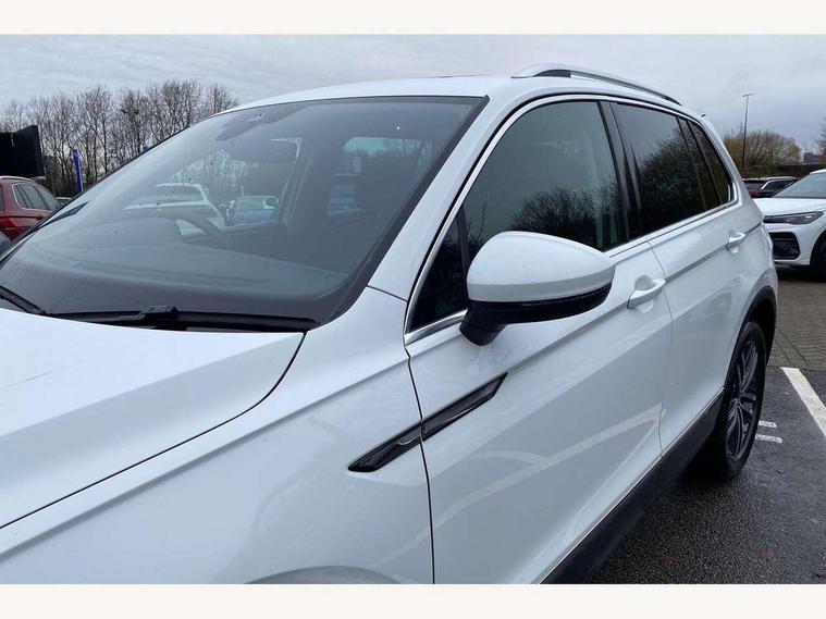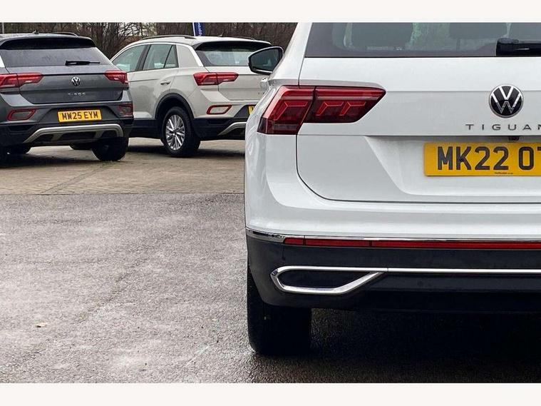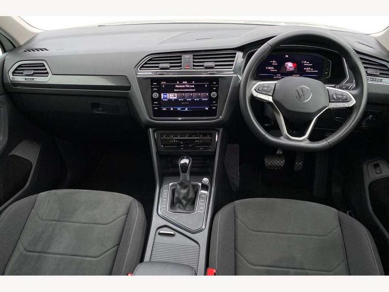 Adaptive cruise control ACC stop and go including speed limiter, App-Connect incl. App-Connect Wireless for Apple CarPlay and Android Auto, Bluetooth phone integration system, Digital Cockpit Pro - Active info display, Distance control assist, Driver alert system, Driver profile selection, Dynamic road sign display, eCall emergency call system, Electromechanical speed sensitive power steering, Engine start/stop button, Lane keeping system Lane Assist, Lights on warning, Motorised electric tailgate operated via key fob, drivers door and foot movement under tailgate, Multifunction front facing camera, Outside temperature display, Premium multifunction display with multi colour display, Remote control boot opening, Rev counter, Revision / skills operating concept travel assistant, Service interval indicator, Speed limit display, Start/stop system with regenerative braking, Tailgate/trunk lid unlocking from outside, Trip computer, Warning sound and light for doors and tailgate open, Battery regeneration during braking, XDS electronic differential lock for improved traction and handling, 2 USB-C ports in the front, 1 USB-C charging socket on the center console in the rear, 4 X 20 watt output, 8 Speakers, Diversity antenna for FM reception, Radio, SD card slot, Simultaneous pairing of 2 compatible mobile devices, SMS functionality - read, compose and send SMS messages using touch-screen display, Title and cover art display, Aluminium door sill protectors, Auto dimming interior rear view mirror, Automatic headlight control system, Body colour door handles, Body coloured bumpers, Body coloured door mirrors with integrated indicators, Coming/leaving home lighting function, Dynamic headlight range control, Front and rear electric windows, Heated rear window, High level 3rd brake light, IQ light-Adv high beam, Dynamic light assist for LED matrix headlamp+LED separate DRL+DCL, dark red rear LED tech, Poor weather light+ cornering light, Laminated safety glass windshield, heat and sound insulating, LED rear number plate lights, Poor weather light and cornering light, Privacy glass for rear side windows and rear window, Rain sensor windscreen wipers, Rear exhaust tailpipe, Rear fog lamp, Rear side wing doors, Rear windscreen washer and wiper with interval delay, Side and rear windows in heat insulating glass, Tilting and sliding panoramic sunroof with rear panoramic sunroof, Trailer Stability Programme, Windscreen wipers/ intermittent wipe + 4 position delay, 12V outlet in center console rear and in luggage compartment, 12V outlet in front and tray, 2 cup holders in front, 2 LED front reading lights, 2 LED rear reading lights, 3 bench rear seats in 2nd row, 3 rear headrests, 4 load lashing points, 40:20:40 split folding rear seats, Air Care Climatronic 3 zone automatic climate control with enhanced air filter and controls in the rear, Backrest release for left front seat, Climate control unit rear with touch function, Door and side trim panel in foam film and woven fabric, Front + rear carpet mats, Front centre armrest, Front footwell illumination, Front seats head restraints (x-adjustment), Height adjustable front seats, Height/reach adjust steering wheel, Instrument lighting white adjustable panel illumination, Interior light with delay, Isofix Preparation 2 Rear child seats, Leather gear knob, Lockable cooled glovebox, Luggage compartment lighting, Luggage net, Rear bench seat asymetrically split folding, longitudinally movable and folding with load-through hatch and center armrest, Remote unlocking for rear seat backrest, Removable luggage cover, Removable rear headrests, Safety optimised front head restraints, Single front passenger seat, Sliding/reclining rear seats, Standard rear seat release, Storage compartment in driver's door, Storage compartment in passenger's door, Storage compartment in rear doors, Storage compartments in luggage area left and right, Storage tray on dashboard, Sun visors with illuminated vanity mirrors, Top front comfort seats, Variable boot floor, height adjustable and removable, Ambience pack - Tiguan, Chrome pack - Tiguan, Driver assistance pack - Tiguan, Easy open and close pack with safelock - Tiguan, Park assist pack - Tiguan, 3 point seat belt for centre rear seats, 3 point seat belts with seat belt pretensioners for the outer rear seats, Active bonnet, Curtain airbags for front and rear passengers, Driver/Front Passenger airbags, Drivers knee airbag, Electronic parking brake with auto hold, Electronic Stability Control with driver steering recommendation, ABS, ASR, EDL, EDTC and trailer stabilization, Front assist with autonomous emergency braking (for Adaptive Cruise Control ACC up to 130 mph), Front disc brakes, Front passenger airbag deactivation, Front side airbags, Height adjustable front 3 point seatbelts + pretensioners, Hill hold control, Manual child proof rear door locks, Pedestrian monitoring system, Power assisted brakes, Proactive passenger protection system in combination with front assist, Rear disc brakes, Rigid safety cell with front and rear crumple zones, Two tone horn, Warning sound and light for front seat belts if unfastened, Anti theft alarm system with interior monitoring, backup horn and towing protection, Anti theft wheel bolts, Central locking system with safelock radio remote control and 2 remote control folding keys, Electronic engine immobiliser, Tool kit,