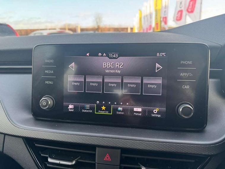 Bluetooth system, E-call, Front assist system, PAS, Service indicator, Speed limiter, Wireless Smartlink for Apple CarPlay (wired for Android Auto), 8 Speakers, Auxiliary input socket, DAB Digital radio, Body colour bumpers, Body colour door mirrors and handles, Chrome grille surround, Dimming rear view mirror with black surround, Electrically adjustable and heated door mirrors, Front and rear electric windows, Headlight range control, Heated rear window, LED rear lights - low functionality, LED third brake light, Light sensors, Rain sensor, Rear fog lights, Rear side wing doors, Rear wiper, 12V Accessory socket in centre console, 3 seat bench in 2nd row, Chrome inner door handles, Cloth upholstery, Front head restraints, Glove compartment with illumination, Ice scraper, Isofix child seat fittings on outer rear seats, ISOFIX on front passenger seat, Manual lumbar support for front seats, Rake/reach adjustable steering wheel, Reading lights, Single front passenger seat, Sun visors with illumination on front passenger, Textile floor mats, Third rear headrest, Top tether for front passenger seat, Umbrella in driver's door, 3x3 point rear seatbelts, Airbags - driver and front passenger, ESP, Front passenger airbag deactivation switch, Front side airbags with curtain airbags, Hill hold control, Manual parking brake, Manual rear child locks, One tone horn, Rear disc brakes, Seatbelt reminder for driver an co-driver, Traction control, Tyre pressure monitor, Anti-theft alarm system with interior monitoring, backup horn, towing protection and remote central locking with SAFE system, Anti-theft wheel bolts, Electronic engine immobilizer,