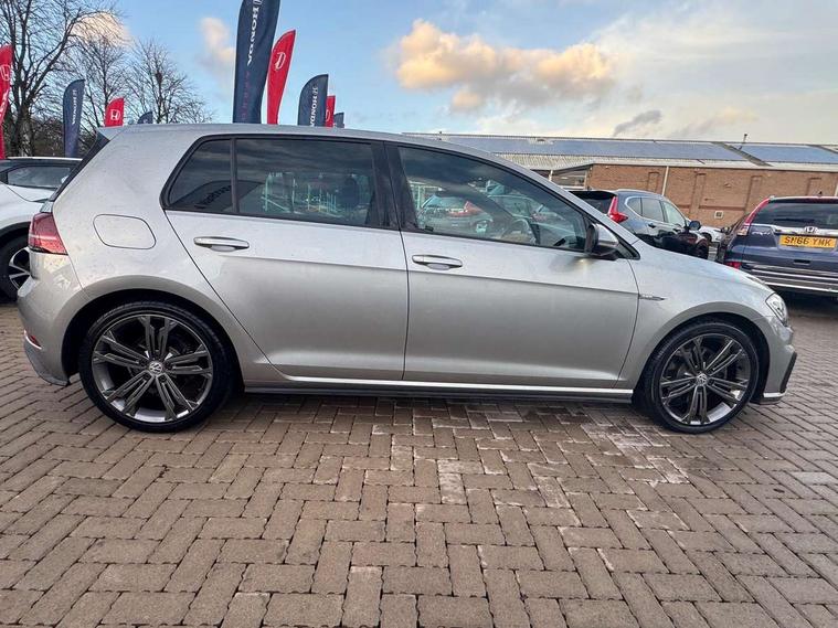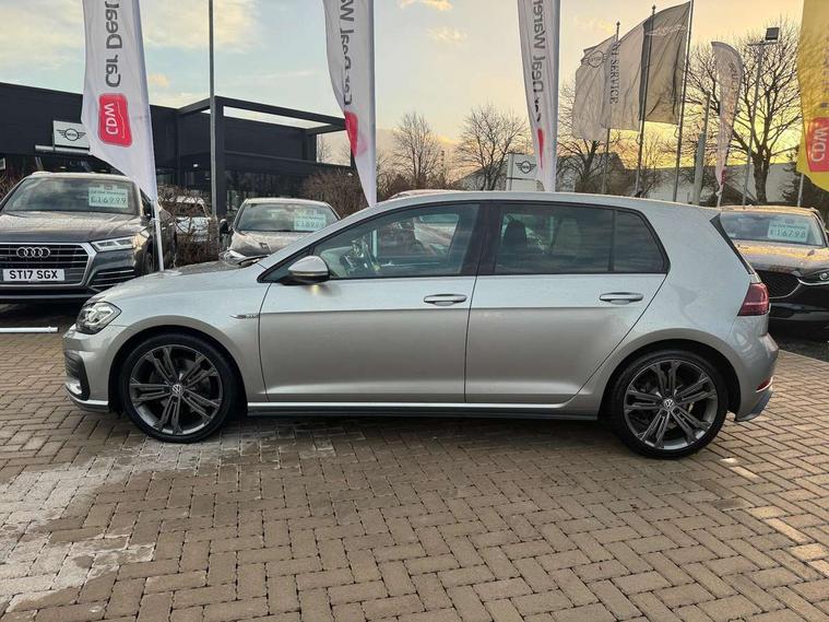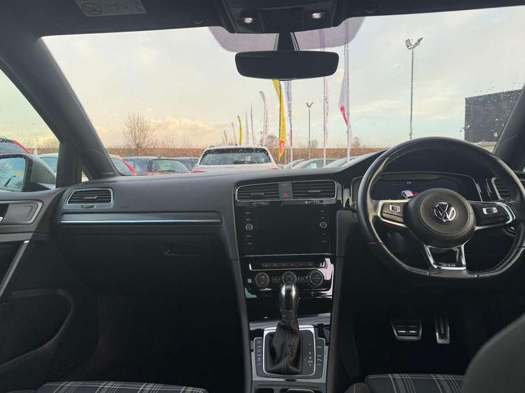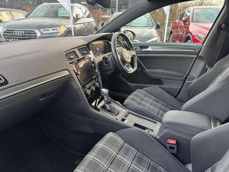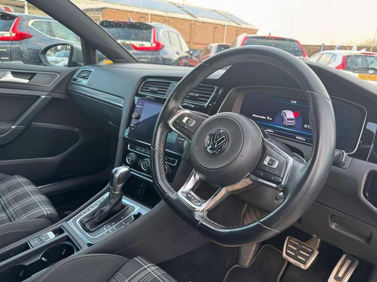 App-Connect, 'Lights On' Reminder warning buzzer, 8" touch screen, Adaptive Cruise Control with pedestrian detection and speed limiter, Bluetooth hands free telephone connection, Brake pad wear indicator warning light, Driver alert system, Driver profile selection, Exterior temperature gauge, Front assistant collision mitigation, Instrument cluster in white, Multifunction computer, Progressive power assisted steering, Rev counter, Trip and service interval display, Ultrasonic front and rear optical and audible parking sensors, Warning buzzer and light for front seatbelts unfastened, Anti-tramp function, Diesel particulate filter, Lowered sports suspension, XDS plus electronic differential lock, CD/MP3/WMA, USB and SD card reader, aux-in, Composition media system, DAB Digital radio, 3D-LED-SBBR with sweeping indicator, Auto dimming rear view mirror, Automatic coming/leaving home lighting function, Automatic headlights, Black rear diffuser, Body colour door handles, Body colour door mirrors, Body colour rear roof spoiler, Body colour sports bumpers, Electric front windows, Electric rear windows, Electrically adjustable and heated door mirrors, Heated rear windscreen, Honeycomb radiator grille - black, LED daytime running lights, LED front fog lights, LED rear lights, Rain sensor, Rear windscreen washer and wiper with interval delay, Twin exhaust tailpipe, 12V socket in luggage compartment, 3 rear headrests, 3 spoke steering wheel, 60/40 split folding rear seat, Air conditioning - 2 zone electronic climate control, Bag hook in luggage compartment, Black headlining, Boot lashing points, Cooled glovebox, Courtesy light delay, Cover for storage compartment in centre, Dust/pollen filter, Front + rear carpet mats, Front centre armrest with storage box and rear air vents, Front passenger seat height adjust, Front seat back storage pockets, Gearshift paddles, Grab handles, Height adjustable driver's seat, Height/reach adjust steering wheel, Illuminated door sills, Illuminated vanity mirrors, Isofix preparation for 2 rear child seats, Load through provision with rear centre armrest and cupholders x2, Luggage compartment cover, Luggage compartment lighting, Multifunction leather steering wheel with grey stitching leather trimmed gear knob including paddle shift, Overhead storage box, Stainless steel pedals, Storage box in luggage compartment, Storage compartments in doors, Sun visors, Variable boot floor, height adjustable and removable, Ambient lighting pack - Golf, Mirror pack - Golf, 3 point height adj front seatbelts + pretensioners, 3 rear 3 point seatbelts, ABS, Automatic post collision braking, Child locks on rear doors, Driver/Front Passenger airbags, Driver/Passenger whiplash optimised head restraints, Drivers knee airbag, Electronic parking brake with auto hold, ESP with EDL + ASR, Front and rear curtain airbags, Front passenger airbag deactivation, Front side airbags, Pre crash system, Tyre pressure monitor, Alarm with interior protection, Electronic engine immobiliser, Remote central locking with 2 remote folding keys, Chrome-plated light switch surround, Honeycomb black decorative inserts, Piano black centre console, Space saver spare wheel,