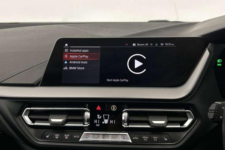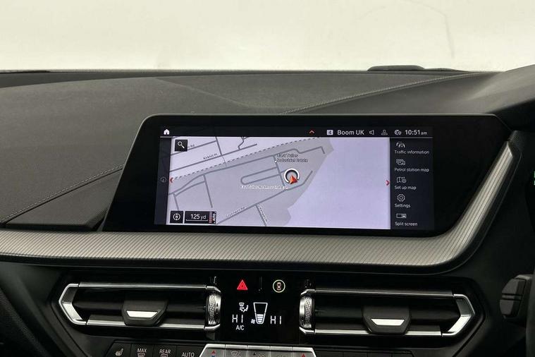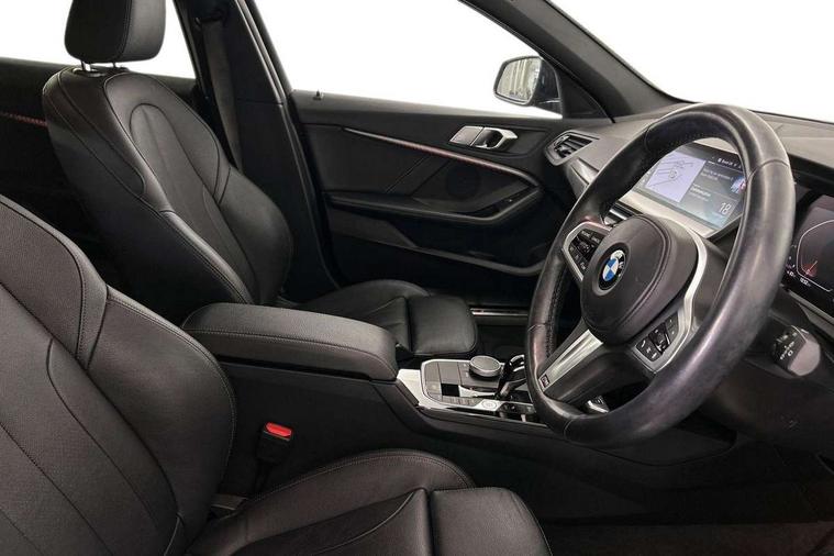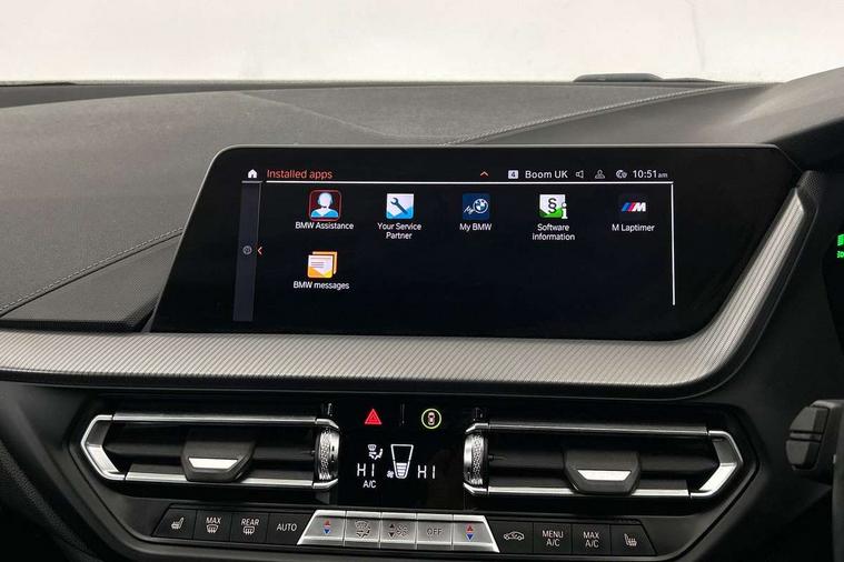 Active guard plus, Attentiveness assist, BMW Online services, BMW Teleservices, Check Control warning system for monitoring of lights and door/luggage compartment open warning, Connected eDrive Services, Eco pro mode, Integrated owners handbook, Oil sensor for level and grade, On board computer, Optimum shift indicator, Personal Profile, Pull away assistant, Speed limiter, Aluminium lightweight construction, Anti roll bar front and rear, Balancer shaft, Double VANOS, Drive Performance Control, Electronic differential lock, High precision injection, M sport suspension, Petrol Particulate Filter, VALVETRONIC engine management, Bluetooth audio streaming, DAB Digital radio, Auto dimming rear view mirror, Automatic headlight beam throw control, Automatic windscreen wipers and automatic headlight, Body colour door handles, Body colour mirror caps, Chrome 'M' logo side designation, Chrome exhaust tailpipe in single, round (Exhaust tailpipe, stainless steel - single, round), Chrome kidney grille frame with Satin Aluminium struts, Direction indicator side lights in exterior mirrors, Electric folding and anti dazzle exterior mirrors, Fading support, Follow me home headlights, Front and rear bumper system with replaceable deformation elements, Front and rear electric windows with open and close fingertip control, anti trap facility and comfort closing, Front door sill finishers in black plastic with M designation in metallic look, Green tinted heat protection glazing, Heated, electrically adjustable exterior mirror aspheric on driver side, convex on passenger side, High gloss shadowline window frame, Recess cover mirror frames and B/C pillar embelisher trim, High level third brake light, LED daytime running lights, LED eyebrow turn indicators, LED front fog lights, Lightweight engineering, Matt black air guide grilles, Model designation on right side of tailgate, Nearside reverse light in rear light cluster, Preparation for high beam assistant, Rain sensor including auto headlights activation, Rear fog lights, Rear window wiper, Shark fin antenna, Visible VIN plate, Welcome lighting, 12V power socket in centre console, 3 rear seat head restraints, 3 spoke M sports design leather steering wheel finished in nappa leather with specific M badge, Anthracite headlining, Anthracite Velour floor mats, Child seat ISOFIX attachment for two outer rear seats and front passenger seat with anchorage points, Conditioned based service, Dakota leather upholstery with perforation and contrast stitching, Driver and front passenger seat heating, Folding rear clothes hook, Four grab handles integrated in roof lining, Front and rear door pockets, Front and rear door pockets with bottle holders, Front and rear side armrest integrated into door trim, Front armrest foldable with integrated storage compartment, Front sports seats with electric side bolster adjustment, Glove compartment, Height adjustable front head restraints, Manual adjust steering wheel, Multi-function controls for steering wheel, Storage compartment in centre console, Sun visors with vanity mirrors and insert tab, Two zone automatic air conditioning, Additional interior lighting pack - 1 Series, Connected pack professional - 1 Series, Extended storage pack - 1 Series, Interior lights pack - 1 Series, Luggage compartment pack - 1 Series, M Sport exterior styling aerodynamics pack - 1 Series, 2 tone horn, 3 point seatbelts on all seats, front pyrotechnic belt tensioners, stopper and belt force limiters, rear coded belt buckles, Airbags - front driver/passenger, front & rear curtain, front side, Anti lock braking system (ABS) with brake assist, BMW emergency call, Brake drying, Braking readiness, Crash sensor activating central locking release, hazard warning lights, fuel cut off, interior lighting + activation of safety battery terminal clamp, Driver and front passenger seat belt security check, Dynamic stability control + (DSC+), Dynamic Traction Control - DTC, Electrically operated hand brake, Front and rear disc brakes, Front passenger manual airbag deactivation, Seatbelt warning, Side impact protection, Tyre pressure monitoring system, Warning triangle and first aid kit, Automatic drive away locking facility, Central locking switch for all doors, fuel filler cap and luggage compartment, Deadlocking function system to all doors, Locking wheel bolts, Remote control with integrated key with High-gloss Black inlay and M designation and 1 button for open/ close lock, window, open luggage compartment, Start/stop button with comfort go keyless engine start and auto start stop deactivation button, Thatcham Cat.1 alarm and immobiliser, Contrast stitching on instrument panel, Reduced rolling resistance tyres,