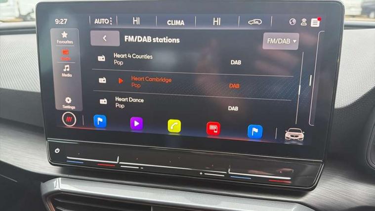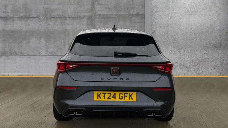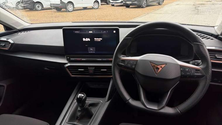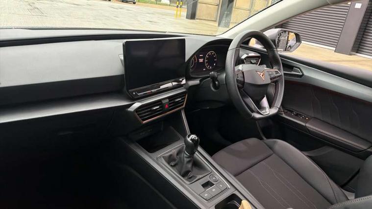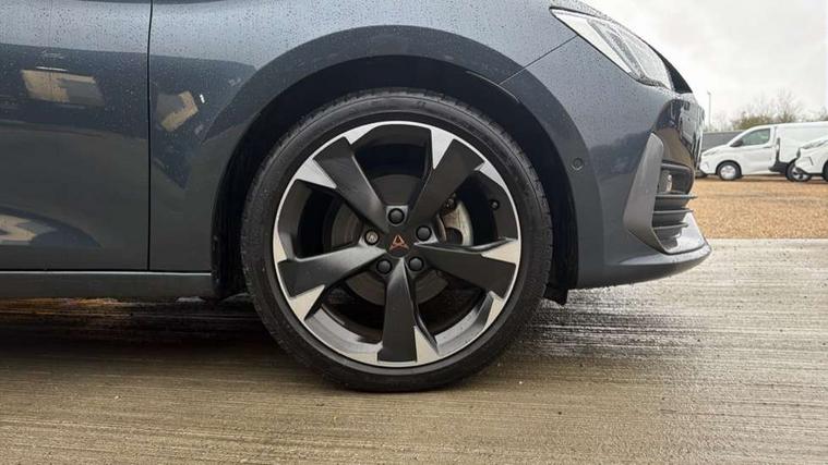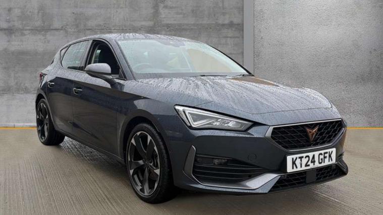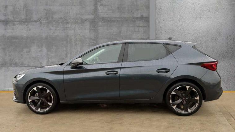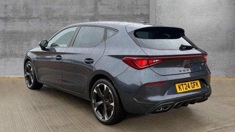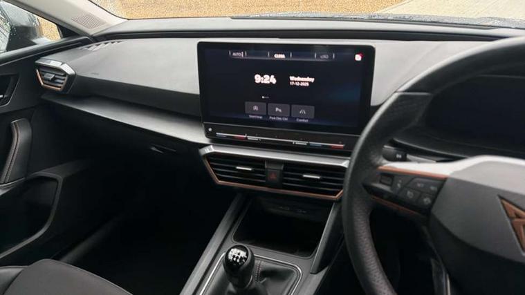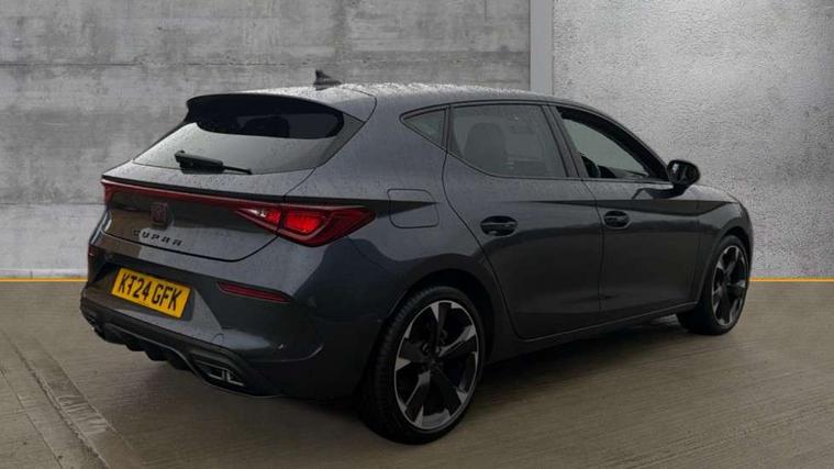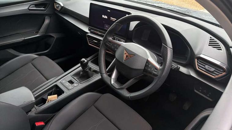 CUPRA drive profile selection with (Comfort/Sport/Individual), throttle response and gearshift mode, Digital cockpit, E-call, Electro mechanical speed sensitive power steering, Four x USB Type C ports (2 in front and 2 in rear), Front assist with forward collision warning braking reaction to vehicles, pedestrians and cyclists, Full link smartphone integration with Mirror Link, wireless Apple CarPlay and wired Google Android Auto, Lane assist, Lockable tailgate, Park assist (inc front/rear parking sensors), Rear view camera, RPM, trip computer, outside temp gauge, instrument light brightness, low fuel warning light, lights on reminder, gearshift indicator, Service interval indicator, Start/stop system with regenerative braking, Wireless phone charger, Sports suspension, Auxiliary input socket, Auto dimming rear view mirror, Body colour door handles, Body coloured bumpers, Cupra sports bumpers, Dark tinted rear windows, Electric front/rear windows, Electrically adjustable, heated and folding door mirrors, LED front fog lamps with cornering function, LED headlights with dynamic turn signals, tail lights, rear fog lights with rear coast to coast lighting, Rain sensing wipers, Rear diffuser with twin exhaust pipe on each side, Rear side wing doors, Rear wash/wipe, Separate daytime running light with automatic headlight control and coming home feature, Third brake light, 12v power supply in centre console, 3 seat bench in 2nd row, 5 headrests, 60/40 split rear bench seat with armrest, Ambient lighting with glovebox, footwell and single monocolour, Cupra Leather flat bottomed, perforated steering wheel, Driver/passenger manual seat height adjustment, Folding boot cover, Front and rear reading lights X 4, Front centre armrest, Front seats manual lumbar adjustment, Grey headlining, Height/reach adjust steering wheel, Illuminated interior front door sills, ISOFIX points in outer rear seats with top tether anchorage points, Jack and tool kit, PVC/Cloth upholstery with copper stitching, Single front passenger seat, Sports seats, Sunvisors with illuminated mirror, Three zone climate control, Media system plus with navigation pack - Leon Cupra, Safety and driving pack (M) - Cupra leon, 3 point seatbelts on all rear seats, ABS, Brake control system - ESC and brake booster, Child proof door locks, Cupra black brake calipers, Driver and front passenger airbags with front passenger airbag de-activation, front side and curtain airbags, Electronic parking brake, Extended safety system - seat belt tensioner, window closure and hazard lights, Hill hold control, Rear disc brakes, Seat belt reminder for front and rear seats, Tiredness recognition system, Tyre pressure monitoring system, Anti theft alarm system with interior monitoring in cab, backup horn and towing protection, KESSY Advanced - Keyless start, keyless entry, Locking wheel bolts, Chrome and copper interior detailing, 18" Machined sport black and silver alloy wheels with 92Y tyres,