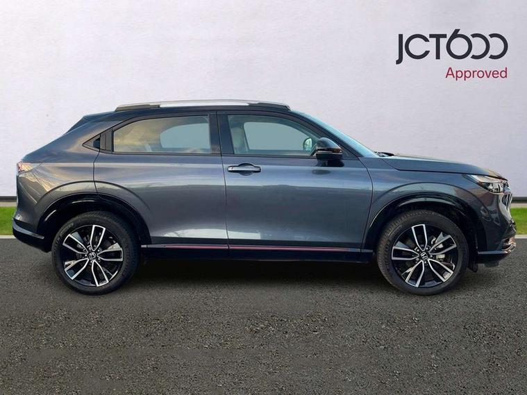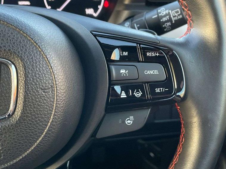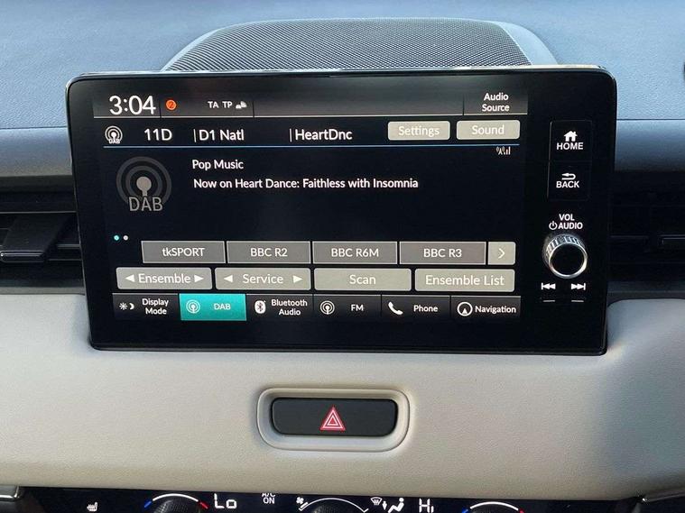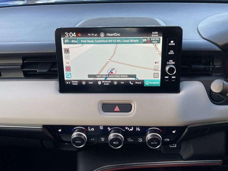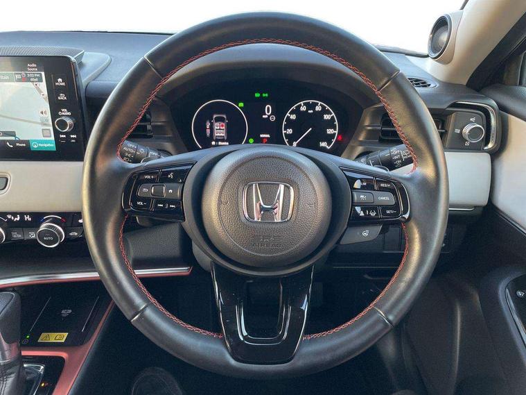 7" TFT instrument cluster, Adjustable speed limiter, Agile handling assist, BLIS (Blind Spot Information System) with Cross Traffic Monitor, Bluetooth hands free telephone connection, Drive modes select (Eco, normal and sport), eCall emergency system, Electric power steering, Emergency stop signalling system, Forward collision warning, Handsfree power tailgate with walkaway close, Honda CONNECT with navigation, 9" touchscreen, AM/FM/DAB/Apple Carplay and android auto, Honda sensing with blind spot information, adaptive cruise control and lane keep assist, Idle stop, Intelligent speed limiter, Low speed following, Rear parking sensors and rear view camera, Tachometer, Traffic sign recognition, WiFi connectivity, Wireless charger, Vehicle stability assist, 'Shark fin' mobile antenna, 2 USB sockets in rear, 2x USB Front socket (1 data & 1 charge), Premium audio system, Steering wheel mounted remote controls, Auto dimming rear view mirror, Auto headlight levelling, Auto high beam, Automatic coming home lighting, Automatic headlights, Automatic rain sensing wipers, Body colour bumpers, Body colour tailgate spoiler, Body coloured door handles, Electric front and rear windows, Electrically adjustable and heated door mirrors, Exterior and interior unique colour scheme (orange, white & blue accents), Front sequential turn, Front wiper de-icer, Headlight washers, Heated front windscreen, Heated rear window, High gloss side window surrounds, High level third brake light, LED cornering lights, LED daytime running lights, LED front fog lights, LED headlamps, Rear side wing doors, Rear wiper, Retractable/reverse auto tilt door mirrors, Roof rails, Smoked tail lights, Two tone roof, Variable front intermittent wipers, Windscreen shadeband, 3 rear headrests, 3 seat bench in 2nd row, 60/40 split folding rear seat, Ambient interior lighting, Cargo net hooks, Courtesy lights, Driver seat back pocket, Driver's seat height adjustment, Driver/passenger sunvisors with illuminated vanity mirrors, Dual automatic air conditioning, Front and rear map reading lights, Front head restraints, Front seat armrests, Heated front seats, Heated steering wheel, Isofix points, Luggage area under floor storage box, Magic seat flexibility system, Manual height/reach adjust steering wheel, Paddle shift controls, Passenger seat back pocket, Rear centre armrest, Rear ventilation, Single front passenger seat, Smooth leather steering wheel, Tonneau cover, Trunk cargo band, Trunk light, 3x3 point rear seatbelts, ABS+EBD+Brake assist, Anti-whiplash front headrests, Collision mitigation braking system, Collision mitigation throttle control, Deflation detection system, Dual front SRS airbags, Electric child locks, Electronic parking brake, Front and rear curtain airbags, Front and rear safety belts with Emergency Locking Retractor, Front side airbags, Hill descent control, Hill start assist, Low speed safety system, Passenger SRS airbag cut-off device, Regenerative braking system, Door deadlocks, Immobiliser, Keyless smart entry with push button start, Mirrors and windows key fob operation, Remote central locking with 2 remote folding keys, Security alarm, 18" Black cut alloy wheels, Tyre repair kit,