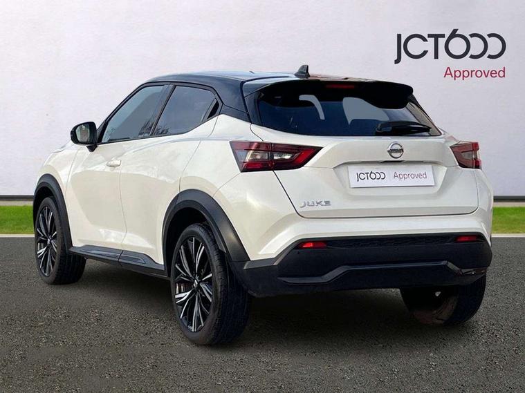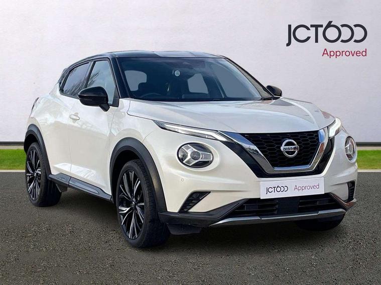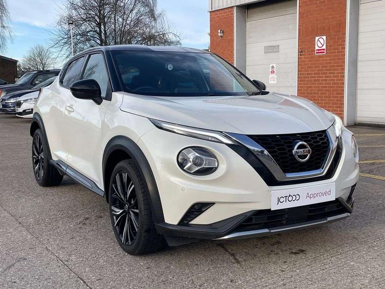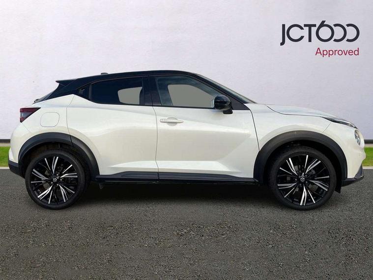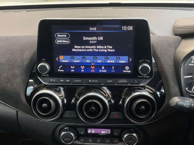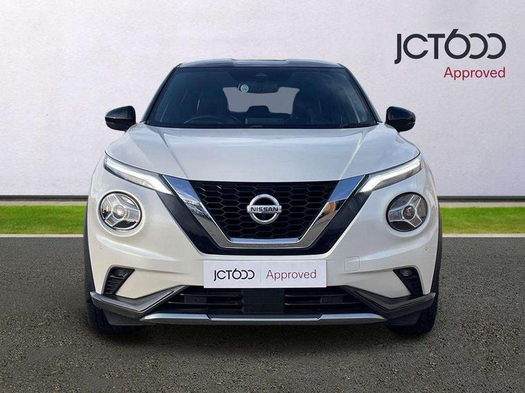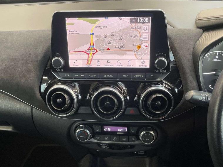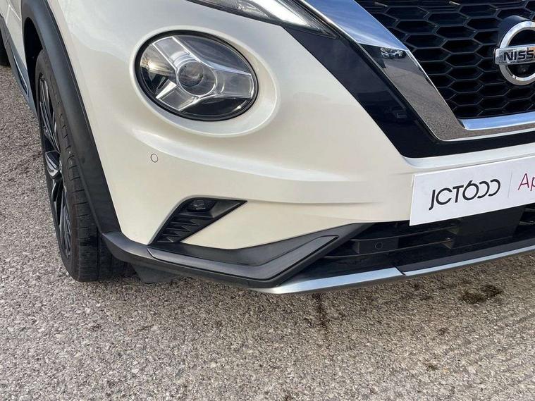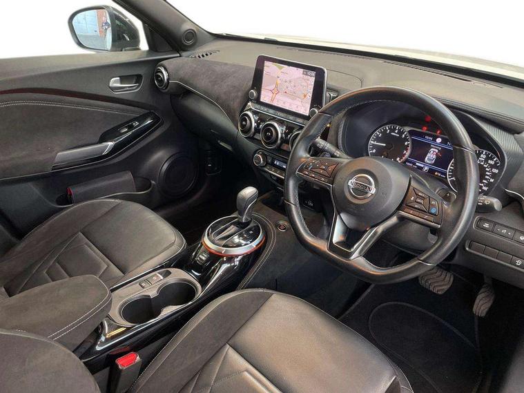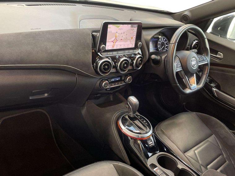 7" full colour TFT screen combimeter, 8" infotainment colour display with touch screen, Apple CarPlay and Google Android auto, Drive modes select (Eco, normal and sport), Emergency and breakdown call, Front parking sensor, Idle start/stop system, Intelligent lane intervention, Lane departure warning system, Nissan connect nav with TomTom traffic, Nissan connect services and Wifi connection, Outside temperature sensor, Power Steering, Rear parking sensor, Traffic sign recognition, Trip computer, Gasoline particulate filter, Bluetooth system, USB, Aux-in and 12V socket, Bose personal plus audio system with 8 speakers(4 speakers and 2 headrest speaker for driver and passenger seats), Bose personal sound stage control, DAB Digital radio, Front lower bumper painted in silver finisher, Rear console USB port, Auto dimming interior rear view mirror, Automatic hazard signal with emergency stop signal, Body colour bumpers, Body colour door handles, Electrically adjustable door mirrors with integrated indicators, Follow me home headlights, Front and rear electric window with one touch driver window, Heated and auto folding door mirrors, High beam assist, LED daytime running lights, LED front fog lights, LED headlamps, LED rear fog lamp, LED rear lamps, Rain sensor windscreen wipers, Rear privacy glass, Rear wiper, Thermaclear heated windscreen, Three blink turn signal, 3 height adjustable rear headrests, 60/40 split folding rear seat, Automatic climate control, Card holder on driver sunvisor, Door ambient lighting, Driver and passenger sliding and reclining seats, Driver seat back pocket, Driver side rear coat hanger, Driver/passenger sunvisors and vanity mirrors, Front and rear cabin lights, Front armrest, Front door pockets with bottle holders, Front head restraints, Front passenger isofix child seat anchorage point, Front/rear passenger grab handles, Gear console ambient circle lighting, Grey synthetic leather kneepad, Heated front seats, Height adjustable driver's seat, Height adjustable passenger seat, Internal chrome door handles, Leather gearshift knob, Leather steering wheel, Luggage board, Luggage space lighting, Monoform sporty seats, Multifunction steering wheel, Passenger seat back pocket, Rear door bottle holders, Steering wheel mounted gearshift paddles, Telescopic steering wheel adjustment, Two cupholders in front centre console, Two rear isofix child seat anchorage points with top tether, Voice recognition switch on steering wheel, Welcome light and console tray ambient lighting, ProPilot pack - Juke, ABS with EBD and brake assist, Active ride control, Active Trace Control, Driver and passenger airbags, Driver and passenger side airbags, Electric handbrake with auto hold function, Electronic Stability Programme (ESP), Front and rear curtain airbags, Height adjustable seatbelts, Hill start assist, Intelligent emergency braking with pedestrian and cyclist recognition, Seatbelt reminder for driver/front passenger and rear seats, Single tone horn, Three 3 point rear seatbelts, Traction control, Tyre pressure monitoring system, VDC Dynamic Vehicle Control, Ventilated rear brake discs, Alarm, Immobiliser, Intelligent Key with push button starter, Remote central locking, 19" Akari alloy wheels,