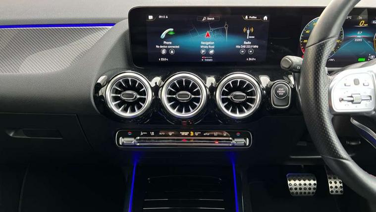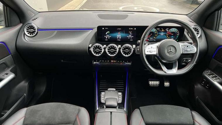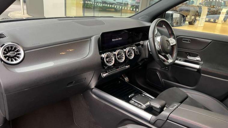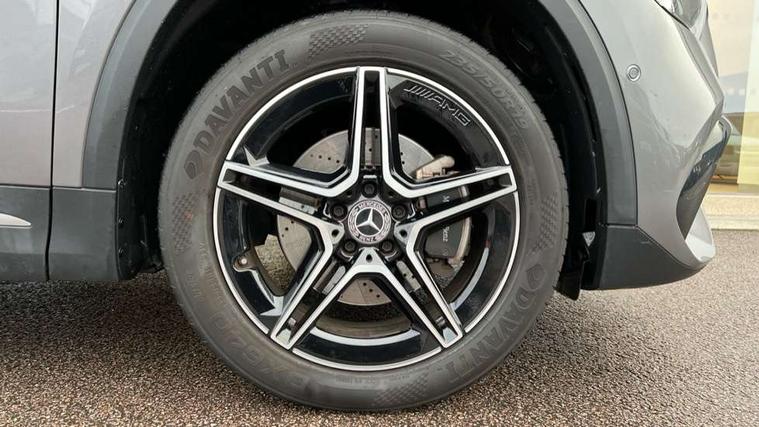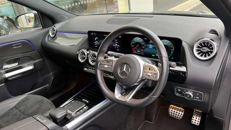 10.25 inch touchscreen central media display, 10.25" Digital instrument cluster display screen, Acoustic ambient protection, Active lane keeping assist, Attention assist, Cruise control + speed limiter, Direct steering, DYNAMIC SELECT with a choice of driving modes (ECO, Comfort, Sport and Individual), ECO start/stop function, Fluid level warning indicator for fuel, oil, coolant and washer fluid, Hard-disk navigation, Hey Mercedes Voice activation, Lamp failure indicator, Mercedes me connect including emergency call system, accident recovery, breakdown and maintenance management, Mercedes me remote services, Multi function trip computer, Outside temperature gauge, Owners manual and service booklet in English, Pre-installation of private car share, Radio aerial integrated into front and rear windshields, Service indicator (ASSYST), Smartphone integration with Apple CarPlay and Android auto, Speed limit assist, Status display for rear seat belts in instrument cluster, 4m charging cable for wall box/public charging stations(mode 3), Charging system - AC charging system rated at 7.4 kW, Comfort suspension, Rear axle multi-link, 2 USB ports (type C) in rear stowage compartment and one in front of center console, Bluetooth connectivity including audio streaming, DAB Digital radio, MBUX multimedia system, Media interface, Mercedes-Benz (225w) sound system with 10 speakers, Adaptive brake lights, Aerial for GPS, Aluminium roof rails, AMG front and rear apron, AMG specific/dual flow exhaust pipes in chrome (non-functional), Automatic headlamp activation, Beltline strips and weather strip in chrome, Black grained claddings with chrome parts, Body colour bumpers, Body colour door mirrors, Body coloured door handles with chrome insert for keyless entry, Car wash function, Dark privacy glass from B-pillar backwards, Electric front windows, Electric rear windows, Electrically adjustable and heated door mirrors with integrated LED indicators, EQ badging, Front bumper with underride guard in high gloss chrome, Heat insulating dark tinted glass, Heated glass rear windscreen + timer control, Heated windscreen wash system, Interior mirror with black reading lamps and frameless, LED high performance headlamps with integrated LED daytime running lights, LED tail lights in two piece design, LED third brake light, Matt titanium grey front and rear apron trim, Rain sensor windscreen wipers, Rear fog lights, Rear side wing doors, Rear wiper, Roof spoiler, Single lamella raditor grille with chrome dotted diamond grille and inlay, 12V power socket in centre console, 3 seat bench in 2nd row, 3 spoke multifunction sports steering wheel in nappa leather with flattened bottom and perforated grip area, 40:20:40 split folding rear seat backrests, Adjustable head restraints, Air conditioning - Two zone thermotronic luxury automatic climate control with display, Ambient lighting in front headrests, AMG floor mats in black with AMG lettering in front, Artico man-made leather/Microcut microfibre upholstery with red contrast stitching, Auto Mercedes-Benz child seat recognition sensor, Black roof lining, Brushed door pulls in silver chrome, Charging socket, Courtesy light in boot, Floor mats in velour, Front centre armrest with stowage, Galvanished gear shift paddles on steering wheel, Heated front seats, illuminated door sills with changeable cover, Illuminated glovebox, Interior lighting - 64 colour Ambient lighting, Leather trimmed gearknob, Luggage net on driver/front passenger seat backrest, Manually height and reach adjustable steering column, Multi-gesture touchpad control on center console, Pre-entry climate control, Single front passenger seat, Sports pedals in brushed stainless steel with black rubber studs, Sports seats, Stowage compartment in centre console, Stowage compartment with retractable cover, Sunvisors with illuminated vanity mirrors, Twin front cup holders, Two outer rear seat isofix and top tether child seat fixing points, AMG body styling pack - GLA, Comfort seat pack - GLA Class, Interior lighting with light and sight pack - GLA, Keyless go comfort package - GLA, Load compartment pack - GLA, Mirror pack - GLA Class, Parking pack - GLA, 3 rear 3 point seatbelts, ABS with Brake Assist, Active bonnet pedestrain safety measure which detects an impact and raises bonnet by 65mm, Active brake assist includes forward collision warning system with autonomous braking, Adaptive brake assist with hold function and hill start assist, Bonnet with power domes, Brake pad wear warning indicator, Childproof locks manually operated for rear doors and electrically operated for rear power windows, Crash responsive emergency lighting, Driver and passenger head and side airbags, Drivers knee airbag, Dual stage driver/passenger airbags, Electronic parking brake, ESP curve dynamic assist, ESP with ASR, Front and rear seatbelt reminder, Front brake callipers with Mercedes Benz logo lettering on front, Front brake discs internally ventilated and perforated, Front passenger seat occupancy sensor, Radar-based recuperation, Sports braking system, Tyre pressure monitoring system, Warning triangle and first aid kit, Window airbags, Alarm system with immobiliser and interior protection -Thatcham category 1, Keyless entry lock/unlock, Keyless Go starting function, Remote central locking and crash sensor with emergency opening function, Urban guard vehicle protection, Vehicle key with decorative surround in chrome, Carbon structure trim, Chrome air vent surrounds, 19" AMG 5 twin spoke light alloy wheels painted in high gloss black with high sheen finish, Summer tyres, Tirefit tyre sealant kit,