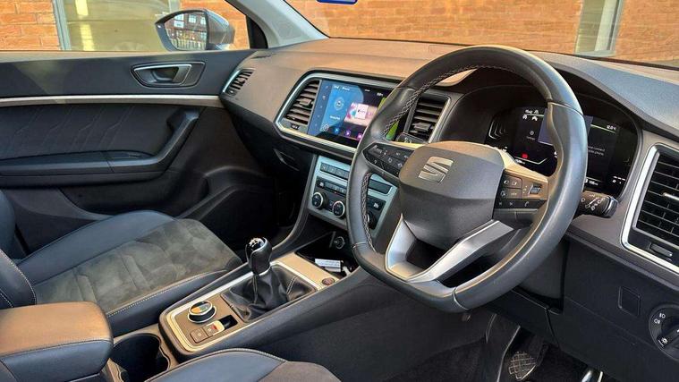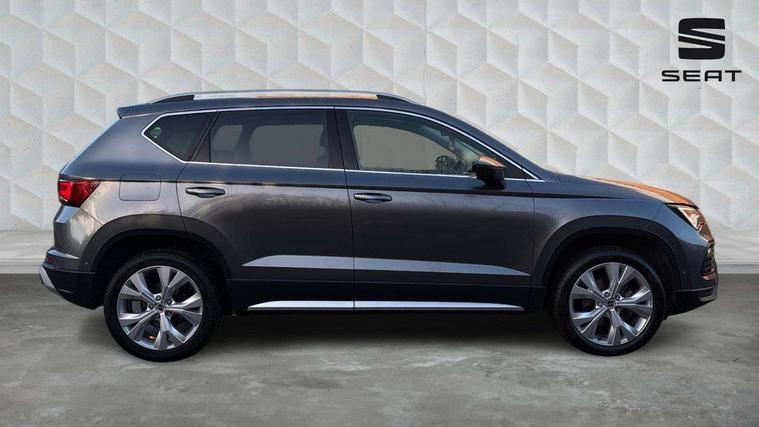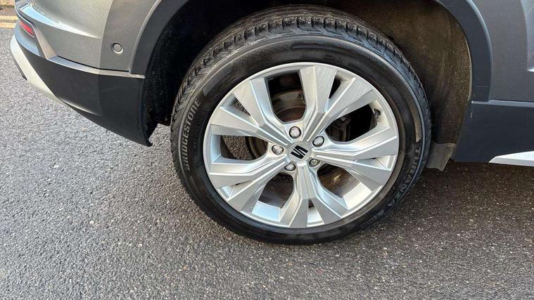 8" Digital cockpit, Colour multi-function on board computer display, E-call, Outside temperature gauge, Progressive power assisted steering, Rear view camera, SEAT drive profile with driving experience button - Normal, Sport, Eco and Individual mode, steering and throttle response, Self parking functionality (includes front and rear parking sensors), Start/stop system, Tailgate, Trip computer, Wireless full link smartphone integration, Wireless phone charger, Steering wheel mounted audio/phone controls, Black simulated exhaust pipes, Black wheel arch surrounds, Body colour bumpers, Chrome front grille frame, Chrome roof rails, Chrome side window trim, Dark tinted rear windows, Daytime running lights, Door mirrors with welcome light silhouette, Dynamic headlight range control with self adjusting whilst driving, Electric adjustable/heated/folding door mirrors, Front and rear electric windows, Front grille hot stamping, Full LED headlamps with lens and LED front fog lamps with cornering function, Illuminated aluminium front door sill, LED rear tail lights with dynamic indicators, Rear fog lights, Rear side wing doors, Rear wash/wipe, Reflex silver side mouldings, Variable front intermittent wipers, 12V socket in front, 3 seat bench in 2nd row, 60/40 split folding rear seat, Drawer under right front seat, Dual zone climate control, Front and rear head restraints, Front centre armrest, Front seat back storage pockets, Height adjustable driver and passenger seat with lumbar adjustment, ISOFIX points in outer rear seats with top tether anchorage points, Leather steering wheel and gear knob, Microsuede upholstery with front comfort seats, Rear armrest and easy back seat release mechanism from boot, Single front passenger seat, Convenience pack - Ateca, Interior lighting pack - Ateca, Navigation system pack with DAB - Ateca, Safe and driving pack with lane assist - Ateca, 3x3 point rear seatbelts, ABS, Traction control system (TCS), Electronic stability control (ESC) and Electronic differential lock system (XDS), Airbags - Driver and front passenger airbag with deactivation, front side, two curtain and driver's knee airbags, Electric parking brake with auto hold function, Front and rear seatbelt reminder, Hill hold control, Manual rear child locks, Single tone horn, Tiredness recognition system, Traction control, Tyre pressure monitoring system, Alarm, Keyless entry, Locking wheel bolts, Remote central locking, Chrome interior detailing, 18" Brillaint silver alloy wheels,