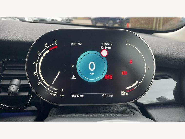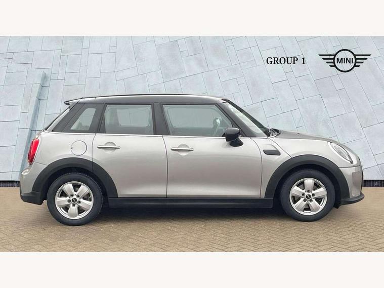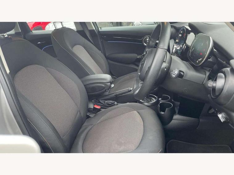 Apple CarPlay, Automatic start/stop function with brake energy recuperation, Compatible mobile phone bluetooth with audio streaming, Electro-mechanical speed dependant steering assistance, Flexible car sharing preparation, Mini E-call, MINI TeleServices, On board computer, Service interval indicator, Double Vanos system, Fully variable valve control, Gear change indicator display, High precision injection, Performance Control, Steptronic transmission with double clutch, 8.8" touchscreen with LED ring, FM tuner and DAB digital radio, 3rd brake light, Automatic headlight activation switch, Body colour fuel filler cap, Chrome border high gloss black slats radiator grille, Dynamic brake lights, Electric front+rear windows, Exhaust tailpipe on left with chrome finisher, Heated rear window, Heated windscreen washer jets, Metal door sill strips with MINI imprint, Model logo Cooper on right of tailgate, Rain sensor window wipers, Rear fog lights, Rear LED lights with union jack design, Rear side wing doors, Rear window wiper, Side scuttle panel with integrated indicator, Sun/heat protection glass, White indicator lenses, 12V Accessory socket in centre console, 3 seat bench in 2nd row, 4 lashing eyes in luggage compartment, 60/40 split folding rear seat, Ambient lighting, Carbon black colour line - Knee roll and door armrest, Chrome interior highlights, Cupholders, Front and rear head restraints, Front and rear isofix with front passenger airbag deactivation, Front and rear velour floor mats, Glove compartment, Height and length steering column adjustment, Interior lighting with 12 different colours across the dashboard, underneath door bezel with illuminated laser-engraved design on central display, Leatherette gearshift lever and handbrake gaiters, LED reading lights, vanity mirror lights, front foot well light and spotlight on front seats, Mechanical seat adjustment - forward/back & backrest for front seats and driver seat height adjust, Multifunction steering wheel, Satellite grey headlining including grab handles and clothes hooks, Single front passenger seat, Sport leather steering wheel with speed limiter and audio/communication controls, Storage compartments in doors, Sunvisors with vanity mirrors, 3 point seatbelts on all five seats, 6 Airbags - front, side, head and seat belt tensioners, Anti-lock braking system (ABS), Child locks on rear doors, DSC - Dynamic Stability Control, Front and rear disc brakes, Hill start assist, Single tone fanfare horn, Tyre pressure monitoring system, Alarm system with tilt sensor, monitoring doors, bonnet interior and tailgate, Electronic vehicle immobiliser, Start/stop toggle with keyless go, Piano black interior trim, Tool kit, Tyre repair kit,