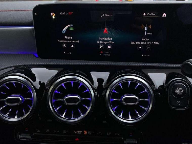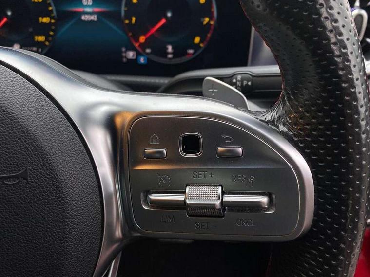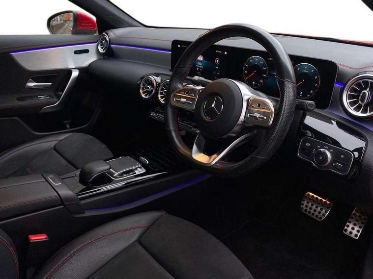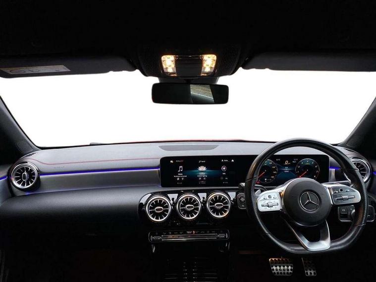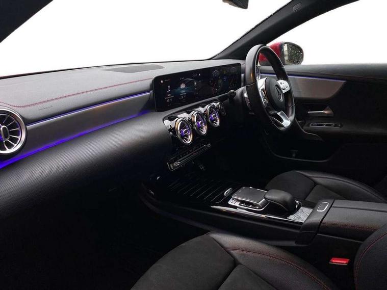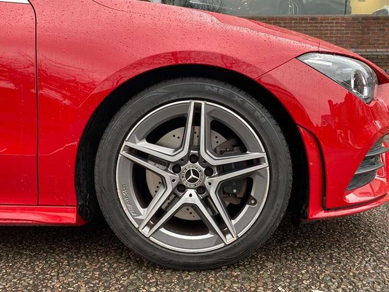 10.25 inch Instrument display with digital cockpit, 10.25 inch touchscreen media display, Active lane keeping assist, Attention assist - Monitors steering behaviour and long journey fatigue, Bluetooth connection, Car wash mode, Cruise control with limiter, Direct steer system with speed sensitive power steering, DYNAMIC SELECT with a choice of driving modes (ECO, Comfort, Sport and Individual), ECO start/stop function, Fluid level warning indicator for fuel, oil, coolant and washer fluid, Hard-disk navigation, Hey Mercedes Voice activation, Lamp failure indicator, MBUX multimedia system with DAB digital radio and touchpad including satellite navigation, Mercedes me connect including emergency call system, accident recovery, breakdown management and maintenance, Mercedes me remote services, Outside temperature gauge, Owners manual and service booklet in English, Pre-installation of private car share, Preinstallation for Mercedes Benz link, Radio aerial integrated into front and rear windshields, Service indicator (ASSYST), Smartphone integration with Apple CarPlay and Android auto, Speed limit assist, Trip computer in multifunction display with current consumption indicator, 7G-DCT 7 speed automatic transmission, Lowered comfort suspension, Rear axle multi-link, DAB digital radio tuner, Mid-range sound system, USB (type C) ports (2) in stowage compartment and 1 in front of centre console, Adaptive brake lights, AMG body styling with AMG front apron and rear apron and visible exhaust tailpipe in chrome trim elements, AMG bodystyling side skirts, Body colour bumpers, Body colour door handles, Chrome beltline strips, Chrome weather strip, Diamond radiator grille pins in chrome with silver painted louvres and chrome insert, Electric windows, Electrically adjustable and heated door mirrors with integrated LED indicators, Exhaust system with 2 Visible tailpipe trim elements and rear apron with trim in chrome, Headlamp assist automatic headlamp activation, Heated glass rear windscreen + timer control, High level LED third brake light, Interior mirror with black reading lamps and frameless, LED high performance headlamps with integrated LED daytime running lights, LED tail lamp, Privacy glass with dark tinting on rear side windows and rear window, Rain sensing windscreen wipers with two sensitivity settings, Rear boot, Rear fog lamp, Rear side wing doors, Window line trim strip in chrome, 3 seat bench in 2nd row, 3 spoke flattened bottom nappa leather multifunction steering wheel with perforated leather in grip area, 40:20:40 split folding rear seats with backrest, Air conditioning - Two zone thermotronic luxury automatic climate control with display, Air vents with surround in silver chrome, Automatic child seat recognition sensor, Black roof lining, Brushed stainless steel sports pedals with rubber studs, Floor mats with stitched AMG lettering, Front centre armrest with stowage, Galvanished gear shift paddles on steering wheel, Heated front seats, Illuminated front door sills with changeable cover, Illuminated glove compartment stowage, Interior lighting - 64 colour Ambient lighting, Luggage net on driver/front passenger seat backrest, Manually adjustable front seats, Manually height and reach adjustable steering column, Rear armrest with two integral cup holders for drinks, Rear head restraints, Single front passenger seat, Sport seats with fixed head restraints, Stowage compartment in centre console with retractable cover, Sunvisors with illuminated vanity mirrors, Touchpad on center console, Twin front cupholders, Two outer rear seat isofix and top tether child seat fixing points, Keyless go pack - CLA, Light and sight pack - CLA, Mirror pack - CLA, Parking package - CLA, Seat comfort pack - CLA, Active bonnet pedestrain safety measure which detects an impact and raises bonnet by 65mm, Active brake assist includes forward collision warning system with autonomous braking, Adaptive brake assist with hold function and hill start assist, Anti-lock braking system (ABS), Black seat belts, Bonnet with power domes, Brake pad wear warning indicator, Childproof locks manually operated for rear doors and electrically operated for rear power windows, Crash responsive emergency lighting, Driver and front passenger head and sidebags, Driver and front passenger windowbags, Drivers knee airbag, Dual stage driver and front passenger airbags, Electric parking brake, Electronic stability programme with acceleration skid control, ESP curve dynamic assist, Front and rear seatbelt reminder, Front passenger seat occupancy sensor, Three point rear seat belts, Tyre pressure monitoring system, Warning triangle and first aid kit, Remote central locking and crash sensor with emergency opening function, Urban guard vehicle protection system with immobiliser and interior protection, Light aluminium with longitudinal grain interior trim, 18" 5 twin spoke design alloy wheels painted in titanium grey with high sheen finish, Summer tyres, Tirefit tyre sealant kit,