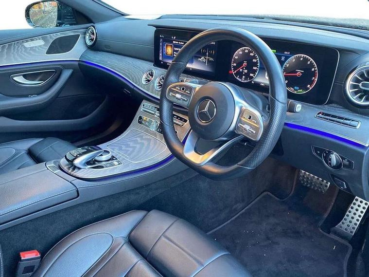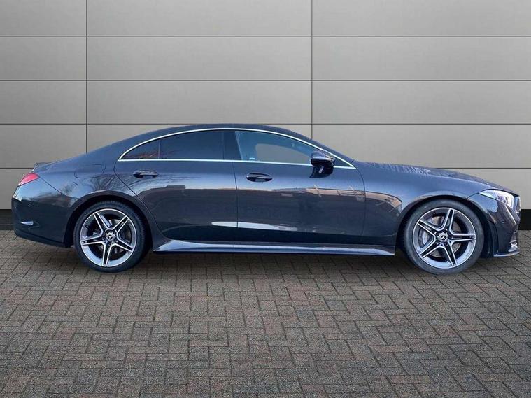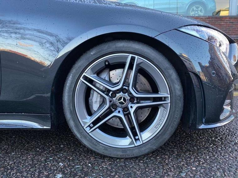 Active park assist, Analogue clock on centre console, Attention assist, Brake wear warning light, Cockpit display 12.3" widescreen digital instrument cluster, Collision prevention assist plus, Cruise control + speed limiter, Direct steer speed sensitive steering, DYNAMIC SELECT with a choice of driving modes (ECO, Comfort, Sport, Sport+ and Individual), ECO start/stop function, Front and rear parking sensors, High resolution 12.3" multimedia colour display, Lane keep assist, Mercedes connect me, Outside temperature gauge, Remote boot release, Reversing camera, SD card based satellite navigation system, Service indicator (ASSYST), Speed limit assist, Status display for rear seat belts in instrument cluster, Trip computer in multifunction display showing current fuel consumption, Wireless charging, 80 litre fuel tank, Agility control lowered suspension with selective damping system, Petrol Particulate Filter, 2 USB ports in centre console, Audio 20 with USB, touchpad and control wheel with Media Interface with Bluetooth interface and hands-free function, DAB Digital radio, Adaptive brake lights, AMG bodystyling front and rear aprons and side skirts in polished aluminium, Body colour door mirrors, Body coloured bumpers, Chrome door handles, Dark privacy glass from B-pillar backwards, Electric adjustable heated door mirrors, Electric front/rear windows with one touch opening and closing, including obstruction sensors, Green tinted glass, Heated windscreen wash system, LED daytime running lights, LED rear lights, Lip spoiler, Multi beam intelligent LED headlight system with adaptive high beam assist plus and ultra range high beam, Polished aluminium waistline, Pre-installation for roof rail systems, Radiator grille with integral star and 1 louvre in matt iridium silver with chrome trim, Radio aerial in rear window, Rain sensor windscreen wipers, Rain sensor with automatic headlight activation, Side windows surround in polished aluminium, Visible twin exhaust tailpipe in bumper, Welcome lighting, 12V Accessory socket in centre console, 3 rear seats, 3 spoke flat bottom multi function steering wheel trimmed in black nappa leather with touch control buttons, 4 way partially electric adjustable front seats, 40:20:40 split folding rear seats, AMG brushed stainless steel sports pedals with aluminium rubber studs, AMG floormats, Artico man-made leather upper dashboard and beltlines with contrast stitching, Auto Mercedes-Benz child seat recognition sensor, Automatic two zone climate control, Black roof liner, Centre armrest and door handle illumination, Chrome door pins, Courtesy lights in rear grab handles with reading light functionality, Front and rear door pockets, Front centre armrest with storage compartment, Glasses compartment in overhead control panel, Head restraints for driver and front passenger (four-way adjustability) and in rear (two-way), Heated front seats, Height/reach adjust steering wheel, Interior lighting - 64 colour Ambient lighting, Interior rear light/integral reading lights, Leather gear knob, Leather upholstery, Lockable/illuminated air conditioned glovebox, Rear armrest with storage + cupholders, Seat occupancy sensor for front passenger seat, Steering wheel gearshift paddles, Steering wheel touch control buttons for audio and onboard settings, Storage compartment under load area floor, Sunvisors with illuminated vanity mirrors, Mirror pack - CLS, Seat Comfort Pack - CLS, Stowage Pack - CLS, 3 point seatbelts, 3x3 point rear seat belts, ABS, Active bonnet pedestrian safety measure which detects an impact and raises bonnet, Active brake assist, Adaptive brake system with HOLD function and brake drying in the wet, Airbags - driver and front passenger, with extended adaptivity for front passenger airbag, Airbags - sidebag for driver and front passenger with combined thorax/pelvis bag, Brake calipers with Mercedes-Benz lettering + perforated brake discs, Childproof locks manually operated for rear doors and electrically operated for rear power windows, Drivers knee airbag, Electronic parking brake, Electronic Stability Programme, Front and rear curtain airbags, Hill start assist, ISOFIX child seat attachment points two outer rear seats, Pre-Safe anticipatory safety system, Rear seatbelt warning indicator, Tyre pressure monitoring system, Warning triangle and first aid kit, Window airbags, Alarm system/interior protection/immobiliser, Central locking with interior switch, automatic locking and crash sensor with emergency opening function, Chrome surround in electric key, Keyless Go starting function, Locking wheel bolts, Remote central locking, Open pore grey ash wood centre console, Open pore grey ash wood dashboard and door trim, 19" AMG 5 twin spoke alloy wheels painted tremolite grey with high sheen finish and tirefit with tyre inflation compressor,