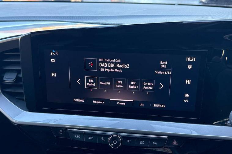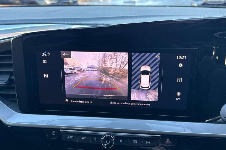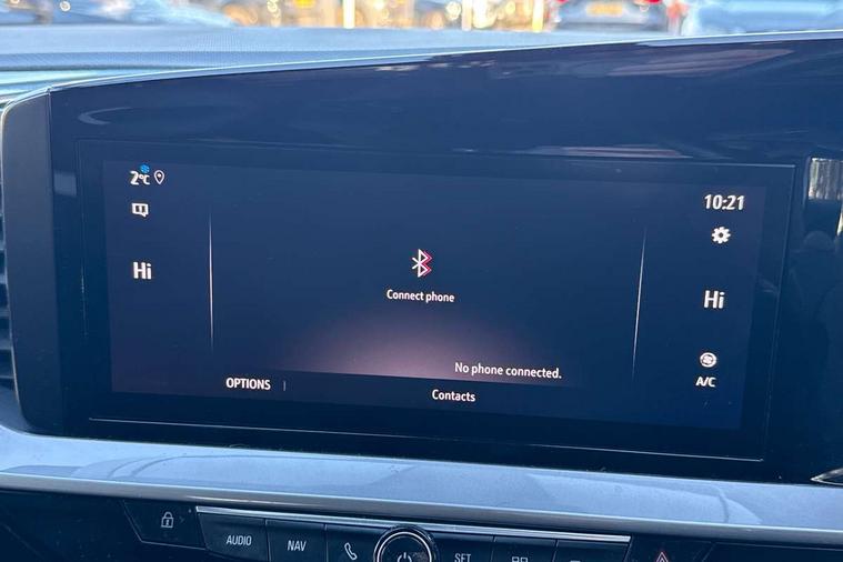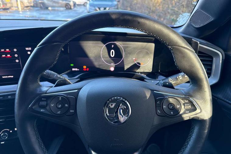 12" digital instrument cluster, Advanced Park Assist, Automatic adaptive cruise control, Digital instrumentation with digital speedometer, rev counter, fuel and water temperature gauge, Driver drowsiness alert system, Driver information display with multi function trip computer, audio info, digital clock and outside air temperature with ice warning function, Engine start/stop button, EV information display, Front and rear parking distance sensors, Front camera system, Lane keep assist system (LAS) with Lane departure warning system (LDWS), Lane positioning assist, Lights on audible warning, Panoramic rear view camera, Power assisted speed sensitive steering, RDS with traffic programme, Side blind spot alert and flank guard, Smartphone integration compatible with Apple CarPlay and Android Auto, Speed sign recognition, Sports switch with engine sound enhancement, Start/stop system, Traffic sign recognition, Vauxhall connect with e-Call, 8 speed automatic transmission, 6 speakers, AM/FM stereo radio with 36 station presets, Bluetooth A2DP audio streaming function (Advanced audio distribuition profile), DAB Digital radio, Flexible Roof Mounted Radio Aerial, Front USB connection, Mobile phone portal - bluetooth connect, vehicle microphone, handsfree calls, SMS read out and reply, phone book access, Multimedia Navi Pro with 10" colour touchscreen, Steering wheel mounted controls, Two rear USB sockets, Adaptive brake lights, Automatic headlamp levelling, Automatic lighting control with tunnel detection, Automatically dimming anti dazzle rear view mirror, Black door mirror housings, Body colour door handles, Body colour front and rear bumpers, Chrome effect front and rear bumper inserts, Chrome effect Griffin logo and vizor frame, Chrome effect skid plates, Chrome effect upper window moulding, Dark tinted rear side windows + tailgate window, Electric folding door mirrors, Electrically operated front and rear windows with safety auto reverse and one touch up/down facility, Hazard warning lights, Heated rear window+rear wash/wipe, High beam assist with anti glare, Integrated black tailgate spoiler, IntelliLux Matrix LED headlights with adaptive forward lighting, LED 3rd brake light, LED daytime running lights, LED front fog lamps, LED side repeat indicators, LED tail lights, Rear foglight, Rear side wing doors, Reversing light, Solar heat absorbing windscreen and windows, Twin electrically adjustable and heated door mirrors, Two speed rain-sensitive windscreen wipers with variable intermittent wipe, Windscreen and side window demist vents, 12V Accessory socket, 3 seat bench in 2nd row, 3 spoke flat bottomed leather steering wheel with satin chrome bezel, 4 speed fan with illuminated controls, 6 way manual adjustable driver fore/aft, up/down with reclining seatback, 6 way manual adjustable front passenger fore/aft, up/down with reclining seatback, Air recirculation system, Alcantara/leather upholstery, Alloy sports pedals, Black headliner, Cabin particulate filter - removes dust, airborne particles and pollen, Centre console with two cup holders at front and one in rear, Chrome effect interior door handles, Door pockets with two litre capacity, Driver and passenger sun visors with vanity mirror, Electronic climate control (ECC), Four adjustable facia vents, Four load restraint lashing eyes, Front centre armrest with storage, Front head restraints, Front map reading lights, Front seat back storage pockets, Fully carpeted load area, Heated front seats, Heated steering wheel, Interior courtesy light, Interior tailgate handle, Luggage compartment cover, Luggage compartment lighting, Movable boot floor, Reach + rake adjustable steering column, Single front passenger seat, Three height adjustable rear seat head restraints, Twin gas assisted tailgate struts, 2x Isofix child seat fitting on outer rear seats, 3x3 point rear seat belts, Anti-lock braking system (ABS), Child proof locks on rear doors, Cornering brake control, Deactivation switch for front passenger front and side impact airbags, Drag torque control, Driver and front passenger airbags, front seat side impact airbags, full size curtain airbags, Electronic brake force distribution, Electronic Stability Programme (ESP), Emergency brake assist, Enhanced automatic emergency city braking, Forward collision alert at all speed, Hill start assist, Inertia reel lap and diagonal seatbelts for all seats, Seatbelt unfastened audible warning and warning light, Straight line stability control, Traction control, Tyre pressure monitoring system, Electronically protected audio equipment, Engine deadlock immobiliser, Freewheeling door locks, Key left in ignition audible warning, Keyless entry and start, Locking wheel nuts, Remote control central locking, Remote control ultrasonic security alarm system, Visible vehicle identification number, Atlantis black trim inserts of front doors, Black facia with silver trim insert, Instrument panel bar in polar silver, 18" bi colour alloy wheels,