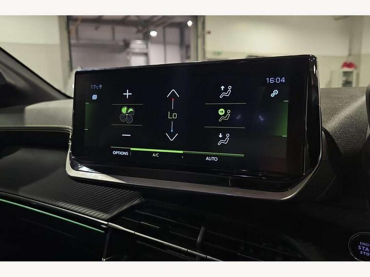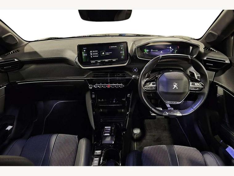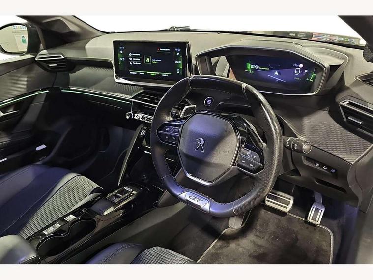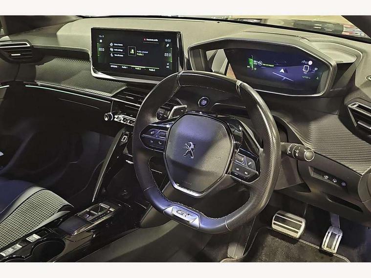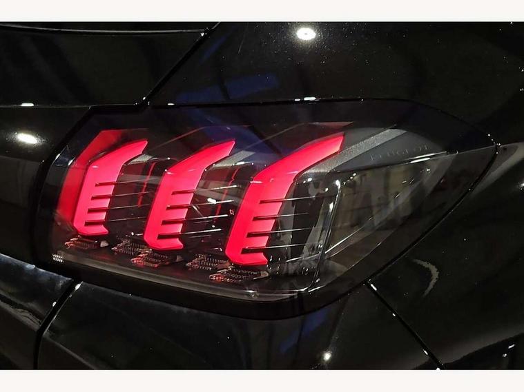 10" Capacitive colour touchscreen with connected 3D navigation, Bluetooth telephone facility, Driver attention warning, e-Toggle driving selector, Exterior temperature indicator with ice warning, Mirror screen with mirror link, apple carplay and android auto, Multi function trip computer, PEUGEOT i-Cockpit with compact steering wheel, PEUGEOT i-Cockpit with configurable 3D headup instrument panel, PEUGEOT SOS and assistance, Push button start, Smart phone docking station, Speed limit recognition and recommendation, Start/stop system, Visio park assist 180 with colour reversing camera + front and rear parking sensor, 2 front USB socket with USB-C, 2x USB sockets in rear, 6 speakers radio with mp3 compatible, DAB Digital radio, Voice recognition for radio, navigation and telephony features, 2 X Rear number plate lights, Automatic hazard light activation upon heavy brake application, Automatic lights, Automatic windscreen wipers, Body coloured exterior door handles, Dark tinted rear side and tailgate windows, Diamond Black roof, Electric front windows + one touch + anti-pinch, Electric rear windows with one touch/anti-pinch, Electrically adjustable, heated and power folding door mirrors, Extended diamond black rear spoiler, Follow me home headlights, Frameless electrochrome interior rear view mirror, Full LED headlights with smartbeam assist, Gloss black finish on B pillar, Gloss black rear cluster connecting strip, Gloss black wheel arch extensions, Gloss black window surround, GT model designation badging on C pillar, GT model designation badging on tailgate, Headlights left on audible warning, LED daytime running lights with 3 claw headlight with distinctive tooth design, LED side indicator lights integrated into door mirrors, LED third brake light, Model designation badges front and rear, Nera black door mirror shells, Peugeot scuff plates, Radiator grille - Dark chrome chequered and gloss black edge trim, Rear bumper with gloss black finish, Rear full LED 3D peugeot signature claw effect lights with daylight function, Rear lower bumper diffuser effect trim in gloss black, Rear reversing lights, Rear side wing doors, Rear windscreen wiper triggered automatically in reverse gear, Roof mounted aerial with fin design, Roof spoiler, Tailgate with heated rear windscreen and wiper blade, Twin chrome exhaust tailpipes, Variable front intermittent wipers, 1/3 to 2/3 split folding rear seats, 12V socket, 3 seat bench in 2nd row, 8 Colour personalisable ambient lighting, Aluminium pedals and foot rest, Automatic air conditioning, Automatic gear lever in full grain leather and satin chrome, Driver and front passenger seat manual adjustment in longitudinal and back rest angle, Driver and front passenger seat mechanical height adjustment, Driver and front passenger sport seats, Electric power steering with reach and rake adjustable steering column, Front and rear carpet mats in black with lime green stitch detail, Front centre armrest with storage compartment, Front LED interior light with 2 reading spotlights and rear interior light with timer, High centre console with 2 cup holders, ISOFIX child seat mounting points on passenger seat, Lime green contrast stitching to armrest, front centre console, door panels and dashboard facia, Map pockets on the backs of the front seats, Mistral full grain perforated leather steering wheel with aikinite stitch detail and satin chrome 'GT' emblem, Paddle shifts, Piano keys gloss black plated toggle switches to access main functions of the vehicle, Piano keys gloss black plated toggle switches to access touchscreen functions, Push button finished in black with chrome circle, Rear centre headrest, Roof lining - Mistral black, Seatbelt unfastened on the move audible and visual alert for front and rear seats, Single front passenger seat, 3 rear 3 point seatbelts, ABS (Anti-lock Braking System) with EBD (Electronic Brakeforce Distribution) and EBA (Emergency Braking Assistance), Active safety brake with night function/cyclists/pedestrians, Adaptive driver and front passenger airbags with passenger airbag deactivation function, Child locking functionality on rear doors, Driver/front passenger side airbags, Electric parking brake, ESP with Hill Assist, Front and rear curtain airbags, Front and rear disc brakes, Front optimised safety headrests and 3 x rear retractable headrests with height adjustable, Front three point retractable seatbelts with force limiters, Tyre pressure sensor, Acoustic vehicle alert system (AVAS), Automatic door locking when moving off, Deadlock, Electronic code immobiliser, Remote central locking, Thatcham cat. 1 alarm with anti lift sensor, Carbon effect Dashboard, front and rear door panel finish, 17" Bronx two-tone alloy wheels, Space saver spare wheel,