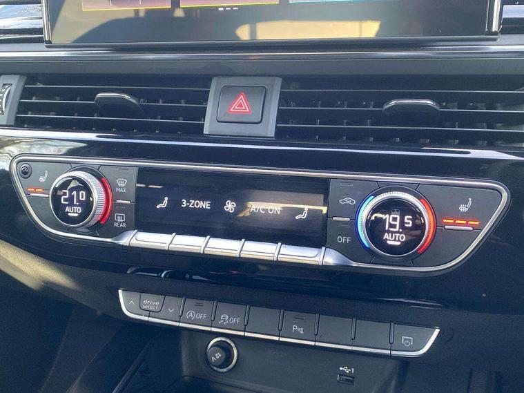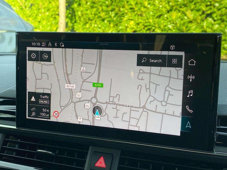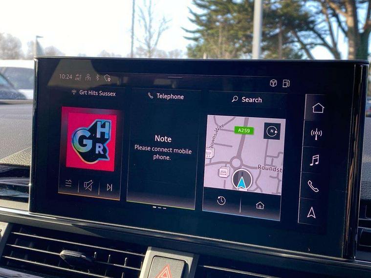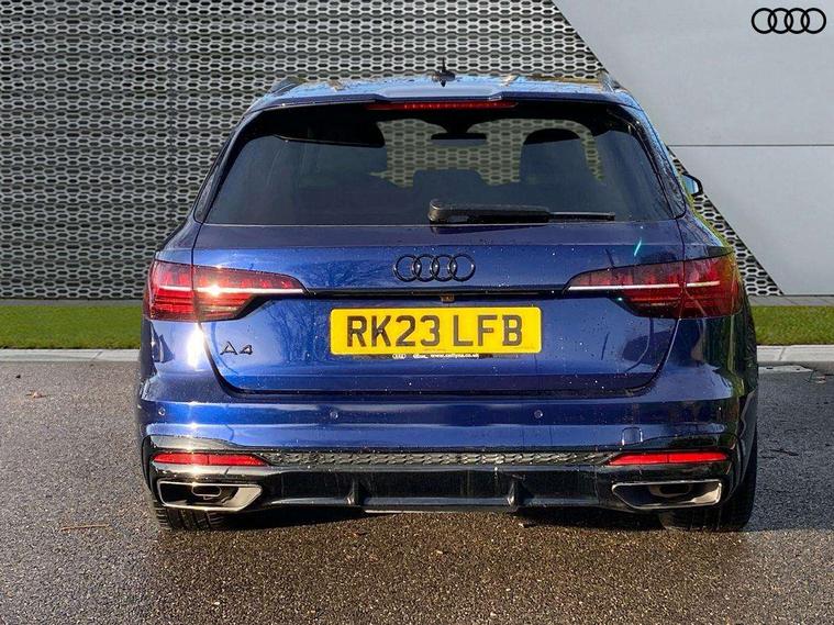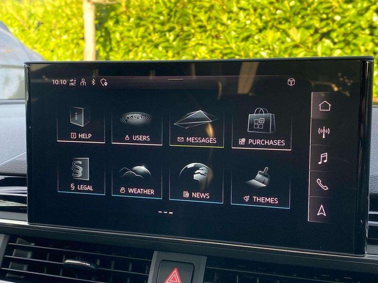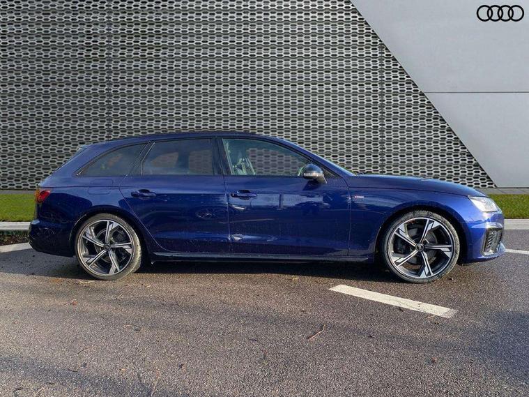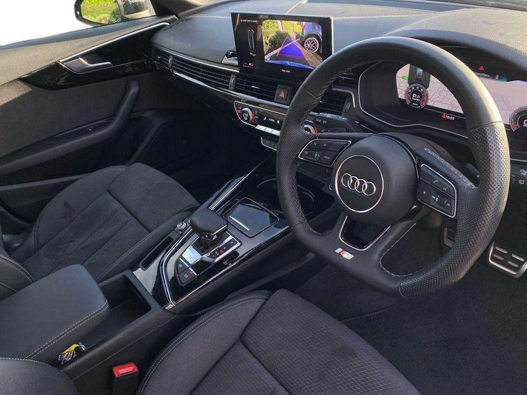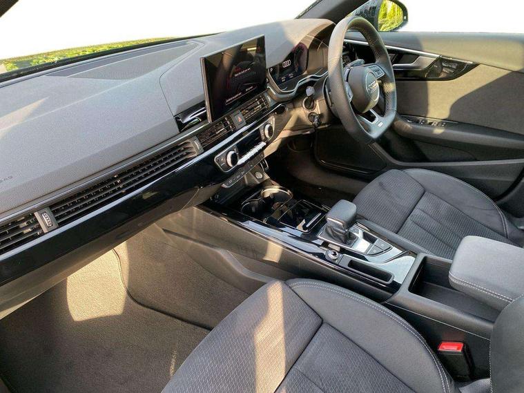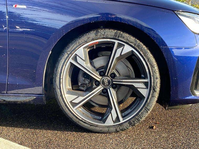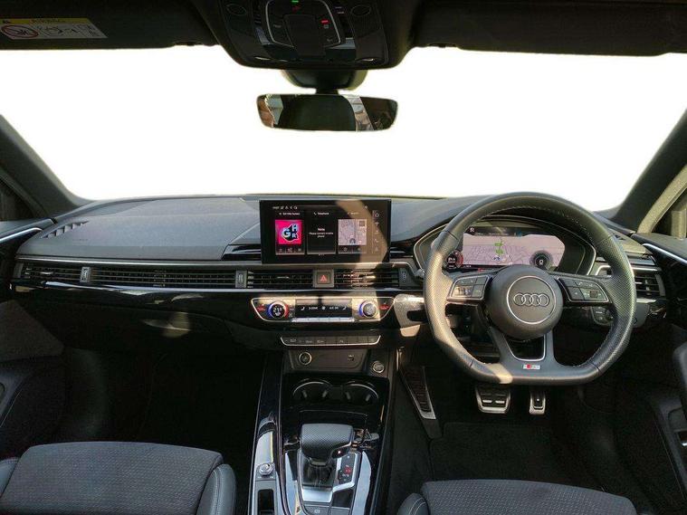 Audi connect safety and service (e-call), Audi connect with Amazon Alexa Integration, Audi drive select, Audi smartphone interface, Audi virtual cockpit, Automatic start-stop system with coasting functionality and efficiency programme, Bluetooth interface, Electromechanical power steering, Email, calendar and text messages displayed via MMI, MMI Navigation plus with MMI touch includes 10.1" high resolution colour MMI display, 3D map, Power operated tailgate, Voice control system, 54 litre fuel tank, Sports suspension lowered by 23mm, 2 USB charging ports, 8 passive loudspeakers, DAB digital radio reception, Audi beam uses LEDs to project the audi logo onto the ground as you exit your A4, Auto dimming rear view mirror, Black Audi rings and black badging (model name in black badging, no engine badging), Body colour door handles, Body colour front spoiler lip, Body colour side sill trim, Electrically folding auto dimming/adjustable/heated door mirrors with LED side indicators and kerb view function for passenger side, Exhaust tailpipes in high dark chrome, Front and rear bumpers with side skirts, Grained matt black side air inlets with matt aluminium silver inlay, High beam assistant, High gloss black B pillar trims and triangular rear door trim, LED headlights with LED rear lights + dynamic rear indicators + headlight adjustment and high beam, turning light + LED daytime running lights, LED third brake light, Privacy glass, Rain and light sensors, Rear diffuser in matt black with trim strip in matt aluminium silver, Rear side wing doors, Rear wiper, RS4 rear spoiler in body colour, S Line badges on the front wings, S Line roof edge spoiler, Variable intermittent front wash/wipe, Windscreen with acoustic glazing, 4 way electric lumbar support for driver and front passenger, 40/20/40 split folding 3 rear seat bench in 3 parts with rear centre armrest, Black cloth headlining, Black perforated leather gearknob, Contrast stitching on seats, steering wheel and gear lever gaiter, Deluxe 3 zone electronic climate control, Door sill trims with aluminium inlay, Electric load area cover, Front and rear head restraints, Front centre armrest, Heated front seats, Illuminated door sill trims with S logo, ISOFIX child seat mounting and top tether, Manual seat adjustment, Single front passenger seat, Stainless steel pedals and foot rest, Black styling pack - A4 Avant, LED Interior light pack - A4/S4, 3 rear seatbelts, 6 airbags - Driver, front passenger, curtain and side windows, Electronic Stabilisation Control (ESC) including ABS, ASR and EDL, Hill hold assist, Multi collision brake assist, Pop-up bonnet for pedestrian protection, Pre sense city, Rear door child safety locks, Seatbelt monitoring, Warning triangle and first aid kit, Anti theft alarm, Anti theft wheel bolts, Central locking, Keyless Go, Piano black finish inlay, 19" 5 arm flag design Audi sport diamond cut alloy wheels in gloss anthracite black, Tool kit, Tyre repair kit,
