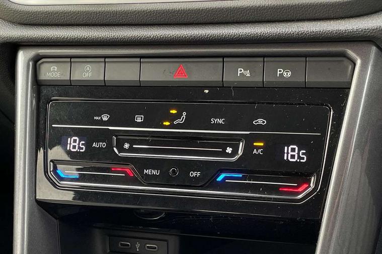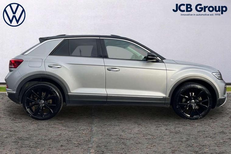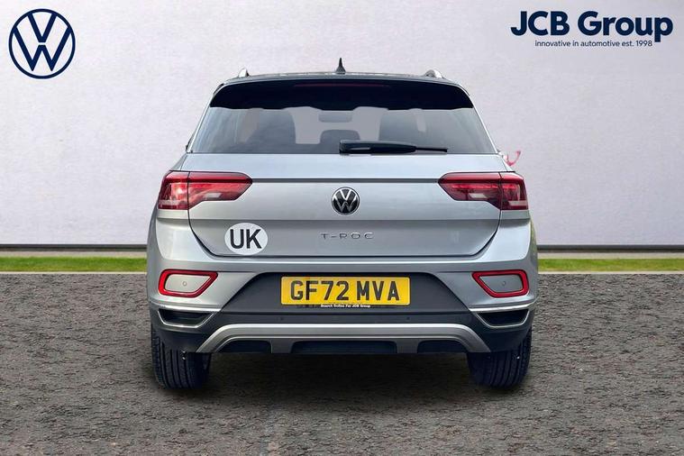 10.25" Digital cockpit pro, Bluetooth mobile phone interface, Driver alert system with fatigue detection, Driver tips and journey analysis, Emergency call service, Lane keeping system Lane Assist, Modified key software - reduce switch off time for key status change to Long no motion, Online services, Park assist including front and rear parking sensors, Service interval indicator, Tailgate/trunk lid release from outside, Think blue trainer driver tips and journey analysis, Warning sound and light for front seatbelts unfastened, Wireless app connect, Battery regeneration during braking, Start/stop function with battery regeneration, Diversity antenna for FM reception, Front and rear 6 speakers, Music playback - MP3, WMA and AAC files, Premium USB cable in choice of either Apple or Android smartphone compatibility, SD card slot, Simultaneous pairing of 2 compatible mobile devices, Title and cover art display, We Connect and We Connect Plus functionality, 3rd brake light, Auto dimming interior rear view mirror, Automatic hazard lights activation under emergency braking, Automatic headlight control with LED separate daytime running lights with coming/leaving home function, Body colour sports bumpers with silver metallic underbody fascia, Dynamic headlight range control with self adjusting whilst driving, Extended roof spoiler, Exterior mirrors aspherical on driver side, convex on front passenger side, External USB type C socket and charging sockets, Front windscreen wiper with intermittent wipe and 4 position delay, Heated rear window, LED Plus headlamps, LED rear combination lamps, LED rear number plate lights, LED tail lamp rear comination lamps, Light mode for poor weather, rain, fog or snow, Power windows with comfort operation and circuit breaker, Rain sensor, Rear exhaust tailpipe, Rear fog light on one side and reversing lights on both sides, Rear side wing doors, Rear wash/wipe with intermittent wipe setting, Remote electrically foldable door mirrors, puddle lights and reverse activated passenger's door mirror, 12V power socket in centre console, 3 rear head restraints, 3 seat bench in 2nd row, 4 load lashing points in luggage compartment, Air care climatronic air conditoning system with active combination filter and 2-zone temperature control, Chrome plated radiator grille inserts, air vent surrounds and light switch surrounds, Door and side trim panel with leatherette insert, Drawer under drivers seat, Front + rear carpet mats, Front centre armrest, Front comfort sports seats, Front cupholders x 2, Front footwell illumination, Instrument lighting, white adjustable panel illumination, Interior ambient lighting and surround lighting, Interior light delay, Isofix child seat preparation, Leather gearshift handle, LED interior light with switch off delay/dimmer and 2 front/rear LED reading lights, Load-through provision with cup holder when folded down ('Unsplit rear seat bench, split folding backrest, with centre armrest), Luggage compartment lighting, Non-folding front passenger seat backrest, Single front passenger seat, Storage compartment in left and right luggage area, Storage compartment in rear doors, Storage compartments in driver and front passenger doors, Sunvisors with illuminated vanity mirrors, Variable boot floor, height adjustable and removable, Driver assistance pack without proactive passenger protection - T-Roc, 3 point height adj front seatbelts + pretensioners, 3 point seatbelts in outer rear with ECE label, ABS, Child locks on rear doors, Driver and front passenger airbag with front passenger airbag deactivation, Driver and front passenger safety-optimised head restraints, Drivers seatbelt reminder, Electronic parking brake, Electronic Stability Control (ESC) inc EDL (Electronic Differential Lock) and ASR (Traction Control), Front and rear passengers curtain airbag system including front side airbags, Front assist with city emergency braking and pedestrian monitoring, Front seat side impact airbags, Predictive pedestrian protection, Rear disc brakes, Single tone horn, Tyre pressure loss indicator, Volkswagen roadside assistance, Alarm with interior protection, Anti-theft alarm system with interior monitoring, backup horn, and towing protection, Remote central locking with SAFELOCK, radio remote control with 2 remote control folding keys, Trims for alloy wheels,