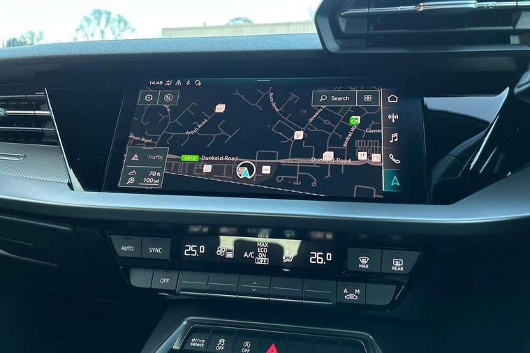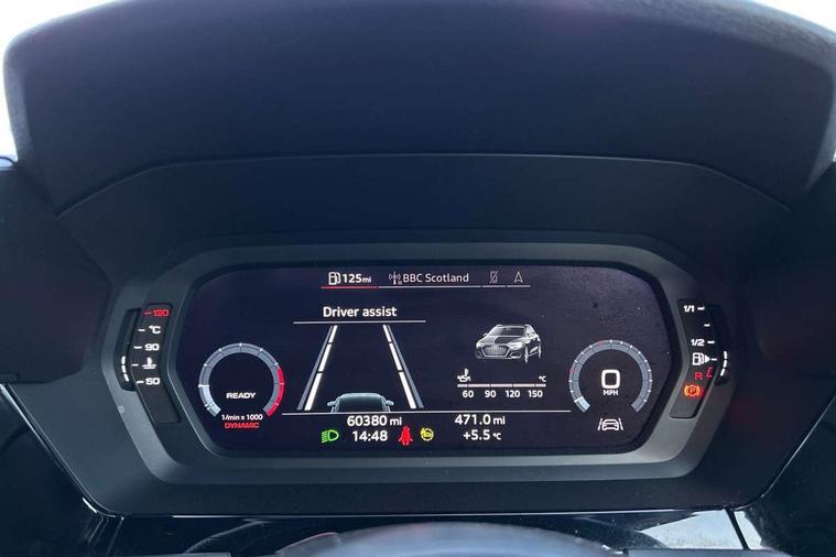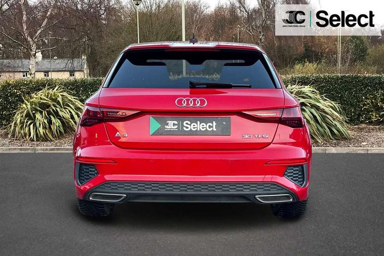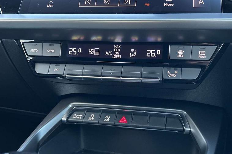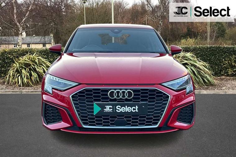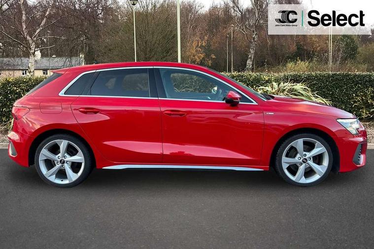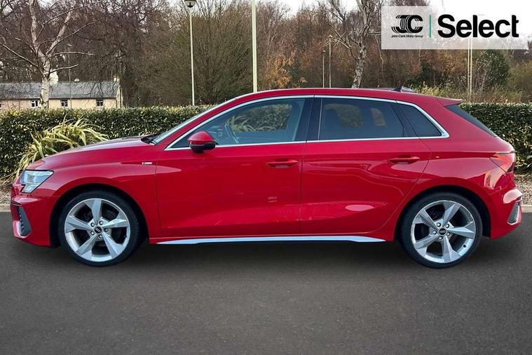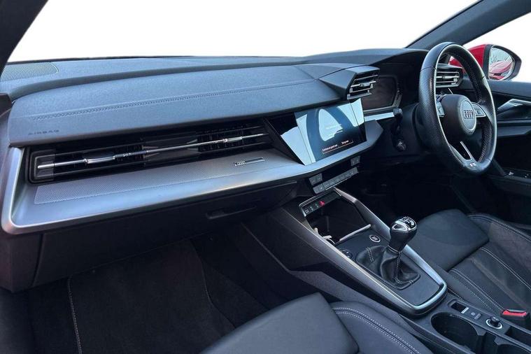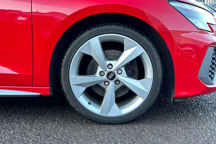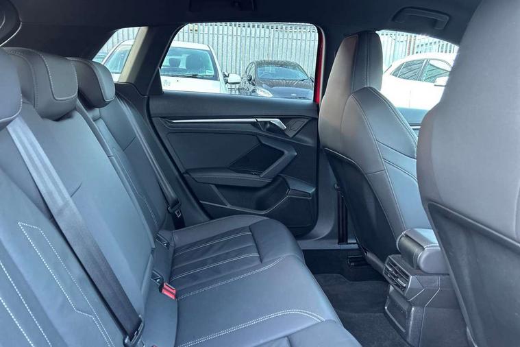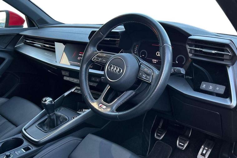 Audi connect emergency call and service, Audi drive select (Auto, Comfort, Dynamic and Individual), Audi smartphone interface, Audi Virtual Cockpit - 10.25" digital and colour instrument cluster, Automatic start/stop system with recuperation, Bluetooth interface, Collision avoidance assistant, Cruise control, Electromechanical power speed sensitive steering, Lane departure warning system, MMI Navigation Plus with high resolution 10.1" colour touch screen display, Rear parking sensors, Service indicator, Trip computer, Voice control system with natural language interaction, 2xUSB-C connection with data and charging functions, 6 passive loudspeakers, DAB Digital radio, Acoustic glass windscreen, Aluminium window trim, Auto dimming frameless rear view mirror, Body colour exterior mirrors, Electrically adjustable/heated/folding/auto dimming door mirrors with integrated LED indications + kerb view function for passenger side, Front electric windows, Illuminated aluminium inserts front door sills with S logo, LED daytime running lights, Light and rain sensors, Privacy glass - dark tinted rear window, rear door and side windows, Rear electric windows, Rear side air outlets in grained matt black, Rear wiper, S line bumpers, S roof spoiler, 12V socket and storage compartment in front centre console, 40/20/40 split folding rear seat bench with cupholder, Black cloth headlining, Dual zone electronic climate control, Front and rear centre armrest in leather, Front and rear headrests, Front/rear floor mats, Height and reach adjustable steering wheel, Interior lighting - glove compartment light and right hand side, Luggage compartment floor covering, Manual boot compartment lid, Manually adjustable front seats, Seat side bolsters, Stainless steel pedals and front footrest, Twin leather upholstery with front sports seats S embossed logo, Aluminium interior elements pack - A3 Sportback, S line styling pack - A3 Sportback, 3x3 point rear seat belts, Driver and front passenger airbag with passenger airbag deactivation, Electronic Stabilisation Control (ESC) including ABS, ASR and EDL, First aid kit with warning triangle and 2 safety vests, Front side airbags with head airbags and interaction airbag, Hill hold assist, Pre-sense front with pedestrian and cyclist detection, Seatbelt monitoring, Tyre pressure loss indicator, Anti theft alarm, Anti-theft wheel bolts, Electronically operated child lock, Immobiliser, Remote control central locking, Accent surfaces in the dashboard and centre console in platinum grey silk effect paint finish, Dark spectrum aluminium inlays,