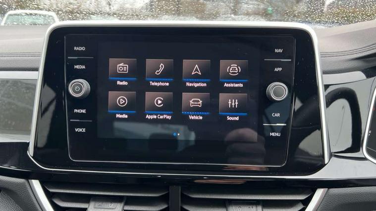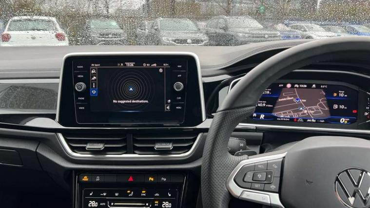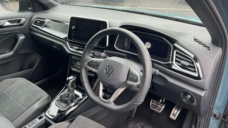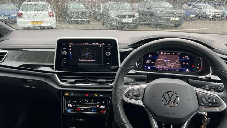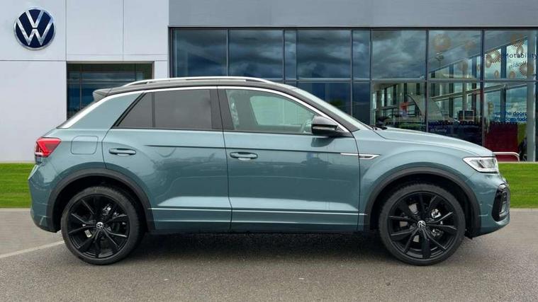 10.25" Digital cockpit pro, Advanced driver attention and drowsiness monitor, Emergency call service, Lane keeping system Lane Assist, Mobile phone interface, Modified key software - reduce switch off time for key status change to Long no motion, Online services, Park assist including front and rear parking sensors, Service interval indicator, Tailgate/trunk lid release from outside, Think blue trainer driver tips and journey analysis, Warning sound and light for front seatbelts unfastened, Wireless app connect, Battery regeneration during braking, Start/stop function with battery regeneration, DAB Digital radio, Diversity antenna for FM reception, Front and rear 6 speakers, Music playback - MP3, WMA and AAC files, Premium USB cable in choice of either Apple or Android smartphone compatibility, SD card slot, Simultaneous pairing of 2 compatible mobile devices, Title and cover art display, We Connect and We Connect Plus functionality, Auto dimming interior rear view mirror, Automatic hazard lights activation under emergency braking, Automatic headlight control with LED separate daytime running lights with coming/leaving home function, Body coloured exterior mirror housings and door handles, Electrically adjustable and heated door mirrors, Extended roof spoiler, Exterior mirrors aspherical on driver side, convex on front passenger side, External USB type C socket and charging sockets, Front windscreen wiper with intermittent wipe and 4 position delay, Heated rear window, LED 3rd brake light, LED rear combination lamps, LED rear number plate lights, Power windows with comfort operation and circuit breaker, Privacy glass for rear side windows and rear window, R-Line design body coloured bumpers, Rain sensor, Rear exhaust tailpipe, Rear fog light on one side and reversing lights on both sides, Rear side wing doors, Rear wash/wipe with intermittent wipe setting, Remote electrically foldable door mirrors, puddle lights and reverse activated passenger's door mirror, 12V power socket in centre console, 3 rear head restraints, 3 seat bench in 2nd row, 4 load lashing points in luggage compartment, Air care climatronic air conditoning system with active combination filter and 2-zone temperature control, Black roof lining, Chrome plated decorative trims, Chrome plated radiator grille inserts, air vent surrounds and light switch surrounds, Door and side trim panel with leatherette insert, Front + rear carpet mats, Front centre armrest, Front cupholders x 2, Front footwell illumination, Front reading light, Front scuff plates with R Line logo, Front seat back storage pockets, Glove compartment door with light, Instrument lighting, white adjustable panel illumination, Interior ambient lighting and surround lighting, Interior light delay, Isofix child seat preparation, Leather gearshift handle, Load-through provision with cup holder when folded down ('Unsplit rear seat bench, split folding backrest, with centre armrest), Luggage compartment lighting, Single front passenger seat, Stainless steel pedals, Storage compartment in left and right luggage area, Storage compartment in rear doors, Storage compartments in driver and front passenger doors, Sunvisors with illuminated vanity mirrors, Variable boot floor, height adjustable and removable, Driver assistance pack without proactive passenger protection - T-Roc, 3 point height adj front seatbelts + pretensioners, 3 point seatbelts in outer rear with ECE label, ABS, Child locks on rear doors, City emergency braking and pedestrian monitoring, Driver and front passenger airbag with front passenger airbag deactivation, Driver and front passenger safety-optimised head restraints, Drivers seatbelt reminder, Electronic parking brake, Electronic Stability Control (ESC) inc EDL (Electronic Differential Lock) and ASR (Traction Control), Front and rear passengers curtain airbag system including front side airbags, Hill start assist, Predictive pedestrian protection, Rear disc brakes, Two tone horn, Tyre pressure loss indicator, Volkswagen roadside assistance, Piano black decorative inserts in dashboard and front door trim panels, Trims for alloy wheels,