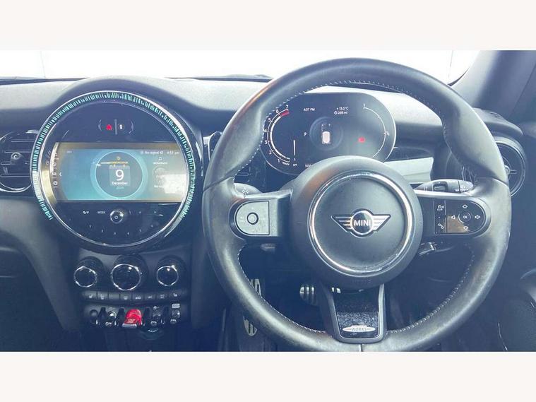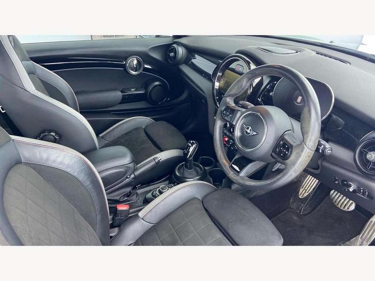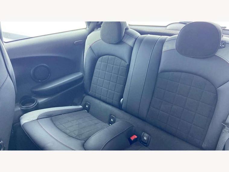 Apple CarPlay, Automatic start/stop function with brake energy recuperation, Compatible mobile phone bluetooth with audio streaming, Digital dashboard display, Electro-mechanical speed dependant steering assistance, Flexible car sharing preparation, Instrument cluster, Mini E-call, MINI TeleServices, On board computer, Service interval indicator, Double Vanos system, Fully variable valve control, High precision injection, Intelligent adaptive suspension, Performance Control, Steptronic transmission with double clutch, 4 speakers in front door trims and underneath front seats, 8.8" touchscreen with LED ring, FM tuner and DAB digital radio, 3rd brake light, Automatic headlight activation switch, Dynamic brake lights, Electric front windows, Heated rear window, Heated windscreen washer jets, JCW Aerodynamic kit - Front and rear bumpers with sporty JCW styling and part-painted side sills with MINI John Cooper Works door sill finishers, John Cooper Works rear spoiler, LED headlight with closed ring and daytime driving lights, Metal door sill strips with MINI imprint, Model logo Cooper on right of tailgate, Rain sensor window wipers, Rear fog lights, Rear LED lights with union jack design, Rear window wiper, Side scuttle panel with integrated indicator, Sun/heat protection glass, White indicator lenses, 12V Accessory socket in centre console, 2 seat bench in 2nd row, 4 lashing eyes in luggage compartment, 60/40 split folding rear seat, Anthracite headliner including grab handles and clothes hooks, Carbon black colour line - Knee roll and door armrest, Chrome interior highlights, Cupholders, Front and rear isofix with front passenger airbag deactivation, Front floor mats in velour, Glove compartment, Height and length steering column adjustment, Integrated headrests, adjustable thigh support for seats, Interior lighting with 12 different colours across the dashboard, underneath door bezel with illuminated laser-engraved design on central display, Leatherette gearshift lever and handbrake gaiters, LED reading lights, vanity mirror lights, front foot well light and spotlight on front seats, Mechanical seat adjustment - forward/back & backrest for front seats and driver seat height adjust, Multifunction steering wheel, Passenger seat height adjuster, Single front passenger seat, Storage compartments in doors, Sunvisors with vanity mirrors, Walknappa leather steering wheel with grey seam and John Cooper Works badge on Piano Black lower steering wheel spoke, Driving assistant pack - Mini Hatchback, Piano black exterior pack - Mini Hatchback Cooper, Premium pack - Hatchback, 3 point seatbelts on all four seats, 6 Airbags - front, side, head and seat belt tensioners, Anti-lock braking system (ABS), DSC - Dynamic Stability Control, Front and rear disc brakes, Single tone fanfare horn, Tyre pressure monitoring system, Alarm system with tilt sensor, monitoring doors, bonnet interior and tailgate, Electronic vehicle immobiliser, Start/stop toggle with keyless go, Piano black interior trim, Tool kit,