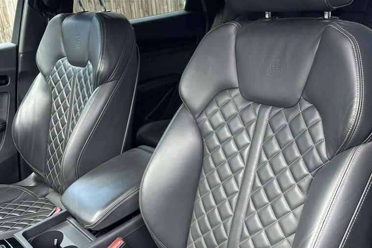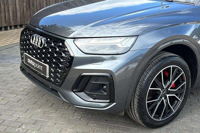 Audi connect safety and service (e-call), Audi connect with Amazon Alexa Integration, Audi drive select, Audi virtual cockpit plus with 12.3" screen and three different layout designs, Audi wireless smartphone interface, Automatic start-stop system with coasting functionality and efficiency programme, Bluetooth interface, Electro - mechanical power assisted steering, MMI navigation plus with 10.1" touch screen, Power tailgate, Reversing camera, Service interval indicator, Voice control system with Audi hotword activation "Hey Audi", Diesel particulate filter, Quattro on demand, S line sports suspension, DAB Digital radio, Acoustic windscreen, Audi beam with Audi rings logo, Audi matrix LED headlights with dynamic front and rear indicators, Audi rings at front and rear in black, Audi rings decal on rear doors, Auto dimming door mirrors, Auto dimming rear view mirror, Automatic headlights and windscreen wipers, Black door mirrors, Black roof rails, Body colour underbody protection, Chrome plated exhaust trims, Daytime running lights, Door sills in Selenite silver, Electric adjustable/heated/folding door mirrors, Front air inlet surrounds in aluminium, Front and rear electric windows, Headlight washers, High gloss black B pillar trims and triangular rear door trim, High level LED brake light, Rear chrome trim strip below lights, Rear privacy glass and rear side windows, Rear side wing doors, Rear spoiler, Rear wiper, Roof bars, Without model and engine badging at rear, 2 x USB charging port with aux input socket, 3 rear headrests, 4 way electric lumbar support for driver and front passenger, 40:20:40 split folding 3 rear bench seat in 2nd row with rear centre armrest, Black cloth headlining, Comfort front centre armrest, Contrast stitching on seats, steering wheel and gear lever gaiter, Deluxe 3 zone electronic climate control, Electrically adjustable front seats, Fine Nappa leather upholstery with diamond pattern contrast stitching + front sport seats with S embossed logo, Front head restraints, Front/rear floor mats, Gear lever in black leather, Heated front seats, Height/reach adjustable steering column, Illuminated door sill trims with S logo, ISOFIX child seat mounting and top tether, Rear seat bench plus, Removable luggage compartment floor, Single front passenger seat, Stainless steel pedals, Sunvisors with vanity mirrors, Trunk roller cover, Artificial leather pack - Q5, Black styling package - Q5 Edition 1, Extended LED Interior multi coloured Lighting Pack - Q5, 3 point seatbelts on all seats, 6 airbags - Driver, front passenger, curtain and side airbags, Electrically operated child locks on rear doors, Electromechanical parking brake, Electronic stabilisation control including ABS, ASR and EDL, Front and rear brake calipers painted in red, Front passenger airbag deactivation, Hill descent control, Hill hold assist, Multi collision brake assist, Pop-up bonnet for pedestrian protection, Pre sense city, Seat belt force limiter, Seatbelt monitoring, Tyre pressure warning, Warning triangle and first aid kit, Anti theft alarm, Anti-theft wheel bolts, Keyless Go access/ignition system, Remote central locking, Piano black finish inlay,