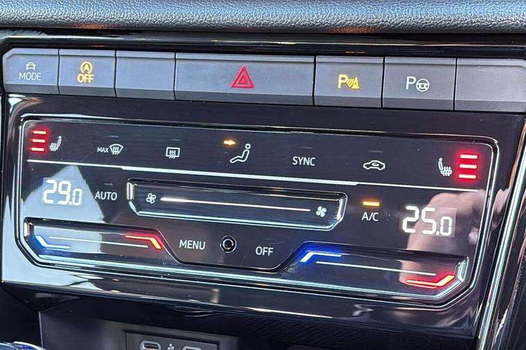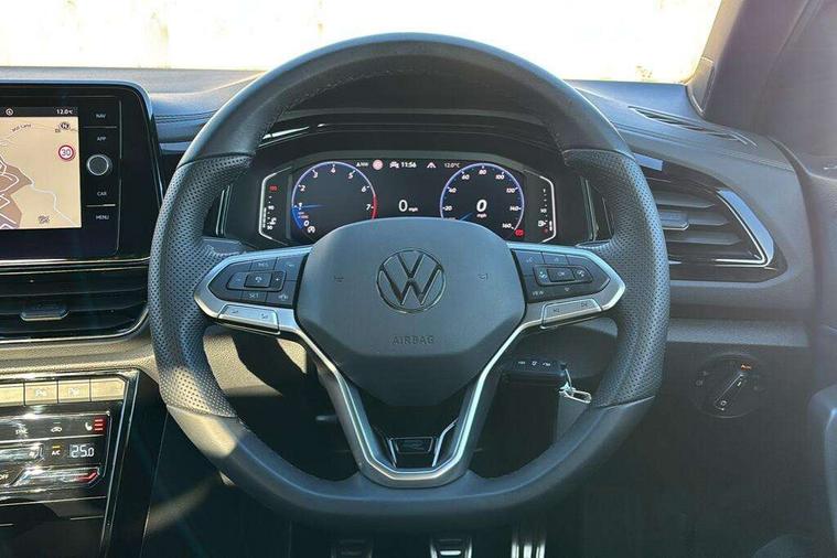 10.25" Digital cockpit pro, Advanced driver attention and drowsiness monitor, Emergency call service, Lane keeping system Lane Assist, Mobile phone interface, Modified key software - reduce switch off time for key status change to Long no motion, Online services, Park assist including front and rear parking sensors, Power assisted speed sensitive steering, Service interval indicator, Tailgate/trunk lid release from outside, Think blue trainer driver tips and journey analysis, Warning sound and light for front seatbelts unfastened, Wireless app connect, Battery regeneration during braking, Rear shock absorption chassis with increased ride height, Start/stop function with battery regeneration, DAB Digital radio, Diversity antenna for FM reception, Front and rear 6 speakers, Music playback - MP3, WMA and AAC files, Premium USB cable in choice of either Apple or Android smartphone compatibility, SD card slot, Simultaneous pairing of 2 compatible mobile devices, Title and cover art display, We Connect and We Connect Plus functionality, Auto dimming interior rear view mirror, Automatic hazard lights activation under emergency braking, Automatic headlight control with LED separate daytime running lights with coming/leaving home function, Dynamic cornering light, Electrically adjustable and heated door mirrors, Extended roof spoiler, Exterior mirrors aspherical on driver side, convex on front passenger side, External USB type C socket and charging sockets, Front windscreen wiper with intermittent wipe and 4 position delay, Heated rear window, Illuminated front grille, IQ LED matrix headlights, LED 3rd brake light, LED rear number plate lights, LED rear tail lights with dynamic turn signal, Light mode for poor weather, rain, fog or snow, Power windows with comfort operation and circuit breaker, R-Line design body coloured bumpers, Rain sensor, Rear exhaust tailpipe, Rear fog light on one side and reversing lights on both sides, Rear side wing doors, Rear wash/wipe with intermittent wipe setting, Remote electrically foldable door mirrors, puddle lights and reverse activated passenger's door mirror, 12V power socket in centre console, 3 rear head restraints, 3 seat bench in 2nd row, 4 load lashing points in luggage compartment, Air care climatronic air conditoning system with active combination filter and 2-zone temperature control, Artvelours cloth upholstery, Black roof lining, Chrome plated radiator grille inserts, air vent surrounds and light switch surrounds, Door and side trim panel with leatherette insert, Drawer under drivers seat, Driver seat height adjust, Driver's seat lumbar support, Front + rear carpet mats, Front centre armrest, Front comfort sports seats, Front cupholders x 2, Front footwell illumination, Front reading light, Front scuff plates with R Line logo, Front seat back storage pockets, Glove compartment door with light, Instrument lighting, white adjustable panel illumination, Interior ambient lighting and surround lighting, Interior light delay, Isofix child seat preparation, Leather gearshift handle, Load-through provision with cup holder when folded down ('Unsplit rear seat bench, split folding backrest, with centre armrest), Luggage compartment lighting, Non-folding front passenger seat backrest, Passenger seat height adjuster, Passenger seat lumbar support, Single front passenger seat, Stainless steel pedals, Storage compartment in left and right luggage area, Storage compartment in rear doors, Storage compartments in driver and front passenger doors, Sunvisors with illuminated vanity mirrors, Variable boot floor, height adjustable and removable, Winter pack without heated windscreen washer jets - T-Roc, 3 point height adj front seatbelts + pretensioners, 3 point seatbelts in outer rear with ECE label, ABS, Child locks on rear doors, City emergency braking and pedestrian monitoring, Driver and front passenger airbag with front passenger airbag deactivation, Driver and front passenger safety-optimised head restraints, Drivers seatbelt reminder, Electronic parking brake, Electronic Stability Control (ESC) inc EDL (Electronic Differential Lock) and ASR (Traction Control), Front and rear passengers curtain airbag system including front side airbags, Front disc brakes, Hill start assist, Predictive pedestrian protection, Rear disc brakes, Two tone horn, Tyre pressure loss indicator, Volkswagen roadside assistance, Tool kit, Trims for alloy wheels, Tyre mobility kit including compressor and sealing foam,