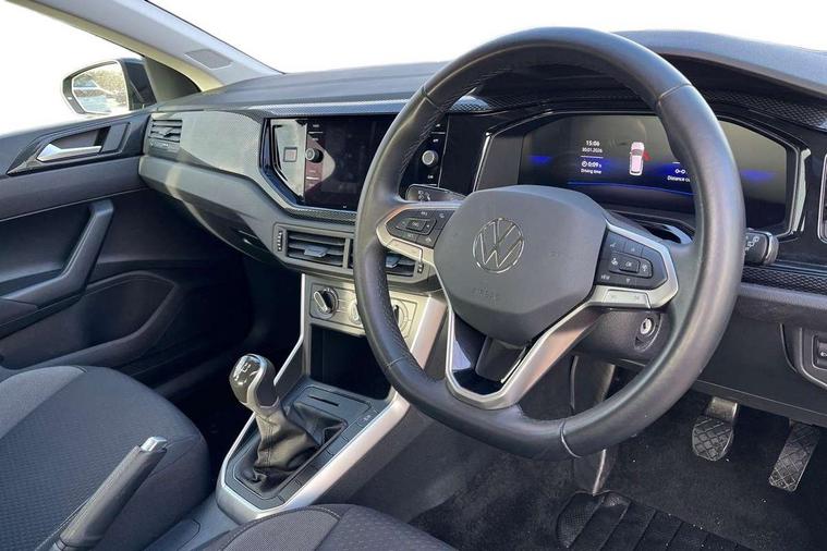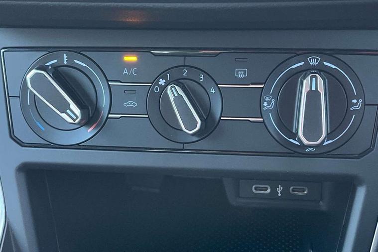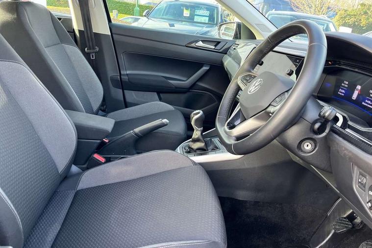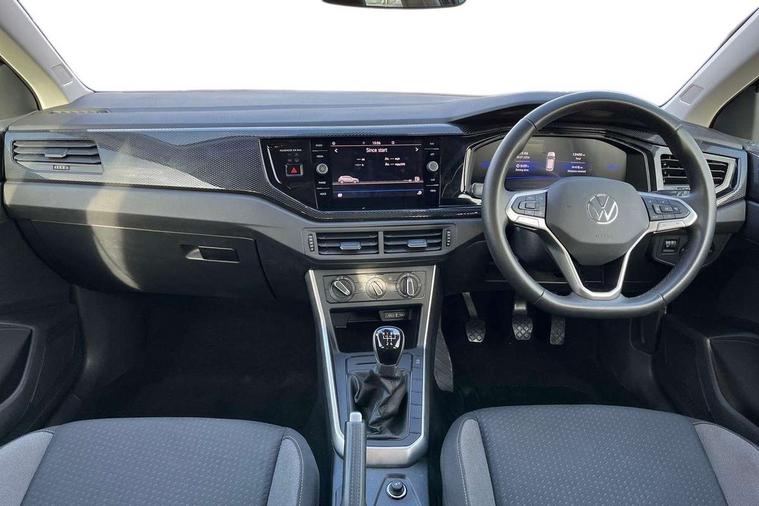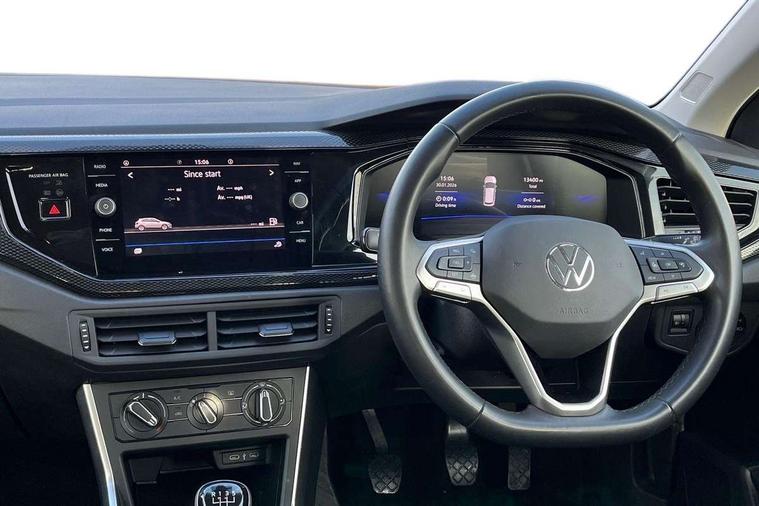 Advanced driver attention and drowsiness monitor, Bluetooth mobile phone interface, Cruise control + speed limiter, Dynamic road sign display, Emergency call service, Lane keeping system Lane Assist, Multifunction camera, Power assisted speed sensitive steering, Preparation for navigation system with media and internet package, Preparation for We connect and We connect plus, Speedo and rev counter, electronic odometer, trip, service interval display and exterior temperature gauge, Standard rear axle, Trip computer, Warning signal and warning light for front and rear seatbelts not fastened, Washer fluid level indicator, Wireless app connect, Front wheel drive, Rear shock absorpion, Start-stop system with battery regeneration (recuperation - energy recovery during braking), DAB Digital radio, Diversity antenna for FM reception, Front and rear 6 speakers, Automatic dimming interior rear view mirror, Automatic headlight control with LED separate daytime running lights with coming/leaving home function, Body colour bumpers with chrome inserts, Body colour door handles, Body colour door mirrors, Electric front windows, Engine badge deletion, Headlight range adjustment, Heat insulating and laminated safety glass windshield, Heat insulating darkened glass in side and rear windows, LED Headlights, LED rear combination lamps, Power folding adjustable/heated exterior mirrors and front passenger exterior mirror lowering function, Rain sensor, Rear electric windows, Rear fog light, Rear side wing doors, Rear windscreen washer and wiper with interval delay, Third brake light, 12V power socket in centre console, 2 front and 2 rear reading lights with switch off delay and dimmer, 2 USB-C ports in the front, 2 USB-C charging sockets on the center console in the rear, 3 rear head restraints, 60/40 split folding rear seat and rear seat bench not split, Ceramique roof lining, Chrome plated radiator grille inserts, air vent surrounds and light switch surrounds, Door and side trim panel, Driver and front passenger seat height adjustment, Driver/passenger sunvisors with illuminated vanity mirrors, Front centre armrest, Front seat backrest storage pockets, Front standard seats, Handbrake lever handle in leather, Hartley/Thomas cloth upholstery, Headliner in recycled material, Isofix child seat preparation easy-fit (for two outer rear seats, and front passenger seat) compatible with I-size, Leather trimmed gear knob, Luggage compartment cover, Luggage compartment lighting, Removable luggage compartment floor, Single front passenger seat, Standard climatic zones, Standard pedal cluster, Three spoke leather wrapped multifunction steering wheel, Light and vision pack - Polo, 3 point height adj front seatbelts + pretensioners, 3x3 point rear seatbelts, ABS, Driver and front passenger airbag with front passenger airbag deactivation, Drivers and front passengers safety optimised head restraints, ESC (Electronic stability control) + EDL (Electronic Differntial lock) and ASR (Traction control), Extended and predictive pedestrian/ cyclist protection, Front assist with autonomous emergency braking (for Adaptive Cruise Control ACC up to 130 mph), Front curtain and side airbags with center airbag, Front disc brakes, Hill hold control, Manual child lock in rear doors, Rear drum brakes, Single tone horn, Tyre pressure loss indicator, Alarm with interior protection, Anti-theft alarm system with interior monitoring, backup horn, and towing protection, Anti-theft wheel bolts, Electronic engine immobiliser, Lava stone black gloss/matt decorative inserts in dash and front door panels, Low rolling resistance tyres,