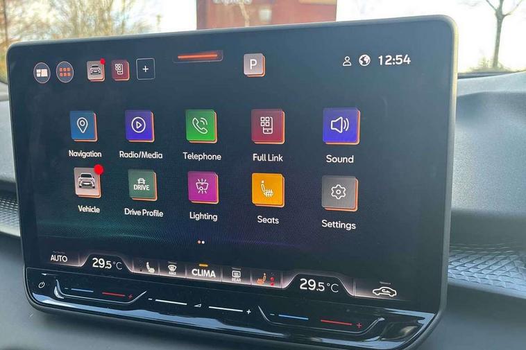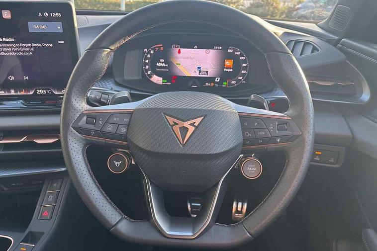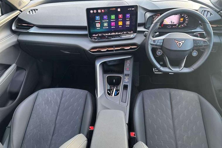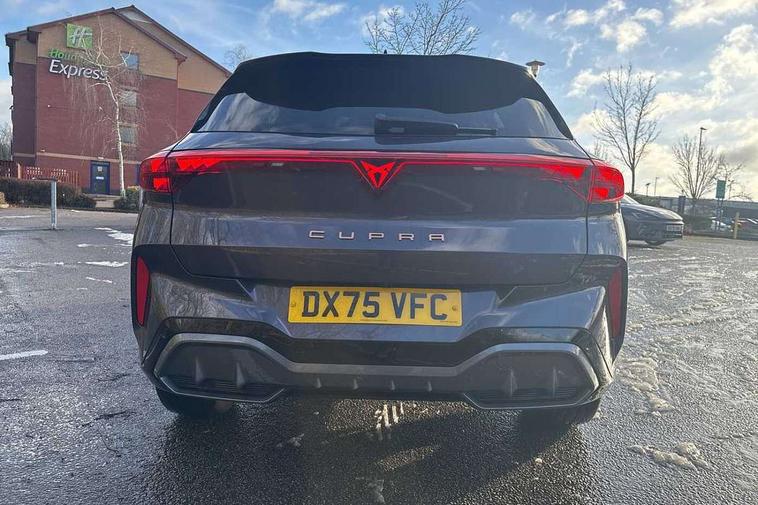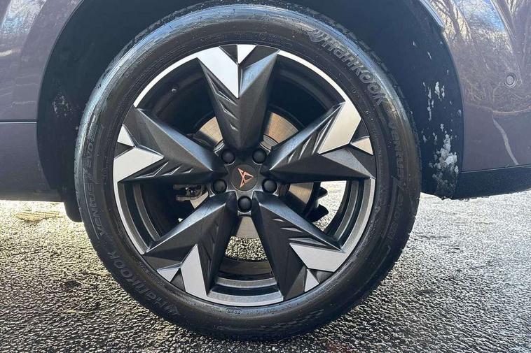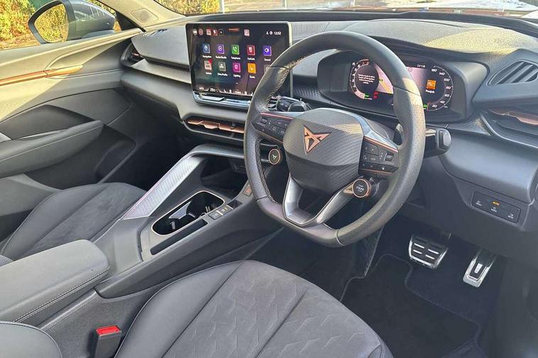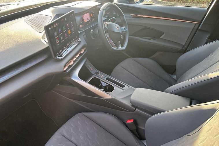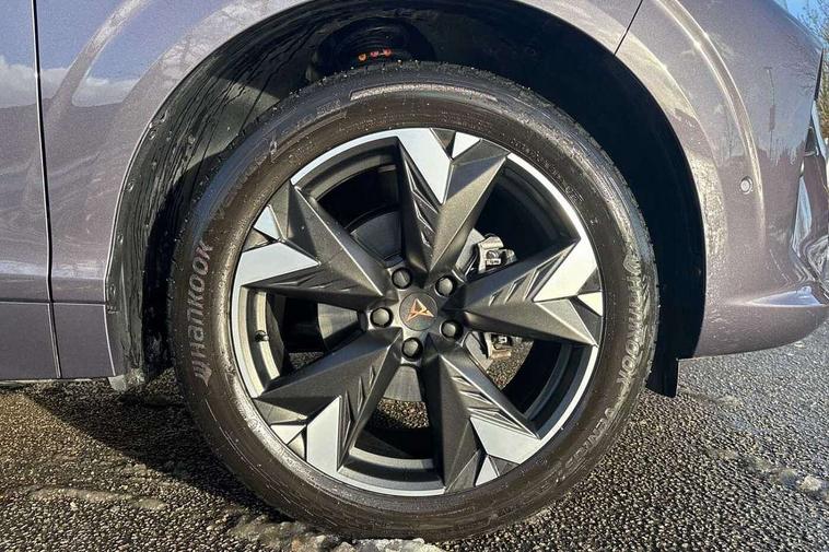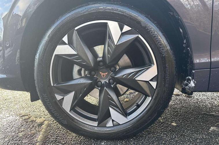 10.25" digital cockpit and configurable dashboard, Adaptive cruise control with follow-to-stop and speed limiter, Advanced driver alert system, Advanced lane assist with semi-automatic vehicle control in a medical emergency and traffic jam assist, Driving profile selection and conventional shock absorber, Dynamic road sign display, E-call, Electric tailgate with virtual pedal, Emergency steering support with turn assist, Four x USB Type C ports (2 in front and 2 in rear), Front and rear parking sensors, Front assist (Forward collision warning with automatic braking) with multifunction camera and front cross traffic assist, Head up Display, Intelligent park assist, Media system with Nav - 12.9" touch display, voice control, full link phone (wired/wireless), DAB and Steering wheel mounted controls, Rear traffic assist, Side and exit assist, Speed sensitive power steering, Start/stop system with regenerative braking, Top view camera (front camera, rear camera, 2 side cameras), Wireless phone charger, Auto dimming rear view mirror, Black roof rails, CUPRA 3D rear lights with ceremony & swiping indicator and illuminated logo, Dark tinted rear windows, Daytime running lights with automatic headlight control and Coming and Leaving home function, Door mirrors with memory function and lowing function on passenger mirror, Dynamic headlight range control, Electric front/rear windows, Electrically adjustable, heated and folding door mirrors, Front fog lamps with cornering function, Heat reflecting windscreen, High beam assist, LED headlamps with signature "CUPRA LED", Rain sensing wipers, Rear fog light on one side, back up light on both sides, Rear side wing doors, Rear wash/wipe, Third brake light, Welcome lights (within exterior mirror housing), 3 seat bench in 2nd row, Black roof lining, Cupra sports pedals, Dinamica cloth upholstery, Driver seat memory function, Electrically adjustable front seats including lumbar support, Front and rear head restraints, Front and rear reading lights X 4, Front centre armrest, Heated front seats, Heated leather wrapped multi function sports steering wheel with tiptronic, Illuminated interior front door sills, Isofix, Operating voltage 12V, Single front passenger seat, Smart wraparound interior lighting, Sunvisors with illuminated mirror, Three zone climate control with control panel in rear, Unsplit rear seat bench, split folding backrest, with centre armrest, Variable luggage/load compartment floor, 3 point seatbelts in front with pretensioner and electric height adjustment, 3 point seatbelts on all rear seats, Brake control system - ESC and brake booster, Child proof door locks, Driver and front passenger airbags, Electronic parking brake, Front and rear disc brakes, Front interaction airbag, Front passenger airbag deactivation switch, Front side airbags with curtain airbags, Pre-crash front and rear seat belt tensioner, window closure and hazard lights, Tyre pressure monitoring system, Visual and acoustic seat belt reminder, electric contact in front and rear, Anti theft alarm, Keyless locking and starting system with keyless access, Locking wheel bolts, Black decorative trims, Chrome interior detailing, 19" Spectrum exclusive machine alloy wheels, Tool kit,