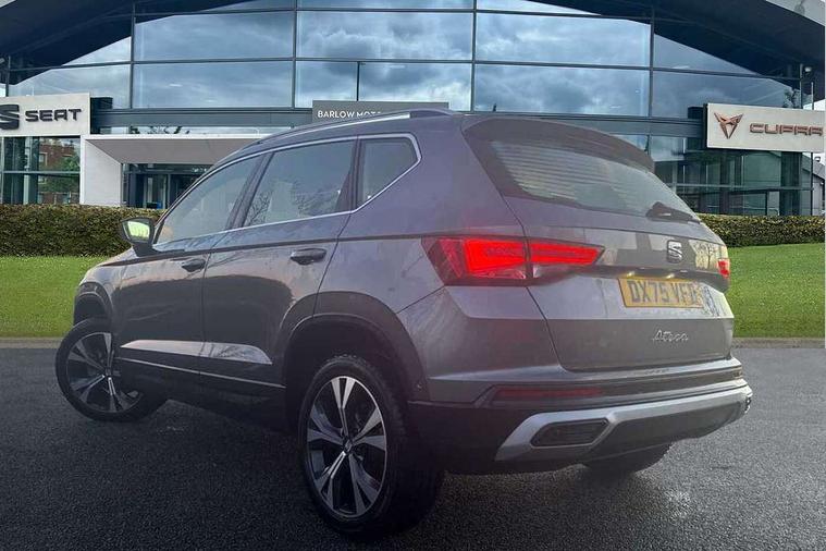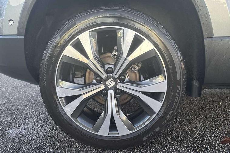 8" Digital cockpit, Bluetooth audio streaming with handsfree system, Cruise control system with speed limiter, E-call, Outside temperature gauge, PAS, Rear view camera, SEAT drive profile with driving experience button - Normal, Sport, Eco and Individual mode, gearshift, steering and throttle response, Self parking functionality (includes front and rear parking sensors), Start/stop system, Tailgate, Trip computer, wired and wireless full link smartphone integration, Wireless phone charger, Steering wheel mounted audio/phone controls, Black side window trim, Black wheel arch surrounds, Body colour bumpers, Chrome front grille frame, Chrome roof rails, Daytime running lights, Door mirrors with welcome light silhouette, Dynamic headlight range control with self adjusting whilst driving, Electric adjustable/heated/folding door mirrors, Front and rear electric windows, LED 3rd brake light, LED headlamps with lens and LED front fog lamps with cornering function, LED rear tail lights with dynamic indicators, Rear exhaust tailpipe, Rear fog lights, Rear side wing doors, Rear wash/wipe, Variable front intermittent wipers, 12V socket in front, 3 seat bench in 2nd row, 60/40 split folding rear seat, Cloth upholstery with front comfort seats, Drawer under right front seat, Dual zone climate control, Front and rear head restraints, Front centre armrest, Front seat back storage pockets, Height adjustable driver and passenger seat with lumbar adjustment, ISOFIX points in outer rear seats with top tether anchorage points, Leather sports steering wheel and gear knob, Rear armrest and easy back seat release mechanism from boot, Single front passenger seat, Steering wheel mounted gearshift paddles, Convenience pack - Ateca, Interior lighting pack - Ateca, Navigation system pack with DAB - Ateca, Safety and driving pack with attention and drowsiness assist - Ateca, 3x3 point rear seatbelts, ABS, Traction control system (TCS), Electronic stability control (ESC) and Electronic differential lock system (XDS), Airbags - Driver and front passenger airbag with deactivation, front side, two curtain and driver's knee airbags, Electric parking brake with auto hold function, Front and rear seatbelt reminder, Front assist with autonomous emergency braking, Hill hold control, Manual rear child locks, Single tone horn, Tyre pressure monitoring system, Alarm, Keyless entry, Locking wheel bolts, Remote central locking, Chrome interior detailing, 18" Performance machined alloy wheels 36/2 in nuclear grey, Tool kit,