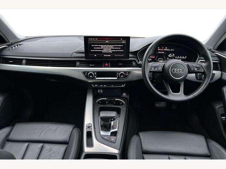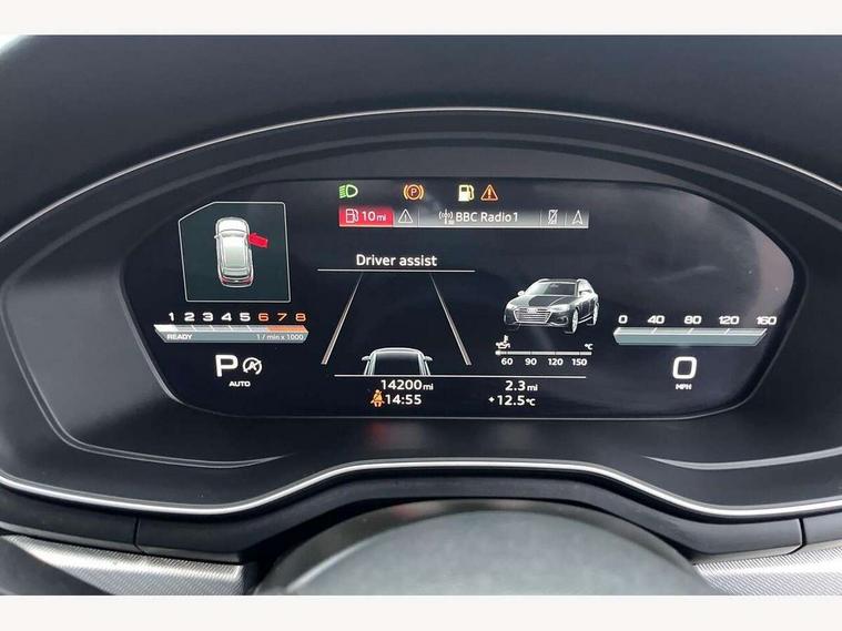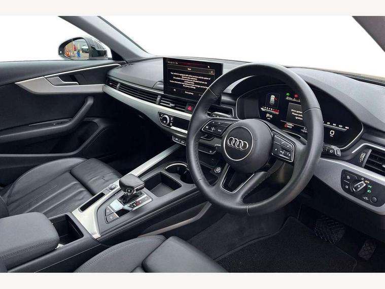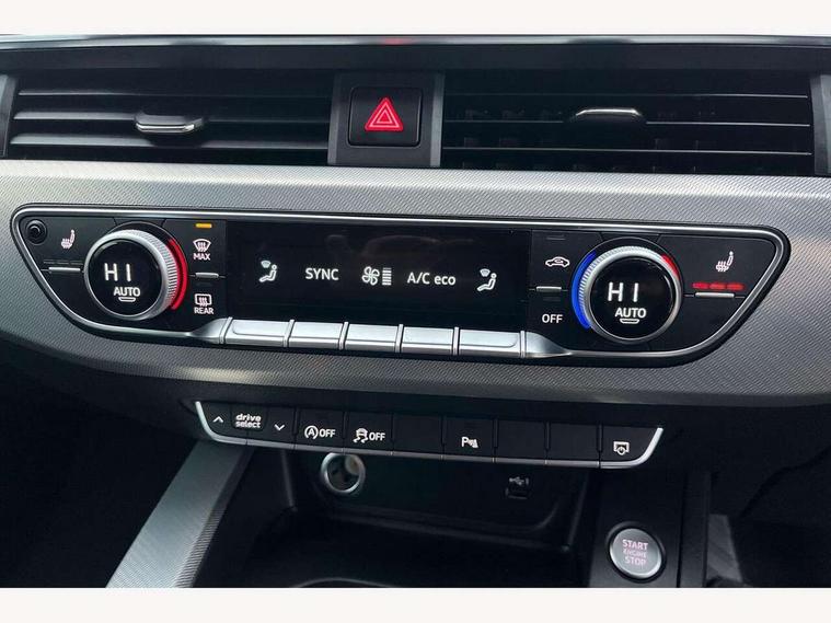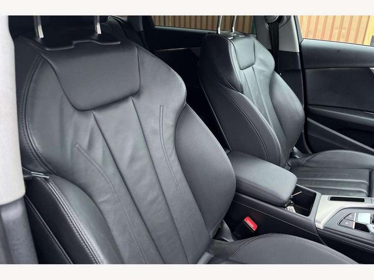 Audi connect safety and service (e-call), Audi drive select, Audi smartphone interface, Audi virtual cockpit, Automatic start-stop system with coasting functionality and efficiency programme, Bluetooth interface, Camera based traffic sign recognition, Electromechanical power steering, Email, calendar and text messages displayed via MMI, Front and rear parking sensors, Lane departure warning, MMI Navigation plus with MMI touch includes 10.1" high resolution colour MMI display, 3D map, Power operated tailgate, Rear view camera, Voice control system, 54 litre fuel tank, Comfort dynamic suspension, 2 USB charging ports, 8 passive loudspeakers, DAB digital radio reception, Aluminium roof rails, Auto dimming rear view mirror, Body colour door handles, Body colour side sill trim, Body coloured door mirrors, Electric adjustable/heated/folding door mirrors with auto dimming, LED headlights and rear lights with LED daytime running lights, LED third brake light, Matt aluminium silver tailpipe trim, Rain and light sensors, Rear side wing doors, Rear wiper, S Line roof edge spoiler, Sport front and rear bumpers with side skirts, Variable intermittent front wash/wipe, Windscreen with acoustic glazing, 3 spoke high multi-function leather sport steering wheel with paddle shift and height and reach adjustable, 4 way electric lumbar support for driver and front passenger, 40/20/40 split folding 3 rear seat bench in 3 parts with rear centre armrest, Black carpets, Contrast stitching on seats, steering wheel and gear lever gaiter, Deluxe 3 zone electronic climate control, Door sill trims with aluminium inlay, Electric load area cover, Front and rear head restraints, Front centre armrest, Heated front seats, ISOFIX child seat mounting and top tether, Manual seat adjustment, Single front passenger seat, Twin leather upholstery + front sports seats, High gloss package - A4, LED Interior light pack - A4/S4, 3 rear seatbelts, 6 airbags - Driver, front passenger, curtain and side windows, Attention and drowsiness assist, Electronic Stabilisation Control (ESC) including ABS, ASR and EDL, Hill hold assist, Multi collision brake assist, Pop-up bonnet for pedestrian protection, Pre sense city, Rear door child safety locks, Seatbelt monitoring, Warning triangle and first aid kit, Anti theft alarm, Anti theft wheel bolts, Central locking, Keyless Go, Aluminium ellipse silver inlays, Tool kit, Tyre repair kit,