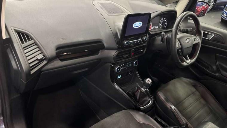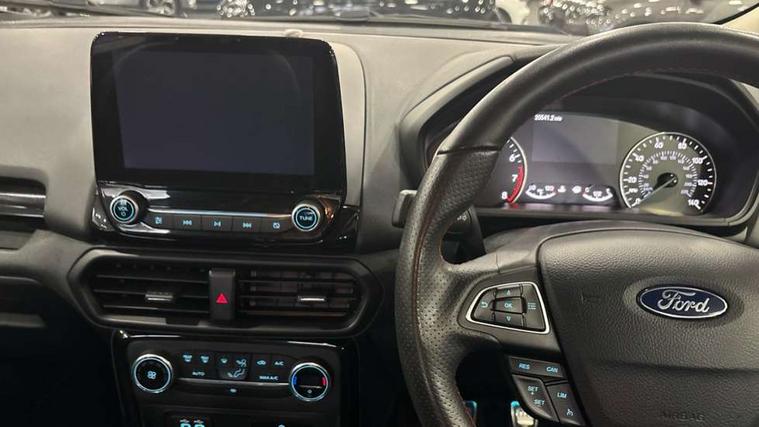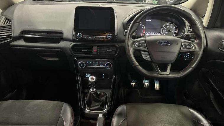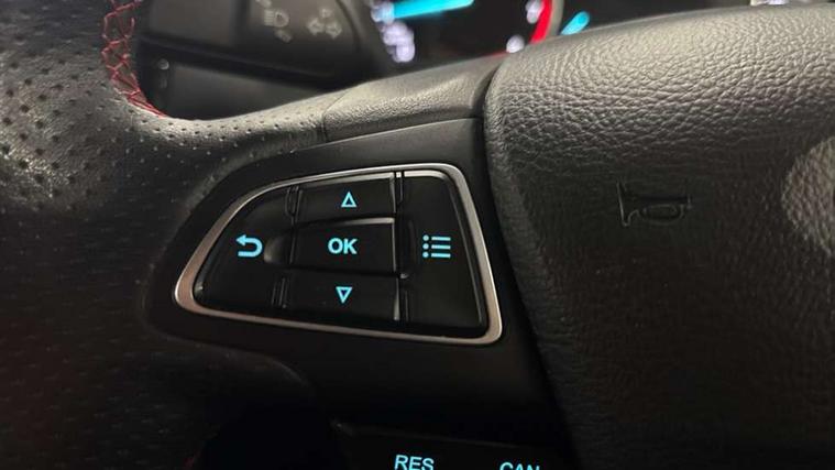 Cruise control with Intelligent speed assist, Easy fuel capless refuelling system, Ford pass connect embedded modem, PAS, Rear parking sensors and rear view camera, SYNC 3 nav system with DAB radio, 8" screen, voice control, emergency assistance, Apple car play/Android auto, 2x USB, Ford pass connect, Traffic sign recognition, Trip computer, Sports suspension, 7 speakers, Steering wheel mounted audio controls, 'Quickclear' heated windscreen/heated washer jets, Auto dimming rear view mirror, Automatic headlights, Black roof rails, Body colour door handles, Body coloured bumpers, Electrically adjustable and heated door mirrors, Front door threshold plates with ST-Line logo, Front fog lights, Headlight levelling control, Large rear spoiler, Power front and rear windows with global opening/closing, Rain sensing front wipers, Rear wiper, ST-Line body styling kit, ST-Line front grille, 12V socket in front and rear, 60/40 split rear seats, 7 shade adjustable ambient lighting, Centre console with sliding front armrest, Cooled glovebox, Courtesy lights with map reading light, Driver seat height/lumbar adjust, Driver's side glovebox, Driver/passenger sunvisors and lidded vanity mirrors, EATC - Electronic Auto Temperature control, Folding grab handles, Front head restraints, Front seat back map pockets, Front/rear floor mats, Illuminated glovebox, Illuminated luggage compartment, Isofix system on outer rear seats, Luggage compartment carpet, Overhead console with sunglasses holder, Partial leather upholstery, Rake adjustable rear seats, Reach + rake adjustable steering column, Rear headrests, Sensico trimmed steering wheel, handbrake and gearshift gaiter with red stitching, Stainless steel sports pedals, Storage drawers under front seats, Tie down hooks, Variable boot floor, 3x3 point rear seatbelts, ABS, Autonomous emergency braking, Child locks on rear doors, Curtain airbags, Driver airbag, Drivers knee airbag, Electronic Stability Programme with hill launch assist, Front passenger airbag deactivation, Front side airbags, Passenger airbag, Pre collision assist system, Seatbelt reminder for driver and front passenger, Traction control, Tyre pressure monitoring system, Immobiliser, MyKey system, Remote central locking, Thatcham 1 volume sensing alarm, Low rolling resistance tyres, Tyre inflation kit,