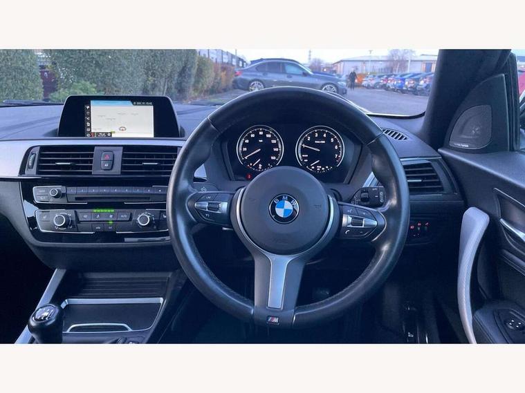 Automatic start/stop system, BMW Online services, BMW remote services, BMW Teleservices, Brake force display, Brake pad wear indicator in front and rear, Check Control warning system for monitoring of lights and door/luggage compartment open warning, Cruise control with brake assist, Eco pro mode, Instrument cluster with speedometer with miles per hour read out, tachometer and fuel gauge, Lights on warning by audio warning signal when ignition is switched off, Oil temperature display via on board computer in instrument cluster, On board computer - average speed+fuel consumption, service interval, clock/date, odometer/trip meter, outside temperature display and ice warning, On board diagnostics, Optimum shift indicator, Personal Profile, Real time traffic information, Servotronic PAS, Speed limiter, Battery age recognition function, Drive Performance Control, BMW professional radio with CD player, DAB Digital radio, Harman/Kardon loudspeaker system, Body colour door handles, Body colour front and rear bumpers, Body colour mirror caps, Body colour roof mouldings, Clear lenses direction indicator lights, Dark chrome exhaust tailpipe, Darkened rear lights with LED light bars, Daytime driving lights, Direction indicator side lights in exterior mirrors, Dynamic brake lights, Electrically adjustable heated door mirrors and washer jets, Follow me home headlights, Front and rear bumper system with replaceable deformation elements, Front electric windows with open and close fingertip control, anti trap facility and comfort closing, Green tinted heat protection glazing, Headlight beam throw control, Heated windscreen washer jets, High gloss black kidney grille with black slats, High level third brake light, Lightweight engineering, M aerodynamic bodystyling, Nearside reverse light in rear light cluster, Offside rear fog lights, Rain sensor including auto headlights activation, Rear window aerial, Rear window wiper, Shark fin antenna, Sun protection glass, Visible VIN plate, Welcome lighting, 12V power socket in centre console, 12V power socket in passenger footwell, 60/40 split folding rear seat, Ambient lighting - switchable BMW classic orange/ cold white LED, Anthracite headlining, Anthracite Velour front floor mats, Conditioned based service, Door sill finishers with illuminated M designation, Front and rear side armrest integrated into door trim, Front folding sliding armrest with storage compartment, Front head restraints, Front sports seats with electric side bolster adjustment, Front storage compartment in centre console and in door trim, Front/rear courtesy lights with soft on/off dimming, Gearshift lever with M designation, Glove box handle with chrome surround, Glovebox, Interior light in front centre interior mirrors and rear centre auto interior light activation when door is opened when ignition switched off, Isofix child seat for two outer rear seats, Leather gear knob and handbrake grip, Luggage compartment access via BMW roundel, Luggage compartment lighting, M sports multi function leather steering wheel, Manually adjustable steering column, Multi-function controls for steering wheel, Rear folding head restraints, Sunvisors with vanity mirrors and ticket pocket, Two cupholders with sliding cover and inlay mat, Two grab handles integrated in roof lining, Two sills lashing eyes in the luggage compartment, 3 point seatbelts on all seats, front pyrotechnic belt tensioners, stopper and belt force limiters, rear coded belt buckles, Active differential brake (ADB), electronic differential lock in DSC-OFF mode, Airbags - Front driver and passenger, front and rear head, front side, curtain head protection, Anti lock braking system (ABS) with brake assist, Automatic Stability Control (ASC), Battery safety cut-off, BMW emergency call, Brake drying, Brake energy regeneration, Braking readiness, Cornering brake control (CBC), Crash sensor activating central locking release, hazard warning lights, Driver and front passenger seat belt security check, DSC+, Dynamic brake control, Dynamic Traction Control - DTC, Front passenger manual airbag deactivation, Front ventilated brake disc, Hill start assist, M Sport braking system, Rear brake discs, Rear child proof door locks, Side impact protection, Twin horns, Tyre pressure monitoring system, Warning triangle and first aid kit, Automatic drive away locking facility, Central locking switch for all doors, fuel filler cap and luggage compartment, Locking wheel bolts, Remote central locking with two Integrate key, one button for opening and closing all lock, open and close window, button for open luggage compartment, Remote control integrated key with blue inset, Start/stop button with comfort go keyless engine start and auto start stop deactivation button, Thatcham Cat.1 alarm and immobiliser, Reduced rolling resistance tyres, Run flat tyres,