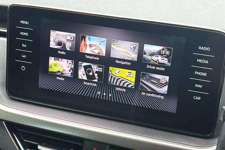 Amundsen satellite navigation with 9.2" glass colour touchscreen with virtual cockpit, web radio, Android Auto, Bluetooth system, Colour multifunction trip computer, Front assist system, PAS, Rain and light assist with auto dimming rear view mirror, Rear view camera, Speed limiter, Wireless SmartLink for Apple Car Play, 2 USB - C ports, 8 loudspeakers, DAB Digital radio, Automatic headlamp activation with Coming home and Leaving home feature, Body colour door mirrors and handles, Chrome grille surround, Electric folding door mirrors, Electrically adjustable and heated door mirrors, Front and rear electric windows, Front fog lights with cornering function, Privacy glass, Tinted windows, 12V Accessory socket in centre console, Chrome inner door handles, Chrome on gear and handbrake lever, Chrome strip on the dash and door panel, Dual zone climate control, Front head restraints, Glasses storage in roof liner, Instrument cluster with chrome painted decor ring, ISOFIX for rear passenger seat, Leather gearknob and handbrake lever, Manual lumbar support for front seats, Net in centre console, Reading lights for driver and front passenger, Sun visor with make up mirror for front passenger, Textile floor mats, Third rear headrest, Umbrella, 3x3 point rear seatbelts, Curtain airbags, Emergency call and proactive services, Front head and side airbags, Hill hold control, One tone horn, Passenger airbag switch off function, Seat belt reminder for all seats, Alarm, Anti-theft wheel bolts, Keyless entry with start/stop button, Remote central locking with 2 remote folding keys, SAFE function for remote central locking, Latice grey decorative insert with copper hot stamping, Temporary space saver wheel,