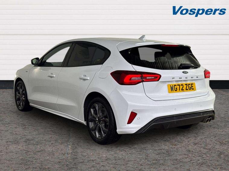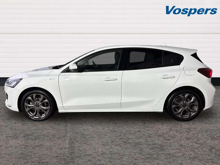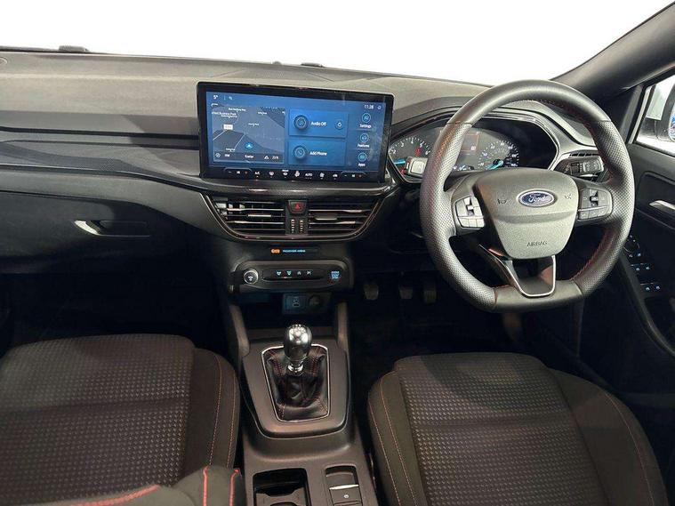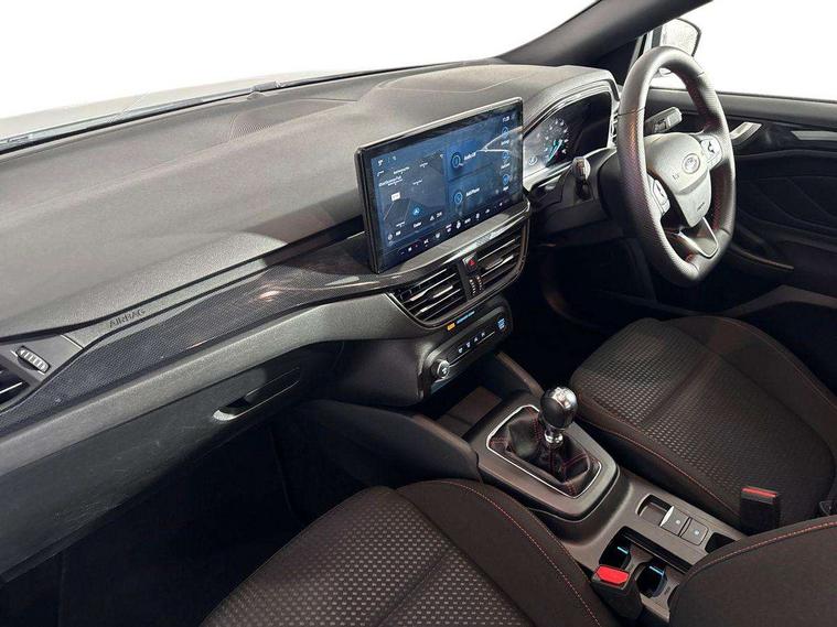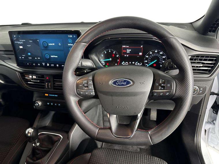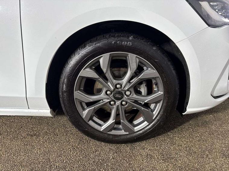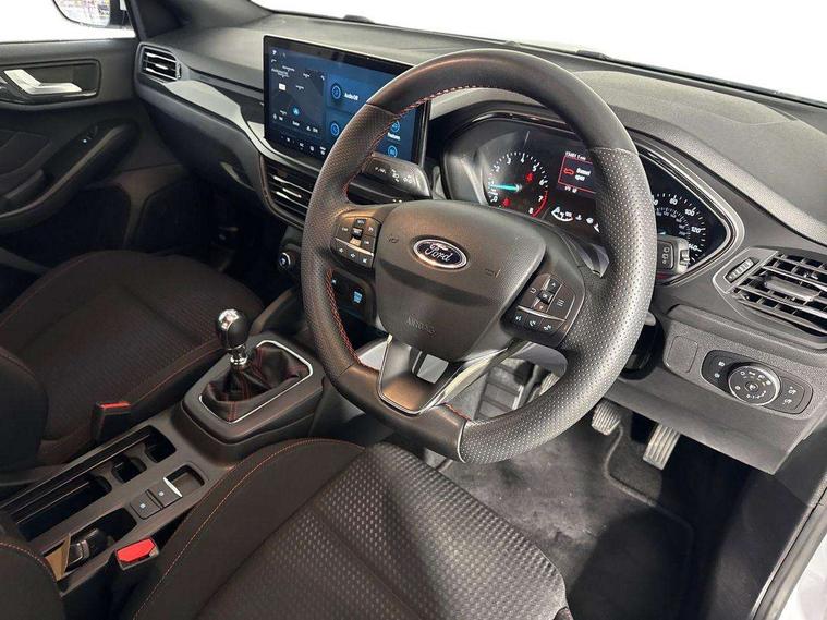 4.2" Colour TFT Ice blue illumination analogue cluster with trip computer, Bluetooth system, Digital clock, Easy fuel capless refuelling system, Eco mode, Ford SYNC 4 Navigation with 13.2'' touchscreen, DAB radio, Emergency Assistance, Apple Carplay & Android Auto, 6 speakers & FordPass Connect, Lane keeping system - lane keeping alert and lane keeping aid, PAS, Rev counter, Selectable drive mode, Service interval indicator, Sports tuned suspension, 2 USB ports, Auto headlamps (on/off), Body coloured door handles, Electrically operated front and rear windows with one touch opening and closing, Electrically operated heated power fold door mirrors with puddle lamp with side indicators, Front variable intermittent wipers with electric wash, Full fixed LED headlamps, Heated rear window, LED daytime running lamp, LED rear lamps, LED third brake light, Polished twin tailpipe, Privacy glass, Quickclear heated windscreen, Rain sensor, Rear side wing doors, Tailgate wash/wipe, Unique ST-Line grille, full bodystyling kit, and large body coloured rear spoiler, 3 rear headrests, 3 seat bench in 2nd row, Cloth upholstery, Dual zone electronic air temperature control, Height adjustable front headrests, Isofix child seat preparation, Reach + rake adjustable steering column, Single front passenger seat, 3x3 point rear seatbelts, ABS+Electronic Brake force Distribution, Auto hold function, Driver airbag, EDL traction control, Electronic parking brake, Electronic stability control, Front and rear seatbelt reminder, Front inertia reel height adjustable seatbelts with pre-tensioners, Front passenger airbag, Front side airbags, Passenger airbag deactivate switch, Post collision braking, Pre collision assist with autonomous emergency braking and pedestrian/cyclist detection, Remote/power child rear door locks, Side curtain airbags, Three rear inertia reel lap/diagonal seatbelts, Tyre pressure monitoring system, Keyless entry and keyless start, MyKey system, Remote central locking & engine immobiliser, Thatcham alarm with power door dead locks, 17" 5 spoke Rock mettalic finish alloy wheels with mini spare wheel,