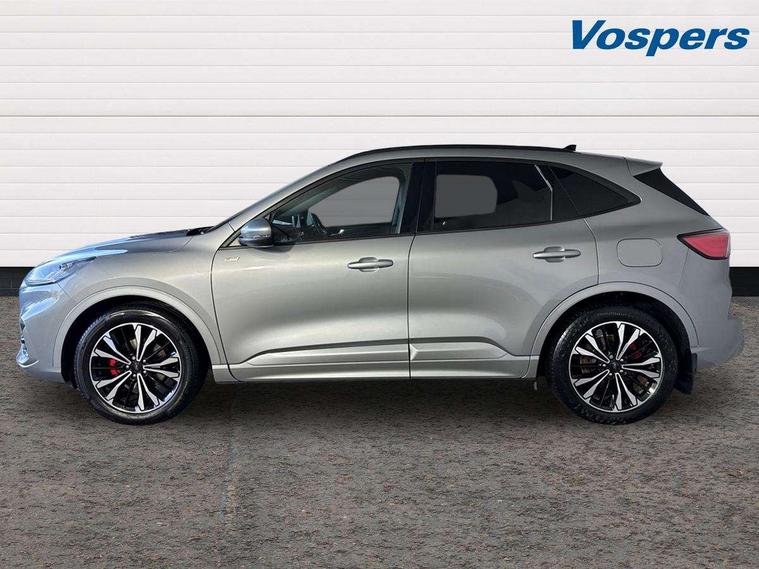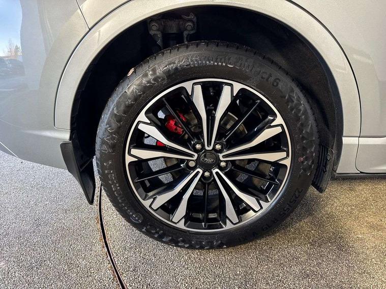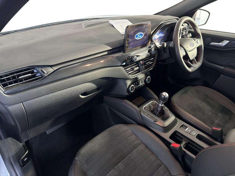 12.3" digital colour instrument cluster, Ford easy fuel, Ford SYNC 3 with 8" TFT LCD touchscreen, App Link, andriod auto/apple carPlay, emergency assistance and navigation with Ford pass connect, Front and rear parking sensors, Hands free power tailgate, Lane keeping aid with lane departure warning, Power assist steering, Rear view camera, Selectable drive modes, Service interval indicator, Sports suspension, Twist beam rear suspension, B&O premium audio system with 10 speakers and subwoofer, 2 USB ports, DAB radio/CD, Auto headlamps with high and low beam, Black roof rails, Day/night rear view mirror, Front LED fog lamps, Large rear spoiler, LED daytime running lights, LED rear lights, Power folding heated door mirrors with puddle lights, Power front/rear windows with global close, Power opening panoramic roof, Privacy glass, Quickclear heated windscreen, Rear side wing doors, Rear wiper, ST Line body styling kit with unique front and rear fascia and bumper, rear painted diffuser, front painted skid plates, dark mesh upper grille, ST Line front scuff plates, Third brake light, Twin exhausts, 10 way power adjustable drivers seat, 2nd row sliding seats with 60:40 split, 8 way manual passenger seat including lumbar support and height adjust, Alloy pedals, Centre console with electronic parking brake, Dark headlining and pillars, Electronic automatic temperature control (EATC), Flat bottomed leather steering wheel in sensico with red stitching, Front and rear head restraints, Heated passenger and driver seats, Heated rear seats, Heated steering wheel, Partial premium touch sensico leather upholstery with black cloth inserts and red stitching, Rear charging point, Single front passenger seat, Sports seats, ST Line front and rear floor mats, ST Line gear knob, 3x3 point rear seatbelts, Airbags - front driver/passenger, front and rear curtain, Drivers knee airbag, Electronic stability control (ESC) and ABS, Ford MyKey Gen 2 safety system, Manual child proof rear door locks, Post collision braking, Pre collision assist with autonomous emergency braking, Rear seat Occupancy alert, Red brake calipers, Tyre pressure monitoring system, Engine immobiliser, Keyless entry and Ford power start button (Keyless start), Locking wheel nuts, Remote powered central double locking doors, Thatcham category 1 alarm,