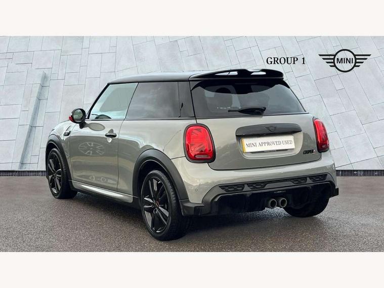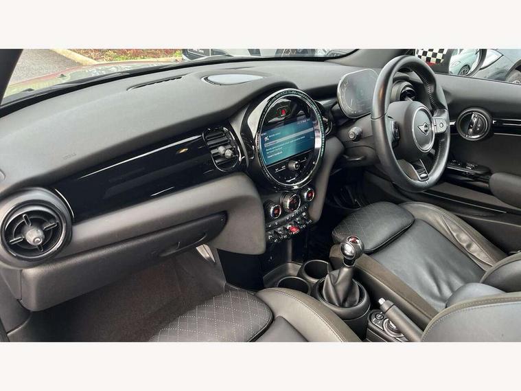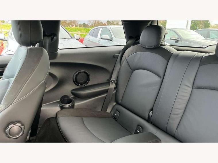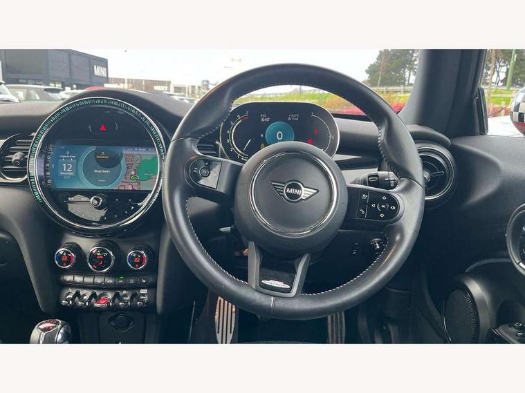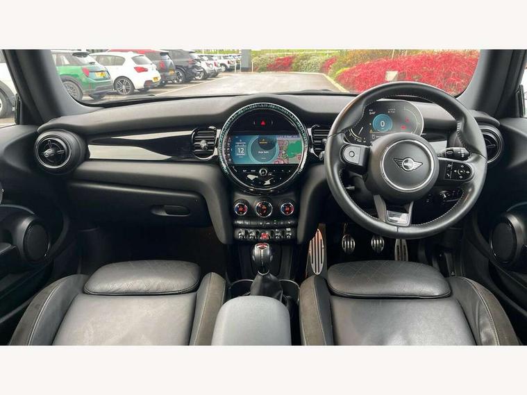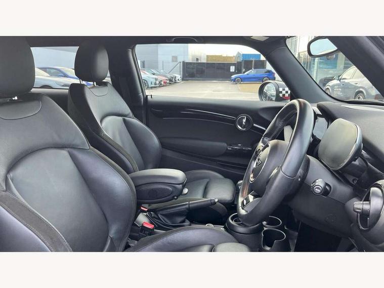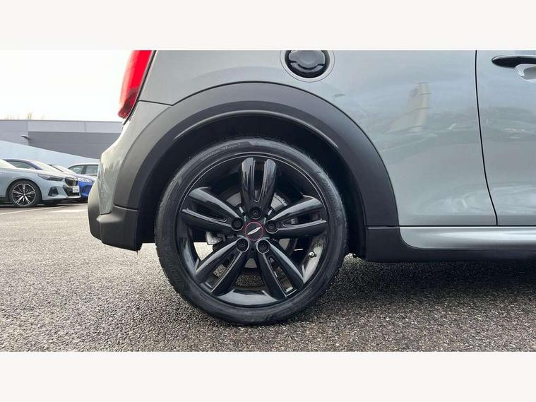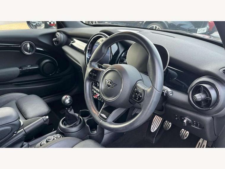 Automatic start/stop function with brake energy recuperation, Compatible mobile phone bluetooth with audio streaming, Cruise control with brake assist, Electro-mechanical speed dependant steering assistance, Flexible car sharing preparation, Instrument cluster, MINI Driving Modes - centre toggle switch to control driving setting (sport, mid and green), Mini E-call, MINI TeleServices, On board computer, Rear park distance control, Service interval indicator, 6 Speed manual transmission including gear change indicator display, Adaptive suspension, Double Vanos system, Fully variable valve control, High precision injection, Performance Control, 4 speakers in front door trims and underneath front seats, 8.8" touchscreen with LED ring, FM tuner and DAB digital radio, Automatic headlight activation switch, Bonnet scoop, Dynamic brake lights, Electric front windows, Heated rear window, Heated windscreen washer jets, JCW Aerodynamic kit - Front and rear bumpers with sporty JCW styling and part-painted side sills with MINI John Cooper Works door sill finishers, John Cooper Works rear spoiler, LED headlight with closed ring and daytime driving lights, Metal door sill strips with Cooper S, Model logo Cooper S on right of tailgate, Radiator grille chrome border with honeycomb structure including S Badge, Rain sensor window wipers, Rear fog lights, Rear LED lights with union jack design, Rear window wiper, Side scuttle panel with integrated indicator, Sun/heat protection glass, Two central exhaust tailpipes with chrome finisher, White indicator lenses, 12V Accessory socket in centre console, 4 lashing eyes in luggage compartment, 60/40 split folding rear seat, Anthracite headliner including grab handles and clothes hooks, Carbon black colour line - Knee roll and door armrest, Chrome interior highlights, Cupholders, Front and rear isofix with front passenger airbag deactivation, Glove compartment, Height and length steering column adjustment, Interior lighting with 12 different colours across the dashboard, underneath door bezel with illuminated laser-engraved design on central display, JCW Sport seats with integrated headrests, adjustable thigh support and John Cooper Works logo, Leatherette gearshift lever and handbrake gaiters, LED reading lights, vanity mirror lights, front foot well light and spotlight on front seats, Manual air conditioning, Mechanical seat adjustment - forward/back & backrest for front seats and driver seat height adjust, Multifunction steering wheel, Passenger seat height adjuster, Storage compartments in doors, Storage pocket on back of front seats, Sunvisors with vanity mirrors, Velour floor mats, Walknappa leather steering wheel with grey seam and John Cooper Works badge on Piano Black lower steering wheel spoke, Piano black exterior pack - Mini Hatchback Cooper S, 3 point seatbelts on all four seats, 6 Airbags - front, side, head and seat belt tensioners, Anti-lock braking system (ABS), DSC - Dynamic Stability Control, Front and rear disc brakes, Two tone horn, Tyre pressure monitoring system, Alarm system with tilt sensor, monitoring doors, bonnet interior and tailgate, Electronic vehicle immobiliser, Start/stop toggle with keyless go, Piano black interior trim, Tool kit,