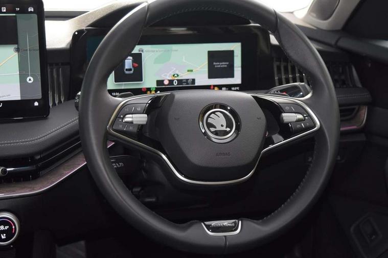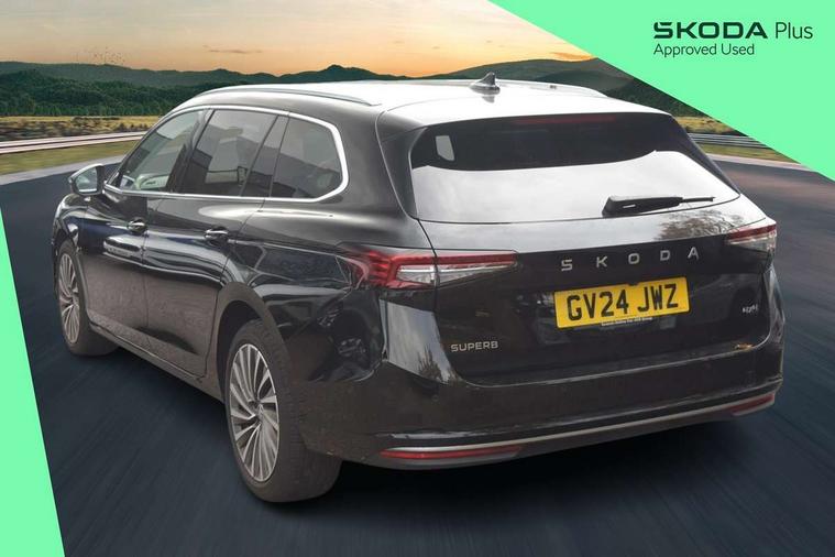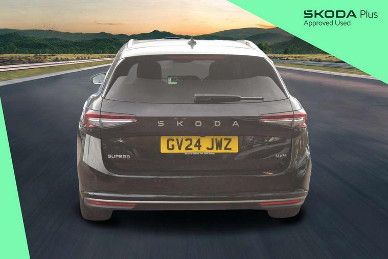 13" touchscreen display with satellite navigation, 4x USB-C ports (2x in front centre console and 2x in rear) (45W), Adaptive cruise control with speed assist, lane assist plus and traffic tram assist, Blind spot detection with door exit warning, Bluetooth system, CareConnect and Emergency Call, Driver fatigue sensor, Electrically operated boot with virtual pedal, Front assist with extended predictive pedestrian protection, Front cross traffic assist, PAS, Progressive dynamic steering, Rear view camera with washer, Stop/start engine system, Traffic sign recognition, Turn assist with evasive assistance, Virtual Cockpit - 10.25" digital display, Voice control system, Wireless charging for one smartphone (15W) with cooling function, Wireless smartlink apple carplay, SmartLink+ android auto, Dynamic chassis control plus with progressive dynamic steering, Canton sound system - 14+1 speaker, DAB Digital radio, Display cleaner, FM radio connection, Web radio connection, 3rd brake light, Acoustic side windows and interior noise suppression, Backdrop lighting, Body colour door handles, Body coloured door mirrors, Chrome roof rails, Chrome window surround, Dark chrome grille surround with chorme rib elements and plus dark chrome rear diffuser strip, Dynamic range control with poor weather light and integrated fog light, Electrically adjustable, heated, folding and driver side auto-dimming door mirrors with memory function, integrated indicators and logo projection, Frameless auto-dimming rear view mirror with USB-C, Front windscreen with heat-insulating glass, Light assist with High beam control, Light assistant (coming/leaving home/tunnel light), Privacy glass, Rear fog lights (x2), Rear side wing doors, Rear spoiler, Rear windscreen wiper, Tow bar preparation, Windscreen wipers with rain sensor, 12V socket 1x centre console 1x boot, 12V socket and 2x cargo elements in boot, 14-way electrically adjustable, memory, front seats with 4-way pneumatic lumbar support, and extendable thigh support with smart comfort entry aid, 2 spoke heated multifunction steering wheel with DSG paddles, 3 seat bench in 2nd row, 4x foldable bag hooks in boot, 60:40 Split folding rear seats, Advanced massage function for front seats, Bottle holders in the front doors 1.5 litre bottle and rear 1.5 litre bottle, Cup holder in front with easy open mat, Front and rear footwell illumination, Front armrest with storage box, Front sports comfort seats, Heated and ventilated front seats, Height adjustable front and rear head restraints, Height adjustable front passenger seat, Ice scraper, Illuminated glovebox, Interior lights with control switches, Isofix child seat fittings on outer rear seats, LED front and rear reading lights, Multi colour ambient lighting, Single front passenger seat, Storage pockets on back of front seats, Sun visors with illuminated vanity mirrors, Ticket holder on A Pillar, Tri zone climate control, Umbrella in driver's door, Light and view package - Superb, Parking package - Superb, Transport package - Superb Estate, Winter package - Superb, 3 rear seatbelts, 8 Airbags - Front driver and passenger, front side driver and passenger, centre, curtain front and rear, drivers knee, Crew protect assist, Driver and passenger seatbelts with warning light, Electronic parking brake, ESC including ABS, EBV, MSR, ASR, EDS, HBA, DSR, RBS, CBC, multi-collision brake (MKB) and Auto hold, Hill hold assist, Power operated child lock in rear doors, Alarm with interior monitoring tilt sensor and back up horn, Backrest remote release from trunk, Electronic engine immobiliser, Keyless start/stop, Remote central locking with SAFE system, Third key, Walk away locking, Decorative front door sills, 18" Steel space saving spare wheel,