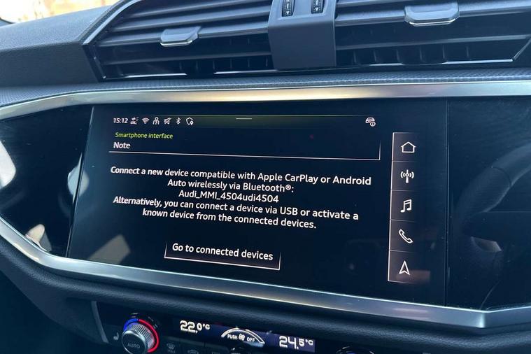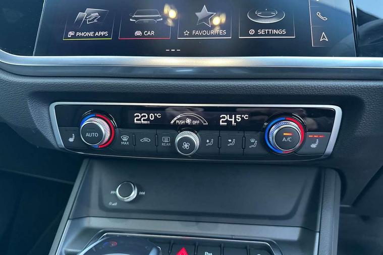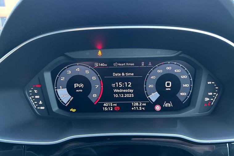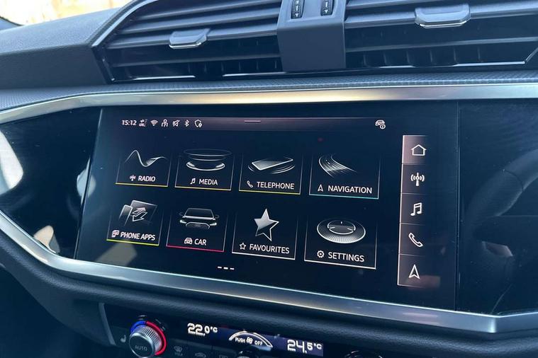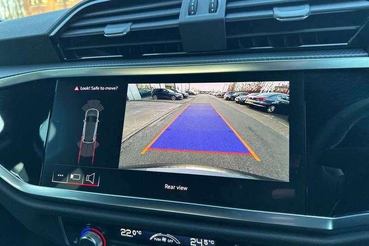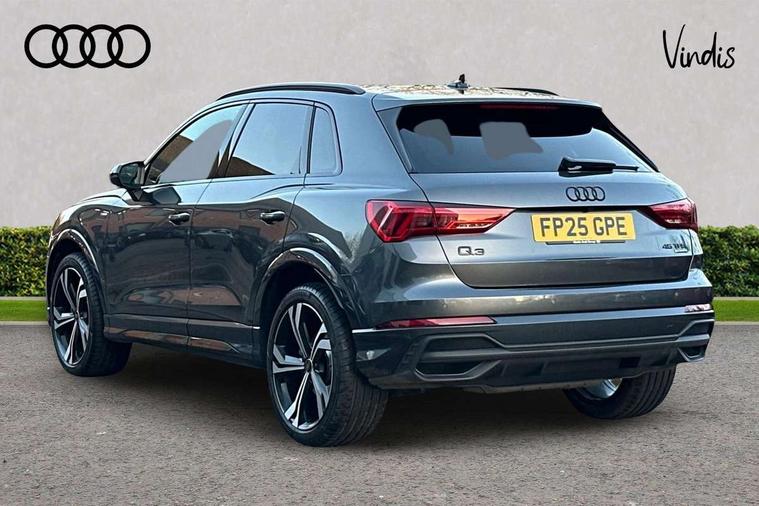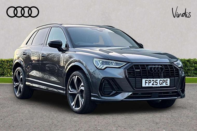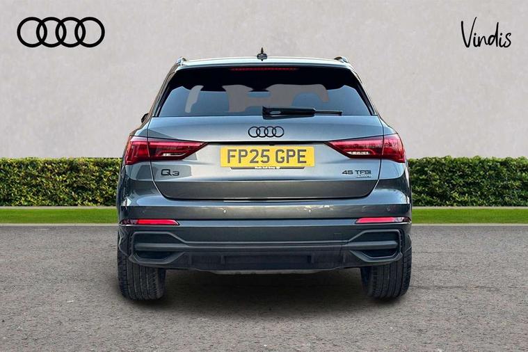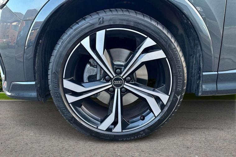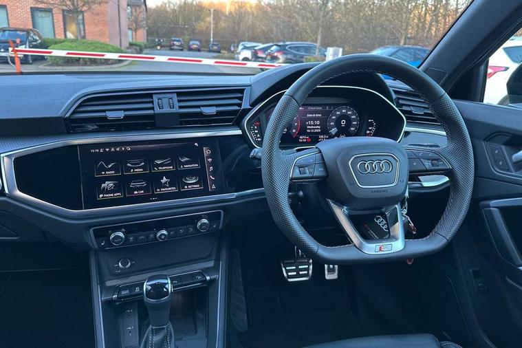 Amazon alexa Integration, Audi connect safety and service, Audi drive select, Audi lane departure warning, Audi Virtual Cockpit - 10.25" display, Bluetooth interface, Camera based traffic sign recognition, Distraction and Fatigue warning, Legal emergency call, MMI Navigation Plus with high resolution 10.1 inch touchscreen colour display, Power operated tailgate, Progressive steering, Service interval indicator, Smartphone interface includes wireless Apple carplay/Android Auto, Start stop system with recuperation, Voice control system with natural language interaction, Sports suspension, 2 USB-C ports with charge and data functions, 6 passive loudspeakers, DAB digital radio module, Acoustic windscreen, Audi Beam uses LEDs to project the Audi logo onto the ground as you exit your Q3, Auto dimming door mirrors, Auto dimming frameless rear view mirror, Black roof rails, Electrically folding, adjustable and heated door mirrors with integrated LED side indicators and kerb view function for passenger side, Front and rear electric windows, Front fog lights, Grille vertical bars in aluminium silver/Matt, High gloss black finish B and C pillars, LED Dynamic rear indicators, LED headlights with LED daytime running lights, LED rear lights, LED third brake light, Privacy glass dark tinted rear and rear-side windows (from B-pillar backwards), Rain and light sensors, Rear diffuser grille in grained matt black, Rear diffuser strip in matt anthracite black, Rear side wing doors, Rear wiper, S line bumpers in contrasting Manhattan grey, Variable front intermittent wipers, 12V socket in rear centre console, 3 seat bench in 2nd row, 40:20:40 folding with manual adjustment for 60:40 forwards/backwards position and backrest angle, Adjustable rear seat bench/backrest with centre armrest and cupholder, Black cloth headlining, Dual zone electronic climate control, Electric lumbar support, Front and rear black floor mats with contrast stitching in rock grey, Front and rear headrests, Front centre armrest, Height and reach adjustable steering wheel, Illuminated door sill trims with S logo, ISOFIX child seat mounting for front passenger with airbag deactivation and outer rear seat including top tether attachment point for outer rear seats, Manual front seats with height adjustment, Perforated leather gearknob, Single front passenger seat, Stainless steel luggage compartment sill finisher, Stainless steel pedals, Twin leather upholstery with front sport seats + S embossing, Black styling pack - Q3, Non smoking pack - Q3, 3x3 point rear seatbelts, 6 airbags - Driver, front passenger, curtain and side windows, Audi pre-sense front with pedestrain and cyclist recognition, Electrically operated child locks on rear doors, Electromechanical parking brake, Electronic stabilisation control including ABS, ASR and EDL, Front seatbelt reminder, Hill descent control, Hill hold assist, Pre sense basic, Seatbelt monitoring, Tyre pressure warning, Warning triangle and first aid kit, Anti theft wheel bolts, Immobiliser, Remote central locking, Thatcham approved category 1 anti theft alarm, Aluminium look interior elements, Detail dashboard around MMI touch colour display in glass look, black with surround in aluminium look, Leatherette door armrest, Piano black inlay,