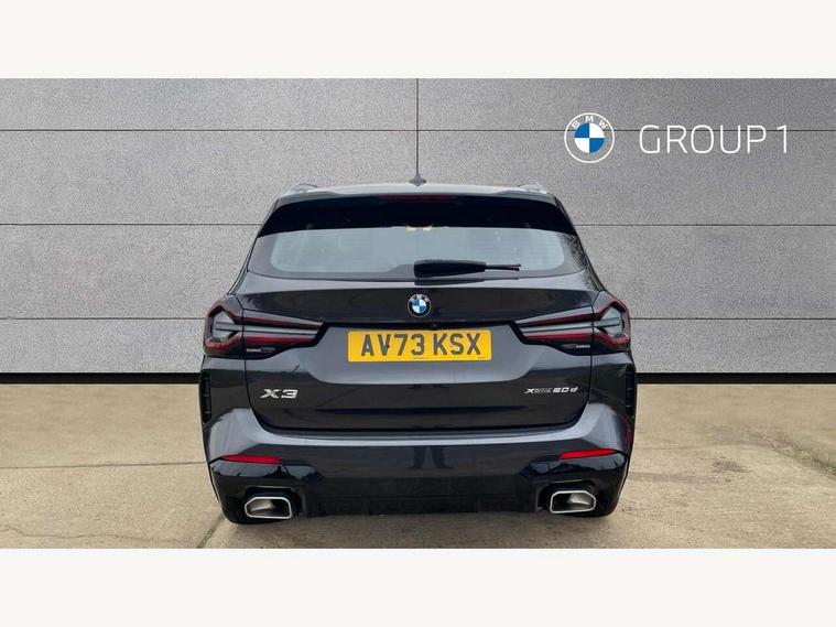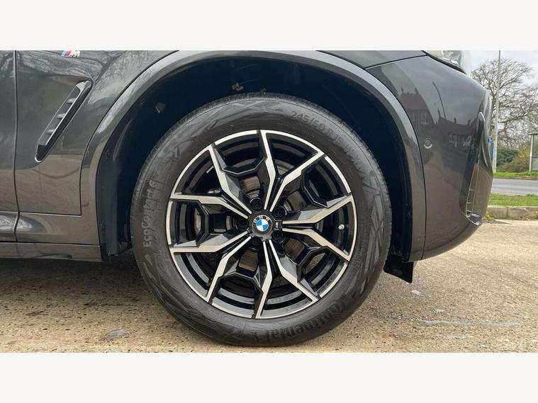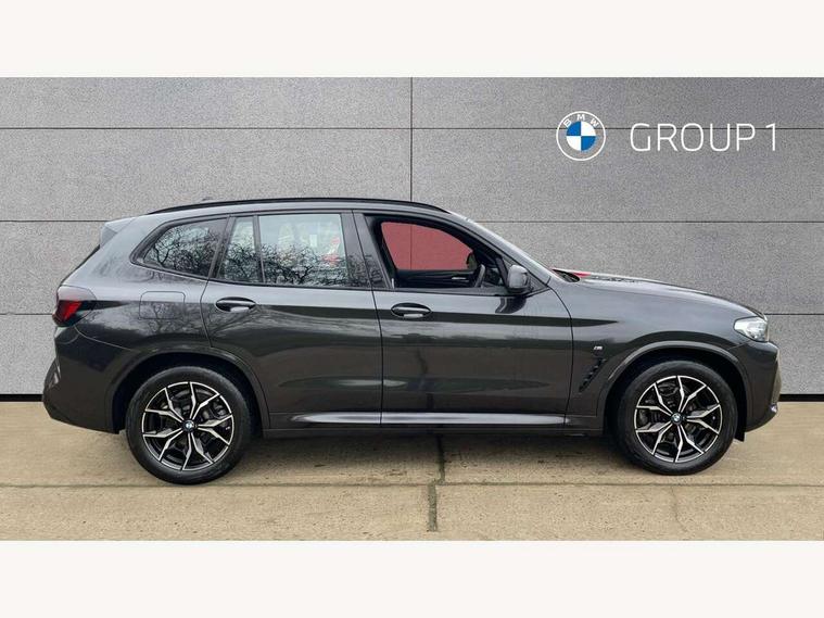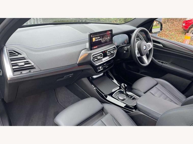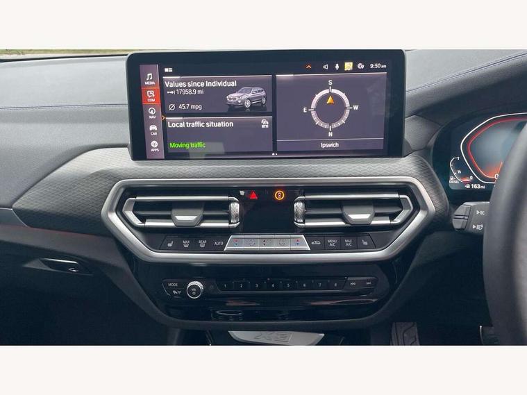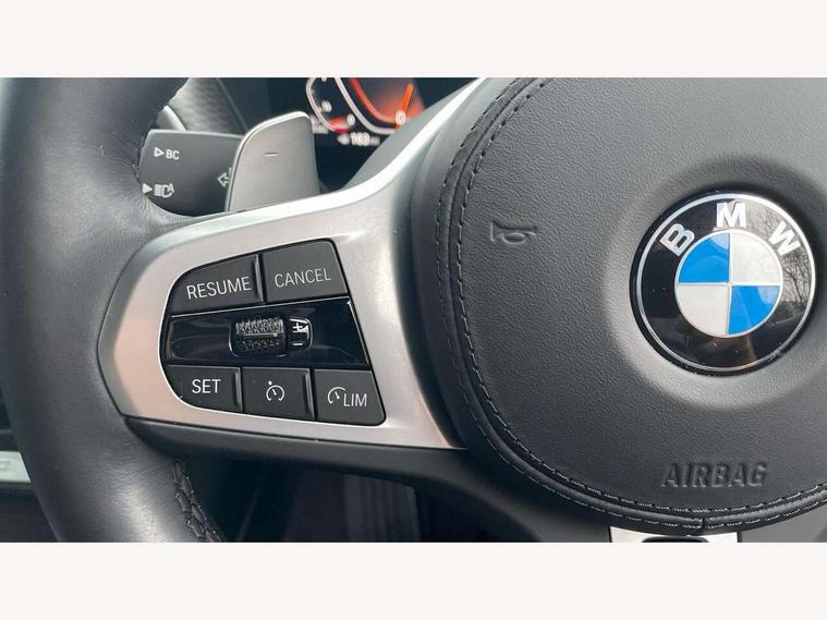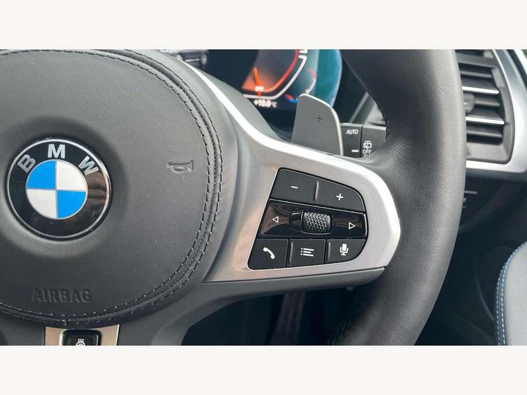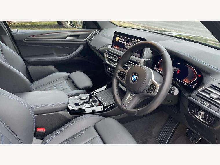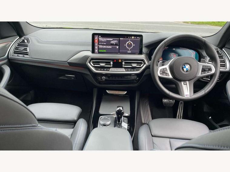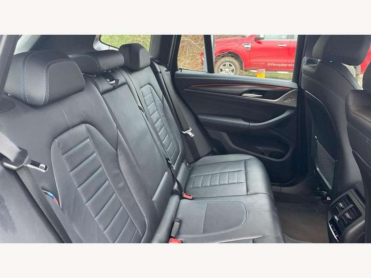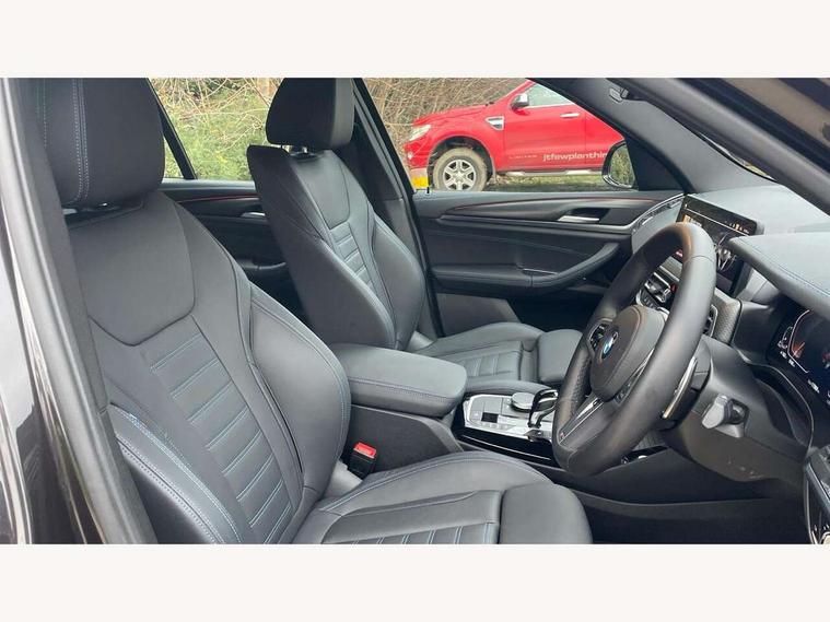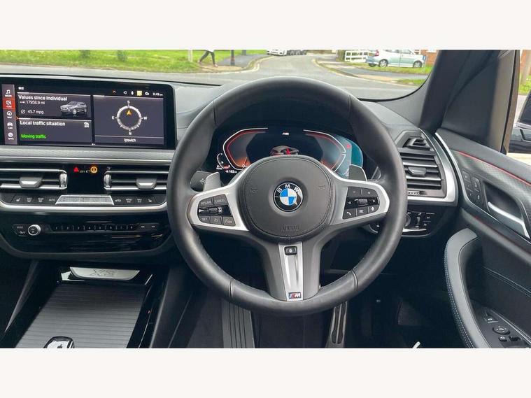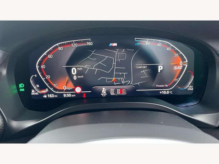 Active Guard, Attentiveness assist, BMW Live Cockpit Professional nav system including 12.3" instrument display + 12.3 high resolution control display, BMW Online services, BMW Teleservices, Brake pad wear indicator in front and rear, Check Control warning system for monitoring of lights and door/luggage compartment open warning, Condition based service - BMW service history, electronic service booklet, integrated owner's handbook, Connected drive services, Electric boot lid, Front/rear Parking distance control, iDrive touch controller with 8 favourite buttons, Instrument cluster with speedometer with mph readout, tachometer, fuel gauge and oil temperature gauge, Lights on warning by audio warning signal when ignition is switched off, Oil sensor for level and grade, warning by check control system, On board computer - average speed+fuel consumption, service interval, clock/date, odometer/trip meter, outside temperature display and ice warning, Optimum shift indicator, Personal Profile - automatic lock when driving away selectable, Run flat indicator, Stop/start system, Variable sports power steering with drive performance control Sport+ mode, Automatic transmission with gearshift paddles, Diesel particulate filter, Incorrect fuelling protection, Larger capacity fuel tank, M sport suspension, Multi-link rear suspension, BMW professional radio/CD/MP3, DAB tuner, Acoustic glazing, Automatic windscreen wipers and automatic headlight, Black finish on B pillars, Body colour door handles, Body colour electric adjust heated aspherical door mirrors, Body colour roof mouldings, Body coloured bumpers, Direction indicator, side repeaters, integrated in exterior mirrors, Dynamic brake lights, Exhaust tailpipes - dual, round, split left and right with chrome finisher, Fingertip control / anti-trap function on electric window, Folding wing mirrors with auto dimming, Follow me home headlights, Front and rear bumper system with replaceable deformation elements, Front and rear electric windows, Gloss chrome tailpipes finishers, Green tinted heat insulating glass, Heated windscreen washer jets, High beam assistant, High gloss black shadow line roof rails, High gloss shadowline exterior trim in decorative moulding side frame/recess cover/guide rail/B, C pillars/mirror frame and triangle with mirror base, High level 3rd brake light incorporating LED Technology, Interior rear view electrochromatic mirror with automatic anti dazzle function, LED tail lights, Lightweight engineering, M aerodynamic bodystyling, M Sport entry door sill strips, Model designation, Rain sensor, Rear side wing doors, Rear wing door, Rear wiper, Shark fin antenna, Side exterior M designation badges, Visible VIN plate, Welcome lighting, Windscreen wipers with adjustable interval, 12V power point in luggage area, 12V power socket in front centre console, 2 x USB Type C ports for charging and data transmission (front centre console) and 2 x USB Type C ports for charging (rear centre console), 3 rear headrests, 3 seat bench in 2nd row, 3 zone automatic air conditioning, 4 lashing points to secure luggage, 40:20:40 split folding rear seat with loading system, Ambient lighting, Anthracite headlining, Automatic interior light when door is opened/ignition switched off or via remote key, Floor mats in velour, Foldable storage floor with compartment, Four grab handles integrated in roof lining, Front and rear bottle holders integrated into door trim storage compartments, Front and rear side armrests integrated into door trim, Front centre armrest with storage compartment, Front footwell lights, Front head restraints, Front passenger seat, Front sports seats, Front/rear courtesy lights with soft on/off dimming, Front/rear reading lights, Heated front seats, Isofix rear child seat preparation, Leather gear knob, Lockable glove compartment, Luggage area underfloor compartment, Luggage compartment lighting, M sport leather steering wheel, Multifunction steering wheel, Parcel shelf removeable and storable under boot floor, Reach and rake adjustable steering column, Rear centre armrest with 2 cupholders, Removable / retractable luggage cover, Slope adjustable rear seats, Storage compartment in rear centre console and front/rear door trims, Sun visors with vanity mirrors and ticket pocket, Toolkit located in luggage compartment, Two front cupholders with removable oddments tray/lid, Connected pro pack - X3, ADB - Automatic Differential Brake, Anti-lock braking system (ABS) with brake assist, Automatic Stability Control (ASC), Battery safety cut-off, BMW emergency call, Brake drying, Brake energy regeneration, Braking pre-tensioning, Child locks on rear doors, Cornering brake control (CBC), Crash Sensor - activation of central locking release, hazard warning light and interior lighting, Deactivation of fuel pump in the event of a crash, Driver and front passenger front and side airbags with passenger deactivation and ITS front and rear head airbags, Driver and front passenger knee airbag, DSC+, Dynamic brake control, Dynamic Traction Control - DTC, Electromechanical parking brake, Hill descent control, Hill start assist, Seatbelt security check for front seats, Side impact protection, Three point seatbelts to all seats with front and outer rear pyrotechnic belt tensioners and seat belt force limiters, Two tone horn, Tyre pressure sensor, Ventilated front and rear disc brakes, Warning triangle and first aid kit, Central locking switch for all doors, fuel filler cap and luggage compartment, Electronic engine immobiliser, Locking wheel nuts, Remote control including two integrated key - one button for open/close all lockable content, windows and separate button for open luggage compartment, Remote control Thatcham category 1 alarm, Start/stop button with Comfort Go keyless engine start and auto Start/stop deactivation button, Low rolling resistance tyres,