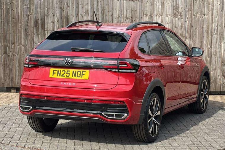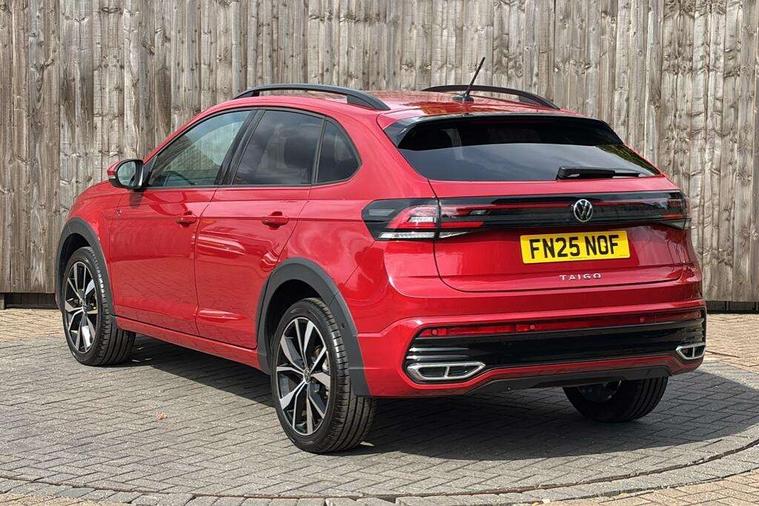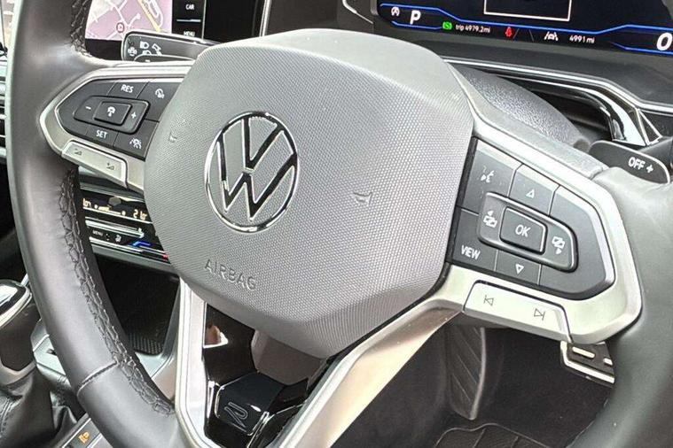 Adaptive cruise control, Advanced driver attention and drowsiness monitor, App-Connect including App-Connect Wireless, Digital cockpit pro - 10.25" high resolution TFT dash display screen with customizable menus and information, Driving profile selection, Dynamic road sign display, e-Call (emergency call), Power Steering, Travel assist including emergency assist, Washer fluid level indicator, Wireless Charging including Bluetooth, Start-stop system with battery regeneration (recuperation - energy recovery during braking), XDS electronic differential lock for improved traction and handling, Digital radio reception (DAB+), Diversity antenna for FM reception, WeConnect plus, Ambient lighting with logo projection, Aspherical driver's exterior mirror, Auto headlights, Body coloured bumpers, Bumpers in R-Line style, Electric windows, External USB type C socket and charging sockets, Front scuff plates with R-Line logo, LED rear combination lamp, LED third brake light, Left convex exterior mirror, Power folding adjustable/heated exterior mirrors and front passenger exterior mirror lowering function, Rear fog light on one side, reversing light on both sides, Rear side wing doors, Rear wash/wipe with intermittent wipe setting, 12V socket in centre console, 2 front reading lights, 3 rear head restraints, 3 seat bench in 2nd row, Air care climatronic air conditoning system with active combination filter and 2-zone temperature control, Black carpets, Black roof lining, Child seat anchor for child seat system i-Size, 2x top tether and child seat anchor in front on front passenger side, Chrome bezel for instrument cluster, vents, door handles + gear shift, Driver and front passenger seat height adjustment, Front + rear carpet mats, Front centre armrest, Front footwell illumination, Front sports comfort seats, Height and reach adjustable steering wheel, Interior ambient lighting and surround lighting, Karoso artvelours cloth upholstery, Leather trimmed gear knob, Leather wrapped multifunction steering wheel, Luggage compartment floor, Luggage compartment light, Lumbar support for driver's and front passengers seat, Seat covers in grey + titanium black, Single front passenger seat, Split folding backrest with centre armrest and unsplit rear seat bench, Stainless steel pedals, Storage compartment under front seats, Sun visors with illuminated vanity mirrors, Chrome Package - Taigo, Drivers assistance pack - Taigo, Light and Sight pack including High beam assist - Taigo, 2 x 3-point seatbelts/outer rear seats with ECE label, 3-point seat belts in front with pretensioner and height adjustment, 3-point seatbelt for centre rear seat, Adaptive driver and front passenger airbags with passenger airbag deactivation function, Driver and front passenger safety-optimised head restraints, Electronic stability control, Extended and predictive pedestrian/ cyclist protection, Front and rear disc brakes, Front curtain and side airbags with center airbag, Hill start assist, Manual rear child locks, Single tone horn, Tyre pressure loss indicator, Anti-theft alarm system with interior monitoring, backup horn, and towing protection, Grey anodised matte decorative inserts in dash and front door panels, Low rolling resistance tyres,
