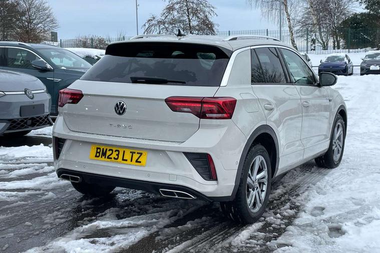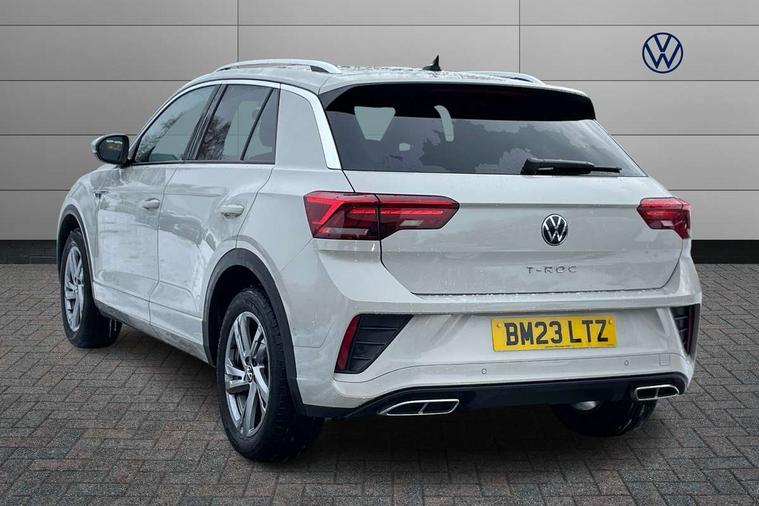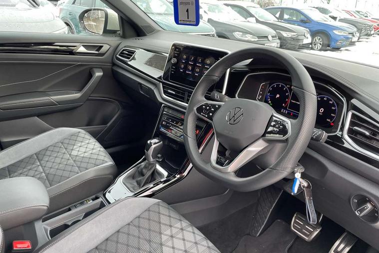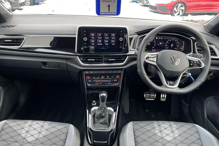 10.25" Digital cockpit pro, Bluetooth mobile phone interface, Driver alert system with fatigue detection, Driver tips and journey analysis, Emergency call service, Lane keeping system Lane Assist, Modified key software - reduce switch off time for key status change to Long no motion, Online services, Park assist including front and rear parking sensors, Service interval indicator, Tailgate/trunk lid release from outside, Think blue trainer driver tips and journey analysis, Warning sound and light for front seatbelts unfastened, Wireless app connect, Battery regeneration during braking, Start/stop function with battery regeneration, Diversity antenna for FM reception, Front and rear 6 speakers, Music playback - MP3, WMA and AAC files, Premium USB cable in choice of either Apple or Android smartphone compatibility, SD card slot, Simultaneous pairing of 2 compatible mobile devices, Title and cover art display, We Connect and We Connect Plus functionality, 3rd brake light, Auto dimming interior rear view mirror, Automatic hazard lights activation under emergency braking, Automatic headlight control with LED separate daytime running lights with coming/leaving home function, Extended roof spoiler, Exterior mirrors aspherical on driver side, convex on front passenger side, External USB type C socket and charging sockets, Front windscreen wiper with intermittent wipe and 4 position delay, Heated rear window, LED Plus headlamps, LED rear combination lamps, LED rear number plate lights, LED tail lamp rear comination lamps, Power windows with comfort operation and circuit breaker, R-Line design body coloured bumpers, Rain sensor, Rear exhaust tailpipe, Rear fog light on one side and reversing lights on both sides, Rear side wing doors, Rear wash/wipe with intermittent wipe setting, Remote electrically foldable door mirrors, puddle lights and reverse activated passenger's door mirror, 12V power socket in centre console, 3 rear head restraints, 3 seat bench in 2nd row, 4 load lashing points in luggage compartment, Air care climatronic air conditoning system with active combination filter and 2-zone temperature control, Black roof lining, Chrome plated radiator grille inserts, air vent surrounds and light switch surrounds, Door and side trim panel with leatherette insert, Drawer under drivers seat, Front + rear carpet mats, Front centre armrest, Front cupholders x 2, Front footwell illumination, Front reading light, Front scuff plates with R logo, Instrument lighting, white adjustable panel illumination, Interior ambient lighting and surround lighting, Interior light delay, Isofix child seat preparation, Leather gearshift handle, Load-through provision with cup holder when folded down ('Unsplit rear seat bench, split folding backrest, with centre armrest), Luggage compartment lighting, Single front passenger seat, Stainless steel pedals, Storage compartment in left and right luggage area, Storage compartment in rear doors, Storage compartments in driver and front passenger doors, Sunvisors with illuminated vanity mirrors, Variable boot floor, height adjustable and removable, Driver assistance pack without proactive passenger protection - T-Roc, 3 point height adj front seatbelts + pretensioners, 3 point seatbelts in outer rear with ECE label, ABS, Child locks on rear doors, Driver and front passenger airbag with front passenger airbag deactivation, Driver and front passenger safety-optimised head restraints, Drivers seatbelt reminder, Electronic parking brake, Electronic Stability Control (ESC) inc EDL (Electronic Differential Lock) and ASR (Traction Control), Front and rear passengers curtain airbag system including front side airbags, Front assist with city emergency braking and pedestrian monitoring, Front seat side impact airbags, Hill start assist, Predictive pedestrian protection, Rear disc brakes, Single tone horn, Tyre pressure loss indicator, Volkswagen roadside assistance, Alarm with interior protection, Anti-theft alarm system with interior monitoring, backup horn, and towing protection, Remote central locking with SAFELOCK, radio remote control with 2 remote control folding keys, Trims for alloy wheels,
