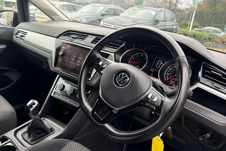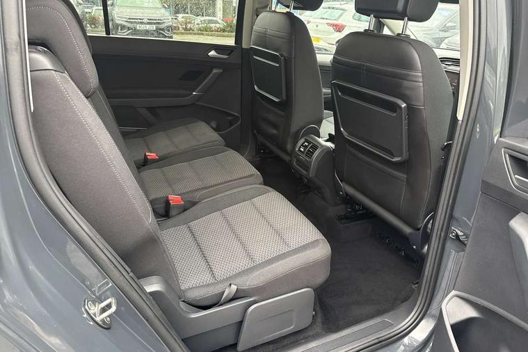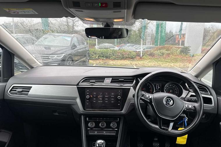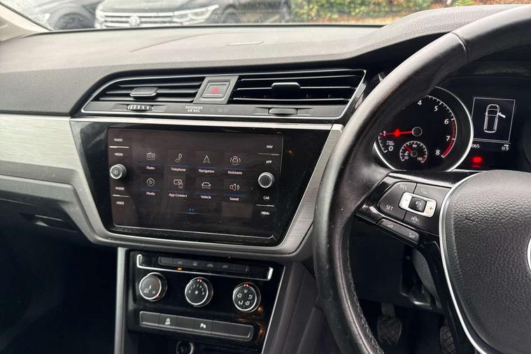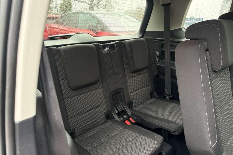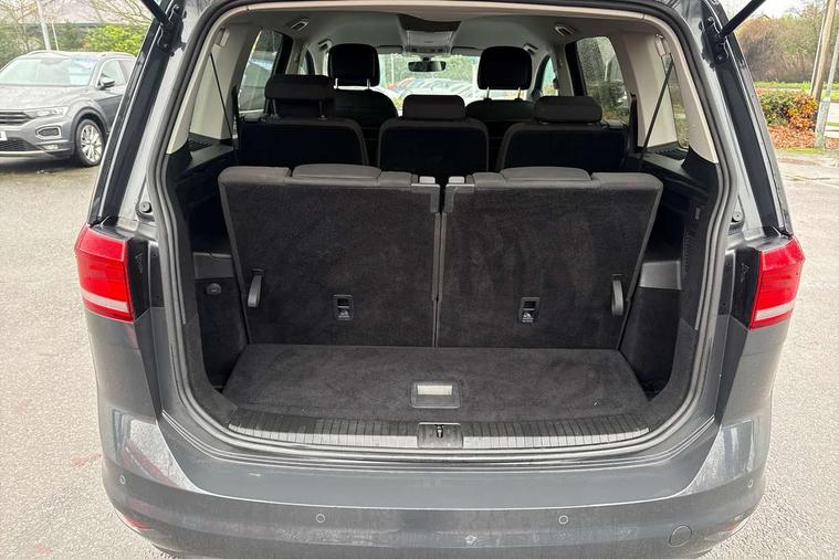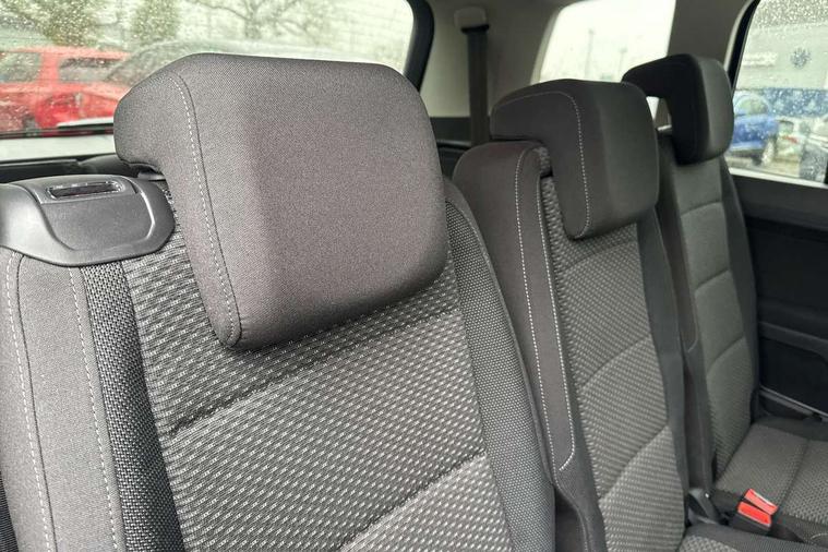 Adaptive cruise control, Audible lights on warning, Bluetooth telephone connectivity, Car information display, Electronic odometer, Emergency services call system, External temperature gauge, Misfuelling protection device, Mobile pairing with SMS function, Multi function display, Rev counter with fuel gauge, Speed limiter, Speed sensitive power steering, Stop/start system, Think blue trainer driver tips and journey analysis, Trip and service interval display, Petrol Particulate Filter, XDS electronic differential lock, 4x20 watt output, 8 Speakers, Audio Connectivity System, DAB Digital radio, MP3/WMA compatability, SD card slot, Single CD player, Title and cover art display, USB connection, Aerial integrated into side window, Auto dimming rear view mirror/rain sensor, Automatic coming/leaving home lighting function, Black front air intake and radiator grilles, Body colour bumpers, Body colour door handles, Body colour door mirrors with integral indicators, Chrome trimmed radiator grille louvre inserts, Dusk sensor + auto driving lights, Electric heated + adjustable door mirrors, Front and rear electric windows, Fully galvanised body, Gloss black finish B pillar, Green tinted heat insulating glass, High level third brake light, Rain sensor, Rear side wing doors, Rear tinted glass from B-pillar backwards approx 65% tinted, Rear wash/wipe with intermittent wipe setting, Silver roof rails, Tailgate wiper- reverse gear activation, Twin chrome exhaust tailpipes, Volkswagen roundel, Windscreen wipers intermittent wipe, 12V power point for Row 2, 12V socket in luggage compartment, 2 individual fold flat 3rd row seats, 2 three point seatbelts in 3rd row, 2nd row centre armrest, 2nd row centre seat converts into table, 3 single slide/fold/removable 2nd row seats, 3 spoke steering wheel, 3x3 point seatbelts on 2nd row with height adjust on outer seats, 4 boot load lashing points, 4 way adjustable front head restraints, 5 headrests, Driver and front passenger under seat drawer, Dust/pollen filters, Foldable front passenger seat backrest, Front and rear reading lights, Front centre armrest with storage compartment, Front comfort seats with lumbar support, Front cupholders x 2, Front passenger seat height adjust, Front seat storage pockets, Front seatback folding tables, Height adjustable driver's seat, Height/reach adjust steering wheel, Illuminated glovebox, Illuminated vanity mirrors, Instrument lighting white adjustable panel illumination with red night time illumination, Interior light with delay, Isofix on 2nd row outer seats, Isofix on 3rd row seats, Large storage compartment in roof console, Lasano cloth upholstery, Leather multifunction steering wheel with gear knob, Leatherette on rear of front seats, Low tunnel 2nd row seat, Luggage compartment lighting, Manual air conditioning, Media box in dashboard on passenger side, Multi storage in passenger/luggage areas, Multi-function centre console with storage facilities, Retractable luggage cover, Split folding rear seat backrests, Storage bins on all doors, 3 point height adjustable front seatbelts, Auto hold function, Automatic post collision braking system, Door open warning reflectors, Driver/Front Passenger airbags, Drivers knee airbag, EDL + ASR, Electrically operated child locks on rear doors, Electronic parking brake, Energy recovery system, ESC with ABS, First aid kit, Front and rear (row 2) curtain airbags, Front assist including city emergency braking, Front seat side impact airbags, Front/rear disc brakes, Hill hold control, Hydraulic Brake Assist (HBA), Loose wheel warning function, Manual passenger airbag deactivation function, Rear child proof door locks, Seatbelt warning lamp and buzzer, Traction control, Two tone horn, Warning triangle, Alarm with remote central locking and interior protection, Electronic engine immobiliser, Brushed design decorative inserts, 16" Karlstad alloy wheels with anti-theft wheel bolts, Tyre mobility system,