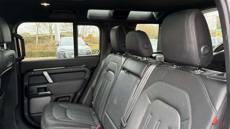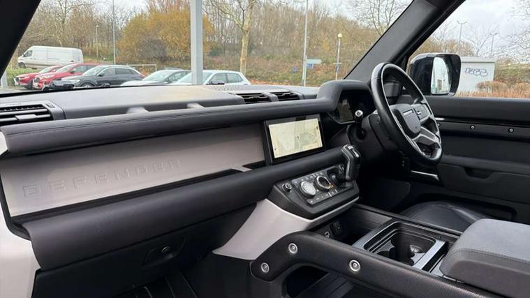 360 degree parking aid, 3D Surround Camera with 360 View, 180 Rear View, Front Traffic Detection, Forward Vehicle Guidance, Tow Hitch Assist and clear sight Ground View, Android Auto, Apple CarPlay, Assisted tailgate with soft close, Bluetooth system, Brake pad wear indicator, Click and go integrated base unit, Connected navigation pro, Driver condition monitor, Electric power assisted steering (EPAS), Interactive driver display, Lane keep assist, Push button start, Traffic sign recognition with adaptive speed limiter, Trip computer, Wade Sensing, Adaptive dynamics, DAB Radio (Digital Audio Broadcasting), Pivi pro connected, Auto high beam assist, Automatic headlights, Black exposed rear recovery eyes, Centre high mounted stop light, D300 badge, Electric heated/power fold door mirrors with approach lights and auto dimming driver side, Electric windows with one touch open/close and anti-trap, Follow me home lighting, Heated rear window with timer, Heated windscreen, Illuminated metal treadplates with brand name script, LED tail lights, Privacy glass, Puddle lights, Rain sensing windscreen wipers, Rear fog lights, Trailer stability assist, X-Dynamic badge, 12V power socket in loadspace, Carpet mats, Durable rubber cabin flooring, Durable rubber loadspace flooring, Footwell lights, Loadspace cover, Loadspace Hook, Multifunction steering wheel, Overhead stowage for sunglasses, Rear headrests, Rear ISOFIX, Rear reading lights, Storage glovebox, Sunvisors with illuminated vanity mirrors, Online pack with data plan - Defender, X-Dynamic exterior pack - Defender, 5 x 3 point seatbelts, ABS, Brake hold function, Cornering brake control (CBC), Customer configurable autolock, Driver and passenger airbags, DSC - Dynamic Stability Control, EBD - Electronic brakeforce distribution, Electric parking brake (EPB), Emergency braking, ESP + traction control, Front airbags with passenger seat occupant detector, HDC - Hill descent control, Hill launch assist, Low traction launch, Power operated child locks, Remote for (e-Call, Optimised assistance call, InControl app, Climate, beep and flash and door), RSC - Roll stability control, Seat belt reminder, TPMS (Tyre pressure monitoring system), Alarm, Immobiliser, Intrusion sensor, Keyless entry and go, Locking wheel nuts,
