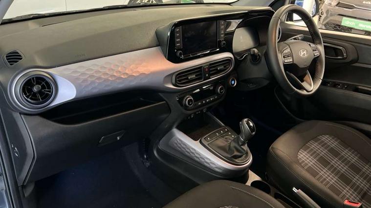Apple car play/Android Auto, Bluelink mobile remote connectivity, Bluetooth connectivity with voice recognition, Cruise control, Driver attention alert system, eCall emergency call system, Forward Collision-Avoidance Assist (FCA) - Pedestrian/Cyclist, Front USB-C charging and USB-A data, Full-width 4.2" LCD instrument cluster, Intelligent speed limit assist, Lane departure warning system with lane keep assist - LKAS, Lane follow assist, PAS, Rear parking sensors, Rear view camera with guidelines, Roadside assistance, Start/Stop function, Tailgate, Trip computer, Wireless charging pad, 2 front/2 rear speakers, Rear USB-C device charger, Steering wheel audio, phone and cruise controls, 1 speed non intermittent rear windscreen wiper, Black finish on B pillars, Body colour door handles, Body coloured bumpers, Body coloured door mirrors, Electric folding door mirrors, Electric front windows, Electric rear windows, Electrically adjustable and heated door mirrors, Flat metal emblem, Front fog lights, Front grille in glossy black, Front intermittent wipers, Halogen bi-function headlights, Headlights inner with Black Blade design, Heated rear window, High beam assist, Indicator light on door mirrors, LED DRLs diamond mesh design, Privacy glass - Rear windows and tailgate, Rear roof spoiler with integrated LED brake light, Rear side wing doors, 12v power outlet - front, 3 seat bench in 2nd row, 60/40 split folding flat to floor rear seats, Air conditioning, Auto light control, Bottle holders in front/rear doors + front centre console, Cabin and luggage compartment interior lighting, Cloth upholstery, Driver + passenger vanity mirrors, Driver's seat height adjustment, Driver/passenger sunvisors with ticket holders, Floor mats, Front door pockets, Front Head Restraints - Vertical and Horizontal Adjustment, Front LED blue mood lighting, Glove compartment, Heated front seats, Heated steering wheel, Height adjustable steering column, Isofix child seat preparation, Leather multifunction steering wheel, Rear door pockets, Single front passenger seat, Vertical adjustment rear head restraints, 3x3 point rear seatbelts, Airbags - front, front side and curtain airbags, Anti-lock brake system (ABS), Autonomous emergency braking (AEB) with forward collision warning system, Brake assist function, Childproof rear door locks, Electronic stability control, Front and rear seatbelt reminder, Front seatbelt pretensioners, Hill start assist control (HAC), Passenger airbag deactivate switch, Traction control, Tyre pressure monitoring system, Immobiliser, Perimeter alarm, Rear occupant alert, Remote central locking, Second remote key, Smart key with motion sensor, Speed sensitive auto door locking, 16" alloy wheels, Tyre repair kit,