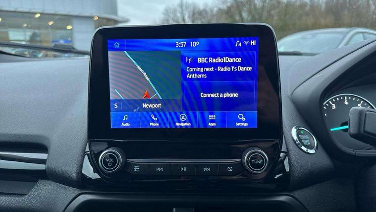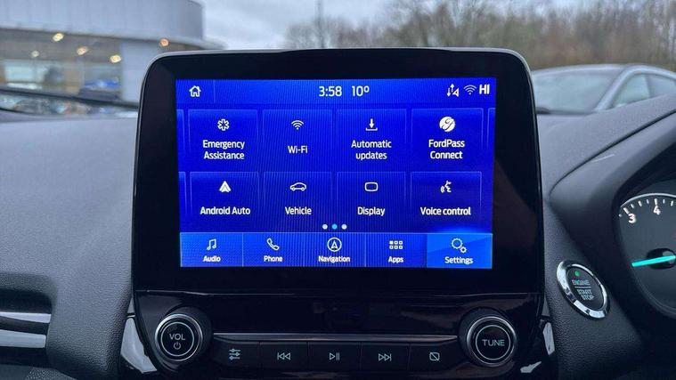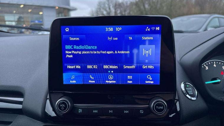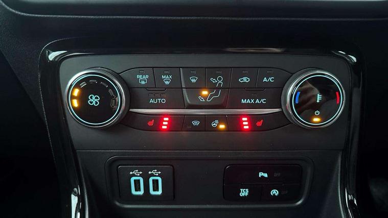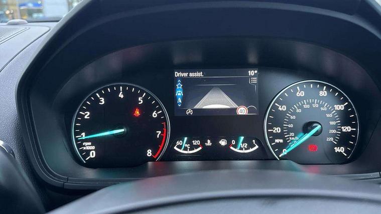 Cruise control, e-Call (emergency call), Easy fuel capless refuelling system, Ford SYNC 3 nav system with DAB radio, 8" screen, emergency assistance, Apple car play/Android auto, 2x USB, 6 speakers, Ford pass connect, Intelligent speed limiter, PAS, Rear parking sensors, Rear view camera, Traffic sign recognition, Trip computer, Auto dimming rear view mirror, Automatic front wipers, Automatic headlights, Black roof rails, Body colour door handles, Body colour roof, Body coloured bumpers, Body coloured door mirrors, Chrome front grille, Chrome lower window surround, Electrically adjustable and heated door mirrors, Front fog lights, Headlight levelling control, LED day running lights, LED third brake light, Power front and rear windows, Puddle lights, Quick-clear heated windscreen, Rear wiper, 12V socket in front and rear, 60/40 split rear seats, Ambient lighting, Centre console with sliding front armrest, Cooled glovebox, Courtesy lights with map reading light, Driver height adjust, Driver seat height/lumbar adjust, Driver's side glovebox, Driver/passenger sunvisors and lidded vanity mirrors, EATC - Electronic Auto Temperature control, Folding grab handles, Front floor mats, Front head restraints, Front seat back map pockets, Groove cloth/partial sensico upholstery, Illuminated glovebox, Illuminated luggage compartment, Isofix system on outer rear seats, Leather trimmed steering wheel with remote audio control, Luggage compartment carpet, Overhead console with sunglasses holder, Rake adjustable rear seats, Reach + rake adjustable steering column, Rear headrests, Sensico gear shift gaiter, Sensico handbrake, Storage drawers under front seats, Tie down hooks, Variable boot floor, 3x3 point rear seatbelts, ABS, Autonomous emergency braking, Child locks on rear doors, Curtain airbags, Driver airbag, Drivers knee airbag, Electronic Stability Programme with hill launch assist, Front passenger airbag deactivation, Front side airbags, Passenger airbag, Pre collision assist system with AEB, Seatbelt reminder for driver and front passenger, Traction control, Tyre pressure monitoring system, Immobiliser, MyKey system, Remote central locking, Thatcham 1 volume sensing alarm, 17" shadow silver finished alloy wheels, Low rolling resistance tyres, Tyre inflation kit,
