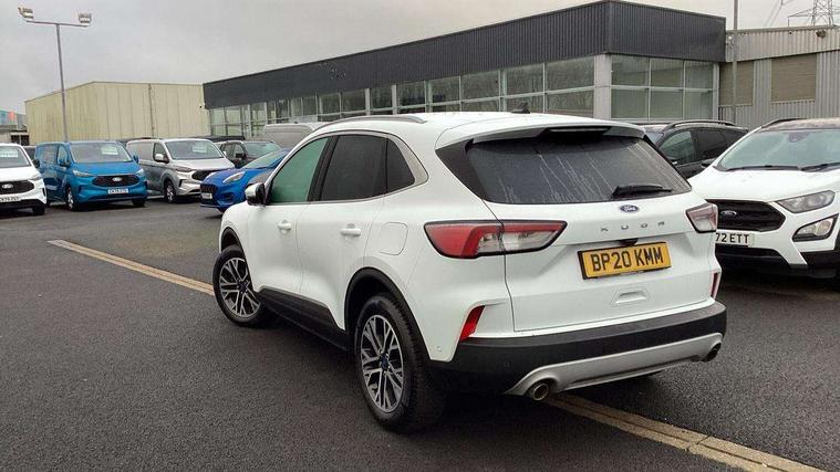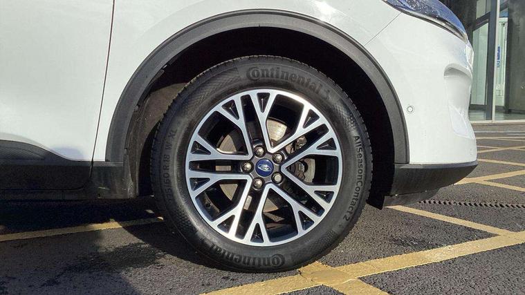 Active park assist, Adaptive cruise control (ACC) with traffic sign recognition, BLIS (Blind spot information system), Driver impairment monitor, Eco coaching, Ford easy fuel, Front and rear parking sensors, Front and rear view camera, Intelligent speed assist, Lane keeping aid with lane departure warning, Mobile phone wireless charging pad, Power assist steering, Selectable drive modes, SYNC 3 with navigation, DAB audio, Auto dimming rear view mirror, Auto headlamps with high and low beam, Auto wipers, Door edge guards, Electrically operated front and rear windows, Front LED fog lamps, Front scuff plates, Full LED headlamps, LED daytime running lights, LED rear lights, Power folding heated door mirrors with puddle lights, Power front/rear windows with global close, Privacy glass, Quickclear heated windscreen, Rear spoiler, Silver roof rails, Twin exhausts, 2nd row sliding seats, 8 way manual passenger seat including lumbar support and height adjust, Ambient lighting, Centre console with electronic parking brake, Dual electronic automatic temperature control, Front and rear floor mats, Front and rear head restraints, Leather steering wheel and gear knob, Rear charging point, Salerno partial leather upholstery, Sports seats, B&O with small instrument cluster pack - Kuga, 3x3 point rear seatbelts, Airbags - front driver/passenger, front and rear curtain, Drivers knee airbag, Electronic stability control (ESC) and ABS, Ford MyKey Gen 2 safety system, Hill launch assist, Post collision braking, Powered child proof rear door locks, Pre collision assist with autonomous emergency braking, Tyre pressure monitoring system, Engine immobiliser, Keyless entry, Keyless start with 'Ford Power' starter button, Locking wheel nuts, Remote powered central double locking doors, Thatcham category 1 alarm,