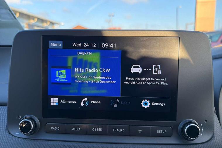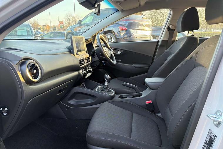 8" Touchscreen display audio + smart device integration, Bluetooth connectivity, Cruise control + speed limiter, Digital clock, Driver attention warning, Driver supervision instrument cluster with 10.25" LCD display, eCall emergency call system, Forward collision avoidance assist with pedestrian detection, Lane follow assist, Lane keep assist, Leading vehicle departure alert (LVDA), Parking system with rear camera and guidance system, PAS, Phone connection with apple carPlay and android auto, Rear parking sensor, Roadside assistance, Tailgate, Windscreen washer fluid sensor and warning indicator, 6 speed intelligent manual transmission, 6 speakers (2 front, 2 tweeters, 2 rear), Front USB ports, RDS and Digital DAB, Steering wheel mounted audio/phone controls, Automatic headlights with dusk sensor, Body colour door mirrors and handles, Door mirror integrated indicators, Electric front/rear windows with drivers one touch/anti-trap, Electrically adjustable and heated door mirrors, Halogen headlights, Halogen rear lights, LED daytime running lights, Positioning Lights - LED, Rain sensor, Rear roof spoiler with integrated LED brake light, Rear side wing doors, Rear wiper, Roof rails, Tinted glass with front door glass and windscreen with shade band, Variable front intermittent wipers, 12V power outlet in front console, 3 seat bench in 2nd row, 60/40 split folding rear seat, Adjustable head restraints, Air conditioning, Centre interior light, Cloth upholstery, Door scuff plate, Driver's seat height adjustment, Driver/passenger sunvisors and illuminated vanity mirrors, Front interior light, Front passenger seat manual adjustments, Height/reach adjustable steering column, Isofix rear child seat fastenings, Leather wrapped steering wheel and gear knob, Luggage compartment lighting, Luggage hooks, Metal paint effect interior door handles, Parcel shelf, Rear centre console with air vents, Single front passenger seat, Sunglasses holder, Vertical adjustment rear head restraints, Trailer wiring package - Kona, Airbags - front, front side and curtain airbags, Anti-lock brake system (ABS), Childproof rear door locks, Downhill brake control, EBD + Brake Assist, Electronic stability control, Fasten seatbelt reminder, Fixed 3 point for second row centre passenger seatbelt, Front seatbelt pretensioners, Height adjustable front seatbelts, Hill start assist control (HAC), Manual parking brake, Passenger airbag deactivate switch, Rear seat alert, Traction control, Tyre pressure monitoring system, Alarm/immobiliser, Deadlocks, Folding key, Locking wheel nuts, Remote central locking, 17" Alloy wheels,