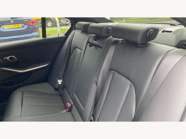 Active guard plus, Attentiveness assist, Automatic Start/stop button, Bluetooth Wi-Fi interface, BMW iDrive, BMW Teleservices, ConnectedDrive Services - last state call, Intelligent voice assist, 2 USB, 4G LTE connect, Live cockpit plus with Navigation + 12.3" instrument display + 14.9" display, Intelligent voice assist, 2 USB, 4G LTE connect, Oil sensor for level and grade, Personal e-SIM, Shifting point display, Double joint spring strut front axle, Fuel tank breather system, Plug and charge, Public mode 3 professional fast charging cable with 5m length, Steptronic Sport automatic transmission with steering wheel mounted gearshift paddles launch control and xtreme drive lever control, DAB tuner, 3rd brake light, Auto dimming rear view mirror, Automatic headlight beam throw control with load dependent regulating reaction, dynamic compensation of braking dive and acceleration squat, Bi-LED Low and high beam headlights, BMW emblem, engine compartment lid and tailgate, Body colour roof fin, Door sill strips, Electric windows - front and rear, with open/close fingertip control, anti-trap facility and comfort closing, Fading support, Follow me home headlight function, Front and rear bumper system with replaceable deformation elements, Front apron plastic in body colour, Fuel filler flap - right rear in body colour, Heat protection glazing on front windows and windscreen, High gloss chrome kidney frame with high gloss black kidney struts, LED daytime running lights, LED rear lights, LED turn indicator, Licence plate panel integrated into front bumper and tailgate, M high gloss shadow line exterior trim, Matt black B-pillar finsher, Matt black window recess cover, Model designation on right side of tailgate, One piece front bumper cover including towing eye cover in body colour, Rain sensor with automatic headlight activation, Rear boot, Rear side wing doors, Reversing lights, Side frame decorative moulding black matt, Trailer stabilisation logic, Visible exhaust tailpipe finisher, Welcome lights in interior and door handle area, Windscreen washer jets, 12V power socket in front storage compartment, 2 front cupholder in centre console with clamping elements and matt black inlay, 3 seat bench in 2nd row, 3 spoke M Sport multifunction flat bottom leather steering wheel, 3 zone automatic air conditioning, 40:20:40 split folding rear seat with loading system, Anthracite headlining, Armrest integrated in front and rear door trim + front centre console armrest, Battery in luggage compartment, BMW ID, Cruise control operation in steering wheel, Driving experience mode switch, Folding rear centre armrest with 2 cupholders, Front and rear headrests, Front and rear velour floor mats, Front reading light, Heated front seats, Height adjustable mechanically and infinitely variable steering column, Illuminated armrest storage compartment, Illuminated glove compartment, Illuminated luggage compartment, Lashing eyelets in luggage compartment, Single front passenger seat, Sunvisors with illuminated vanity mirrors and ticket pocket, Through load system, Toolkit located in luggage compartment, Connected pack professional - 3 Series Saloon/Touring, Interior and exterior mirror pack - 3 Series Touring/Saloon, M sport exterior styling pack - 3 Series Saloon/Touring, Parking assistant pack - 3 Series, 3x3 point rear seatbelts, ABS, Automatic Stability Control (ASC), BMW emergency call, Child locks on rear doors, Cornering brake control, Crash sensor activating of airbags, Unlocking doors, hazard warning lights, interior light, safety battery terminal, Drive-off assistant, Driver and front passenger with seat occupancy detection for driver's and passenger side, Driver and passenger side airbags, body protection at side and airbags deploy from seat backrests, Dry braking, DSC - Dynamic Stability Control, Dynamic brake control, Dynamic Traction Control - DTC, Electric parking brake including automatic hold function and automatic release of the parking brake when driving off, Electronic differential lock control (EDLC), Front airbag deactivation, Front airbags for driver and front passenger, Head airbags in 1st and 2nd row, head protection at side, curtain airbags open from headliner above 1st and 2nd row, Plastic fuel tank, Side impact protection, Tyre pressure sensors, Ventilated front and rear disc brakes, Warning triangle and first aid kit, Alarm system, Centre lock switch, Closing system with central locking, Electronic vehicle immobiliser, Locking wheel bolts, Tyre repair kit,