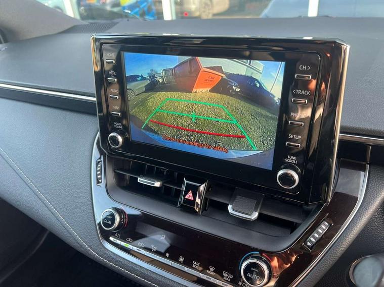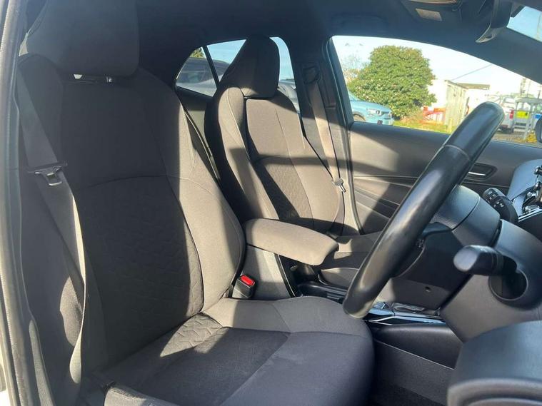 Adaptive cruise control, Bluetooth telephone connectivity, E-call, Electrically assisted power steering, Front parking sensor, Intelligent park assist, Push button start, Rear parking sensor, Reversing camera, Voice activation, Vehicle Stability Control (VSC), 2 ring combimeters with 7" colour TFT screen, 6 speakers, 8" multimedia and back monitor, AM/FM radio, DAB Digital radio, Toyota touch 2 with go navigation system, USB/AUX connectivity, Auto high beam, Auto up and down function on all power windows, Automatic folding mirrors, Automatic headlights, Automatic rear view mirror, Automatic wipers, Body coloured bumpers, LED daytime running lights, LED fog lights, LED Headlights, LED rear combi lights with LED lightguide, Power front windows, Power rear windows, Privacy glass, Rain sensor, Rear window wiper, Shark fin antenna, 3 rear headrests, Dual zone automatic air conditioning, Fabric upholstery, Front head restraints, Heated seats, ISOFIX seat fixing (2 fixings on rear outer seats), Leather steering wheel and gear knob, Power lumbar support, WIL - Whiplash Injury Lessening seats, Parking pack - Corolla, Toyota safety sense 2 - Corolla, 3x3 point rear seatbelts, Anti lock braking system + Electronic brake force distribution, Brake assist function, Front passenger airbag on/off switch, Front seatbelt reminder, HAC-Hill-start Assist Control, Rear seat belt reminder, Seatbelt pretensioners and force limiters, Supplemental restraint system (SRS) airbags - 7 airbags including driver, front passenger, curtain, side and knee airbags, Traction control, Tyre pressure warning system, Space saver spare wheel,