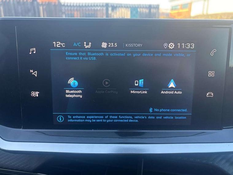 Bluetooth telephone facility, Driver attention warning, Emergency call service, Exterior temperature indicator with ice warning, Lane keep assist, Mirror screen with mirror link, apple carplay and android auto, Multi function trip computer, PEUGEOT i-Cockpit with 3.5" instrument panel display, PEUGEOT i-Cockpit with compact steering wheel, Programmable cruise control and speed limiter, Push button start, Rear parking sensors, Smart phone docking station, Speed limit recognition and recommendation, Start/stop system, 1x USB socket in front, 6 speakers radio with mp3 compatible, DAB Digital radio, Voice recognition for radio, navigation and telephony features, 2 X Rear number plate lights, Automatic hazard light activation upon heavy brake application, Automatic lights, Automatic windscreen wipers, Body coloured exterior door handles, Dark tinted rear side and tailgate windows, Diamond black rear spoiler (roof), Eco LED headlights, Electric front windows + one touch + anti-pinch, Electric rear windows with one touch/anti-pinch, Electrically adjustable, heated and power folding door mirrors, Electrochrome rear view mirror, Follow me home headlights, Gloss black rear cluster connecting strip, Headlights left on audible warning, LED daytime running lights with distinctive tooth design, LED third brake light, Model designation badges front and rear, Nera black door mirror shells, Radiator grille chrome chequered, Rear reversing lights, Rear side wing doors, Rear windscreen wiper triggered automatically in reverse gear, Roof mounted aerial, Roof spoiler, Single exhaust tailpipe, Tailgate with heated rear windscreen and wiper blade, Variable front intermittent wipers, 1/3 to 2/3 split folding rear seats, 12V socket, 3 seat bench in 2nd row, Automatic air conditioning, Driver and front passenger comfort seats, Driver and front passenger seat manual adjustment in longitudinal and back rest angle, Driver seat mechanical height adjustment, Electric power steering with reach and rake adjustable steering column, Front interior light with 2 reading spotlights, Gear shift indicator, Leather steering wheel, Low centre console, Map pockets on the backs of the front seats, Piano keys gloss black plated toggle switches to access main functions of the vehicle, Rear centre headrest, Roof lining - light grey, Seatbelt unfastened on the move audible and visual alert for front and rear seats, Single front passenger seat, Tri material cloth upholstery, 2x Isofix child seat fitting on outer rear seats, 3 rear 3 point seatbelts, ABS (Anti-lock Braking System) with EBD (Electronic Brakeforce Distribution) and EBA (Emergency Braking Assistance), Adaptive driver and front passenger airbags with passenger airbag deactivation function, Child locking functionality on rear doors, Driver/front passenger side airbags, ESP with Hill Assist, Front and rear curtain airbags, Front and rear disc brakes, Front optimised safety headrests and 3 x rear retractable headrests with height adjustable, Front three point retractable seatbelts with force limiters, Manual parking brake, Pedestrians active safety brake, Tyre pressure sensor, Acoustic vehicle alert system (AVAS), Automatic door locking when moving off, Deadlock, Electronic code immobiliser, Remote central locking, Thatcham cat. 1 alarm with anti lift sensor, Carbon effect Dashboard, front and rear door panel finish, 16" Soho diamond cut alloy wheels,