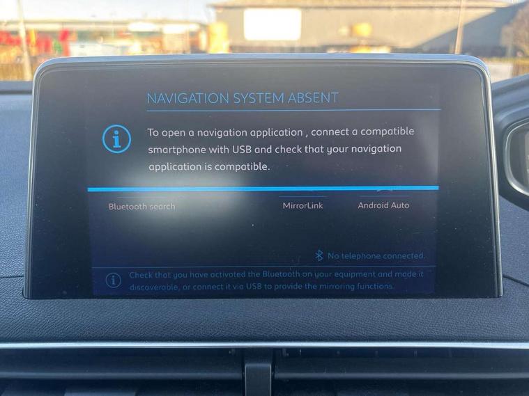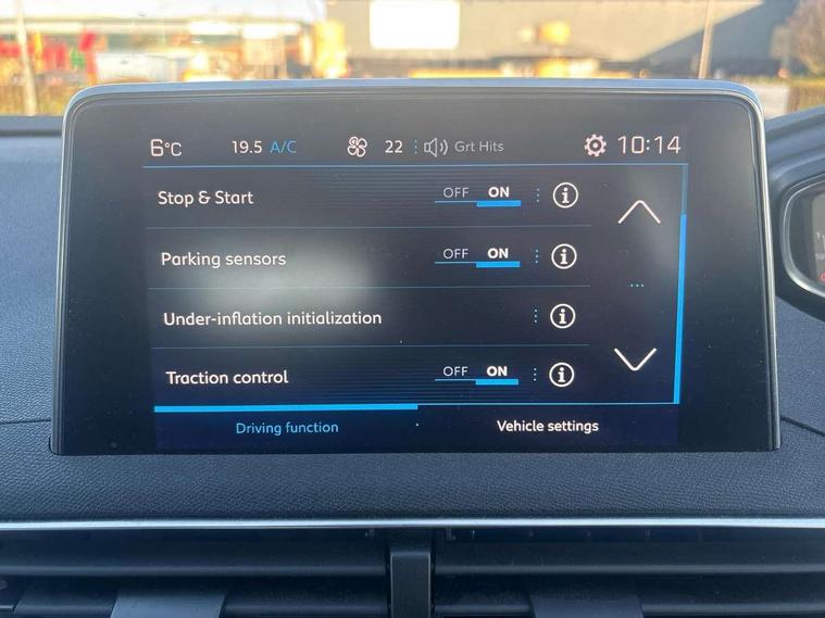 Carbon effect interior trim, Visibility pack - 3008, Automatic door lock/re-lock after 30 seconds, Central locking button on dash, Child lock control of rear doors and windows, Deadlocks, Locking wheel bolts, Perimetric and volumetric anti theft alarm, Remote control central locking with two plip keys, Rolling code transponder immobiliser, 6 speakers, DAB Digital radio, Peugeot connect with USB and bluetooth, Radio/MP3 player, Steering column mounted multifunction controls, 3 point front seat belts, 3 point seatbelts on all rear seats, ABS + EBD + EBA, Auto city emergency braking, Driver SMART airbag, Electronic parking brake, ESP with ASR, Front and rear curtain airbags, Front and rear pre-tensioning and force limiting seatbelts, Front passenger SMART airbag with deactivate switch, Height adjustable front seatbelts, Hill start assist, Seatbelt warning lamp and buzzer, Side airbags x 2, Tyre pressure sensor, Automatic activation of hazard warning lights, Black side window trim, Body colour door handles, Body colour door mirrors, Body colour rear spoiler, Body coloured bumpers, Chrome bumper inserts, Chrome front fog light surround, Chrome radiator grille and surround, Electric operated/heated door mirrors, Front fog lights, Heated rear windscreen, LED daytime running lights, LED rear lights, One touch electric front/rear windows, Rear wiper, 1/3 to 2/3 split folding rear seats, 3 x 12V power sockets, 4 Lashing eyes in boot, Blue ambient lighting, Centre console cupholder, Centre front armrest with illuminated cool compartment, Cupholders - 2 in rear centre armrest, Dual zone automatic climate control, Front headrests, Front reading lights, Front seat back map pockets, Gear shift indicator, Grab handles, Height adjustable drivers seat, Height adjustable headrests, Height adjustable passenger seat, Height/reach adjust steering wheel, Illuminated glovebox, Instrument panel light dimmer, ISOFIX on front passenger and rear outer seats, LED interior illumination, Meco cloth upholstery, Mistral full grain leather steering wheel, Rear centre armrest/ski flap, Rear coat hook, Rear headrests, Rear reading lights, Reclining front seats, Roof lining - Salin light grey, Satin chrome gear lever, Satin chrome interior door handles, 'Lights On' Reminder warning buzzer, Digital clock, Driver alert system, Exterior temperature gauge, Lane departure warning system, Mirror screen with mirror link and car play, Multi function trip computer, Peugeot i-cockpit with amplify configurable interior ambiences, headup display with distance alert, touch screen, Programmable cruise control and speed limiter, Rear parking aid, Speed sensitive power steering, Diesel particulate filter,