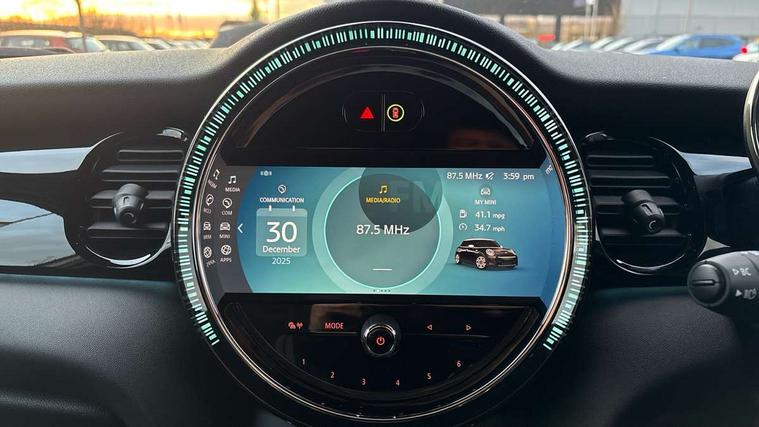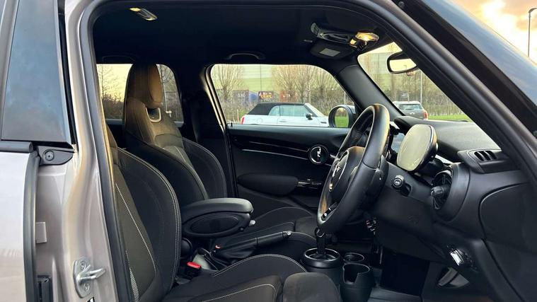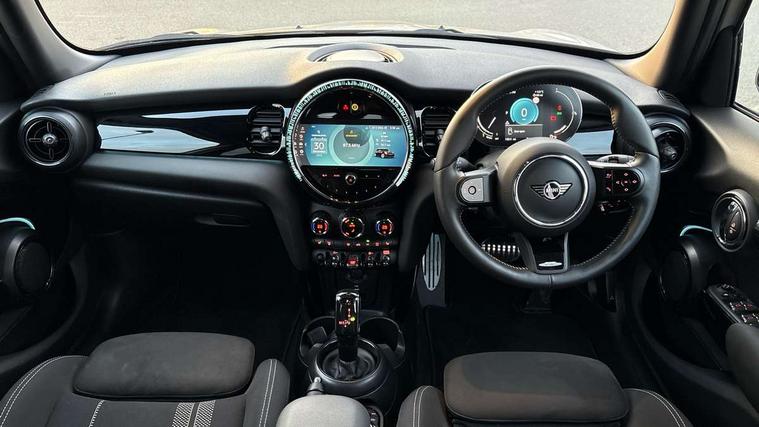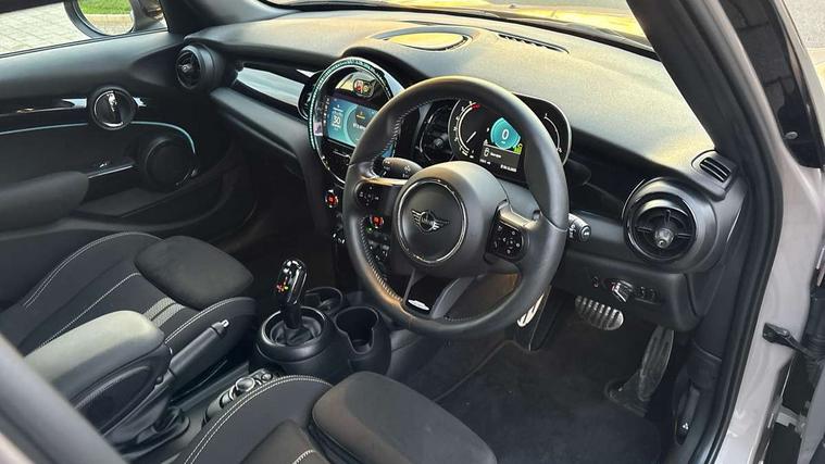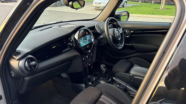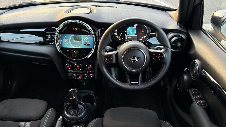 Apple CarPlay, Automatic start/stop function with brake energy recuperation, Compatible mobile phone bluetooth with audio streaming, Electro-mechanical speed dependant steering assistance, Flexible car sharing preparation, MINI Driving Modes - centre toggle switch to control driving setting (sport, mid and green), Mini E-call, MINI TeleServices, On board computer, Rear park distance control, Service interval indicator, Adaptive suspension, Double Vanos system, Fully variable valve control, Gear change indicator display, High precision injection, Performance Control, Steptronic transmission with double clutch, 8.8" touchscreen with LED ring, FM tuner and DAB digital radio, 3rd brake light, Automatic headlight activation switch, Body colour fuel filler cap, Chrome border high gloss black slats radiator grille, Dynamic brake lights, Electric front+rear windows, Exhaust tailpipe on left with chrome finisher, Heated rear window, Heated windscreen washer jets, JCW Aerodynamic kit - Front and rear bumpers with sporty JCW styling and part-painted side sills with MINI John Cooper Works door sill finishers, John Cooper Works rear spoiler, Metal door sill strips with MINI imprint, Model logo Cooper on right of tailgate, Rain sensor window wipers, Rear fog lights, Rear LED lights with union jack design, Rear side wing doors, Rear window wiper, Side scuttle panel with integrated indicator, Sun/heat protection glass, White indicator lenses, 12V Accessory socket in centre console, 3 seat bench in 2nd row, 4 lashing eyes in luggage compartment, 60/40 split folding rear seat, Anthracite headliner including grab handles and clothes hooks, Carbon black colour line - Knee roll and door armrest, Chrome interior highlights, Cupholders, Front and rear isofix with front passenger airbag deactivation, Front and rear velour floor mats, Glove compartment, Height and length steering column adjustment, Interior lighting with 12 different colours across the dashboard, underneath door bezel with illuminated laser-engraved design on central display, JCW Sport seats with integrated headrests, adjustable thigh support and John Cooper Works logo, Leatherette gearshift lever and handbrake gaiters, LED reading lights, vanity mirror lights, front foot well light and spotlight on front seats, Mechanical seat adjustment - forward/back & backrest for front seats and driver seat height adjust, Multifunction steering wheel, Single front passenger seat, Storage compartments in doors, Sunvisors with vanity mirrors, Walknappa leather steering wheel with grey seam and John Cooper Works badge on Piano Black lower steering wheel spoke, Piano black exterior pack - Mini Hatchback Cooper, 3 point seatbelts on all five seats, 6 Airbags - front, side, head and seat belt tensioners, Anti-lock braking system (ABS), Child locks on rear doors, DSC - Dynamic Stability Control, Front and rear disc brakes, Hill start assist, Single tone fanfare horn, Tyre pressure monitoring system, Alarm system with tilt sensor, monitoring doors, bonnet interior and tailgate, Electronic vehicle immobiliser, Start/stop toggle with keyless go, Piano black interior trim, Tool kit,