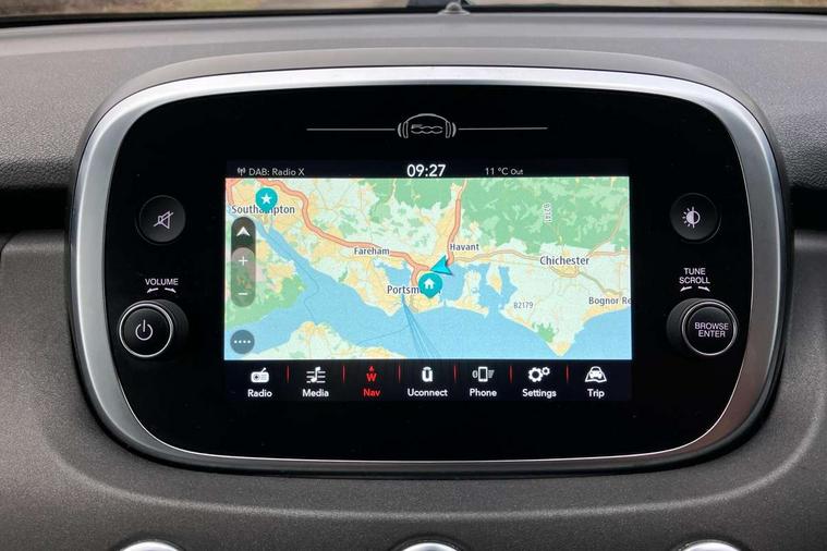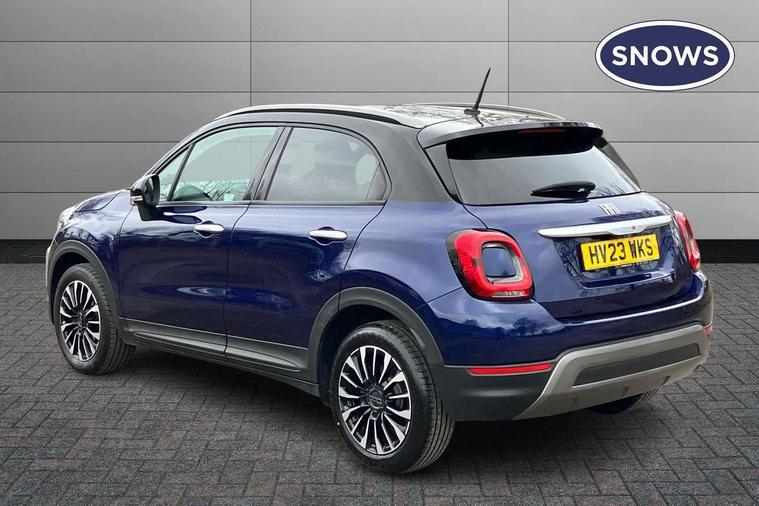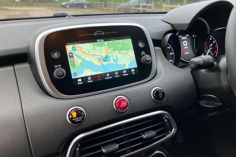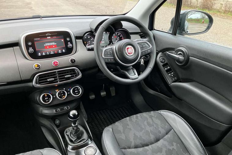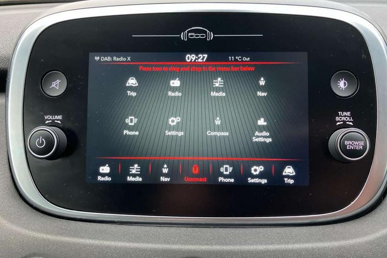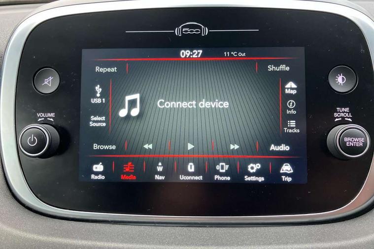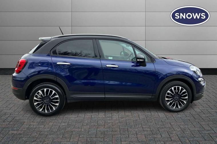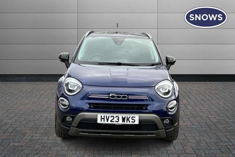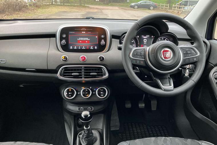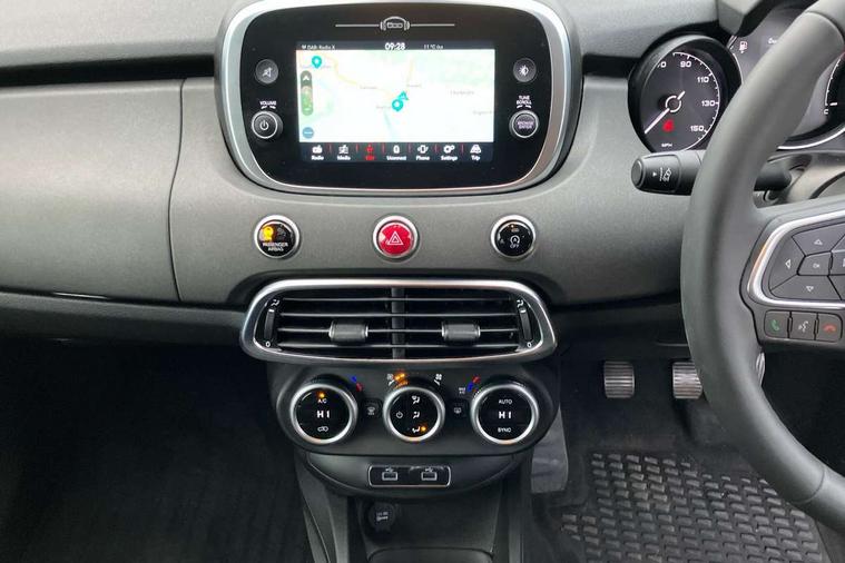 3.5" monochrome TFT display, 7" HD touchscreen DAB radio with bluetooth, 3D navigation, Aux-in and USB in central tunnel, Apple car play/Android Auto, E-call, Lane assist with intelligent speed assist and traffic sign recognition, Lane departure warning, Power assist steering, Rear parking sensor, Speed limiter, Stop/start system, Active roll mitigation, 6 speakers, USB port, 3rd brake light, All-road bumpers with protective inserts, Black electrically adjustable door mirrors, Black grained fog lights bezels, Dark tinted rear windows, Dusk sensor, Electric front and rear windows, Heated rear windows with wash wipe, LED tail lights, Privacy glass, Rain sensor, Rear side wing doors, Rear spoiler, Rear wiper, Satin chrome 500 logo, Satin chrome Fiat logo, Satin chrome front moustache, Satin chrome inserts tailgate, door handles, front moulding, Satin chrome skid plates, 3 seat bench in 2nd row, 60/40 split folding rear seat, Automatic dual zone climate control, Auxilliary 12V power socket, Cooled glovebox, Front head restraints, Height adjustable drivers seat, Height adjustable steering wheel, Parcel shelf, Satin Chrome door handles, Single front passenger seat, Soft touch steering wheel with controls, Sunvisors, Techno leather steering wheel with audio controls, Two rear head restraints, LED lights pack - 500X, 3x3 point rear seatbelts, 6 airbags - Front, side and window, Child locks on rear doors, Electronic parking brake, ESC including ASR, MSR, Hill Holder, ABS, EBD, ERM, DST, BAS, Front and rear seatbelt reminder, Height adjustable seatbelts, Manual passenger airbag deactivation function, Tyre pressure monitoring system, Deadlocks, Immobiliser, Remote central locking, Cold grey dashboard,
