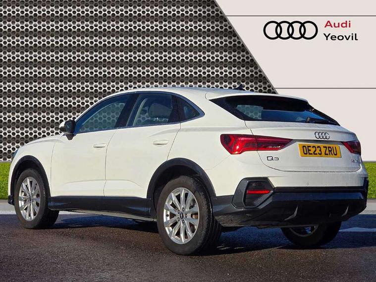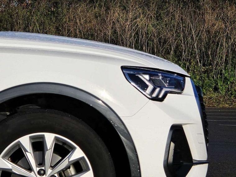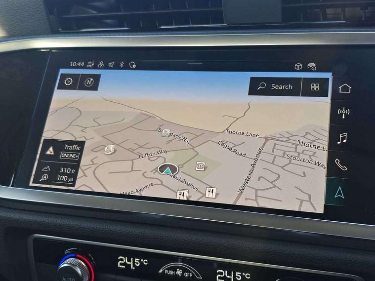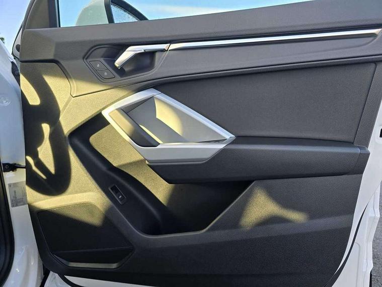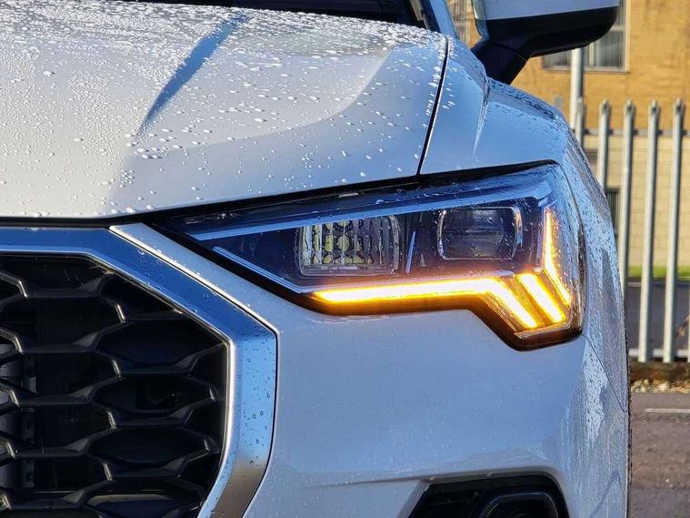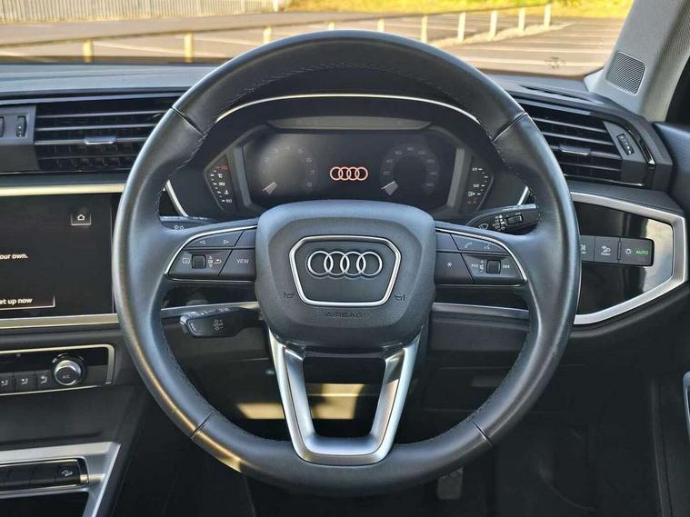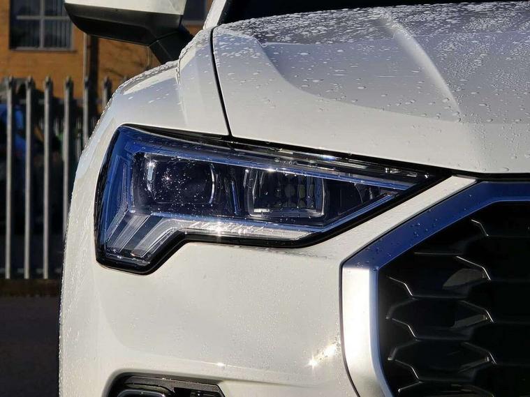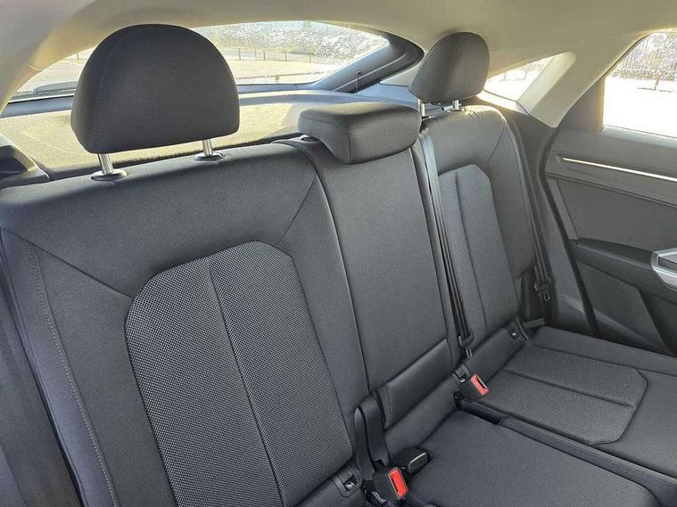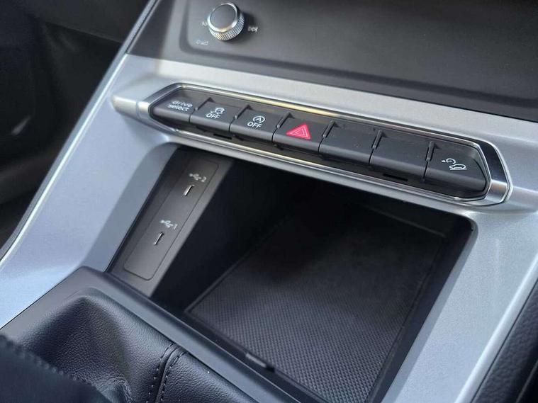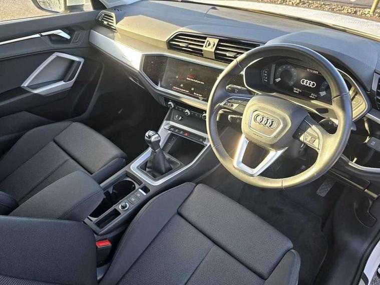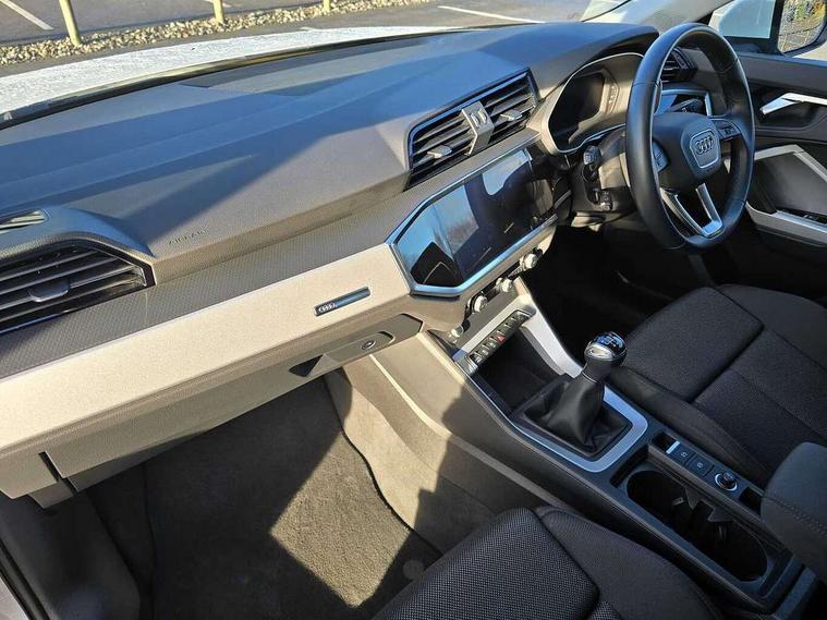 Audi drive select, Audi lane departure warning, Audi smartphone interface includes wireless Apple carplay/Android Auto, Audi Virtual Cockpit - 10.25" display, Bluetooth interface, Camera based traffic sign recognition, Cruise control + speed limiter, Legal emergency call, MMI Navigation Plus with high resolution 10.1 inch touchscreen colour display, Power operated tailgate, Progressive steering, Rear parking sensors, Service interval indicator, Start stop system with recuperation, Voice control system with natural language interaction, Sports suspension, 2 USB-C ports with charge and data functions, 6 passive loudspeakers, DAB digital radio module, Acoustic windscreen, Aluminium window trim, Auto dimming door mirrors, Auto dimming frameless rear view mirror, Bumpers and underbody protection in contrasting manhattan grey paint finish, Diffuser grille in grained matt black, Diffuser trim in manhattan grey metallic, Door sill trims with illuminated aluminium inlay, Electrically folding, adjustable and heated door mirrors with integrated LED side indicators and kerb view function for passenger side, Front and rear electric windows, Front fog lights, Front side air inlets in Manhattan grey metallic, Grille surround in aluminium silver matt, High gloss black finish B and C pillars, Honeycomb design radiator grille in matt anthracite black, LED headlights with LED daytime running lights, LED third brake light, Rain and light sensors, Rear side wing doors, Rear wiper, Variable front intermittent wipers, 12V socket in rear centre console, 3 seat bench in 2nd row, 3 spoke multi-function leather steering wheel, 40:20:40 folding with manual adjustment for 60:40 forwards/backwards position and backrest angle, Dual zone electronic climate control, Electric lumbar support, Front and rear floor mats, Front and rear headrests, Front centre armrest, Height and reach adjustable steering wheel, ISOFIX child seat mounting for front passenger with airbag deactivation and outer rear seat including top tether attachment point for outer rear seats, Luggage compartment sill protection in stainless steel, Lunar silver cloth headlining, Manual front seats with height adjustment, Single front passenger seat, Non smoking pack - Q3, 3x3 point rear seatbelts, 6 airbags - Driver, front passenger, curtain and side windows, Audi pre-sense front with pedestrain and cyclist recognition, Electrically operated child locks on rear doors, Electromechanical parking brake, Electronic stabilisation control including ABS, ASR and EDL, Front seatbelt reminder, Hill descent control, Hill hold assist, Pre sense basic, Seatbelt monitoring, Tyre pressure warning, Warning triangle and first aid kit, Anti theft alarm, Anti theft wheel bolts, Immobiliser, Remote central locking, Aluminium look interior elements, Detail dashboard around MMI touch colour display in glass look, black with surround in aluminium look, Micrometallic silver inlay,