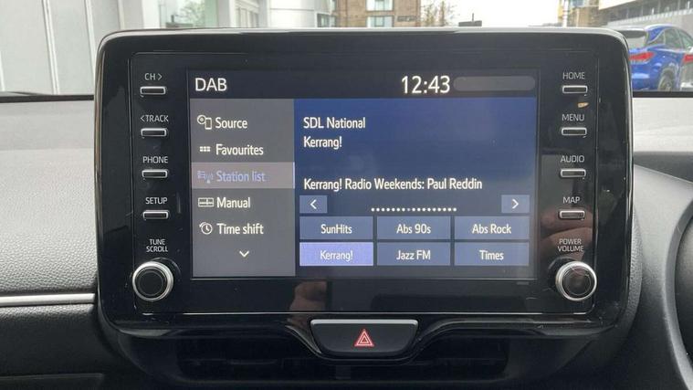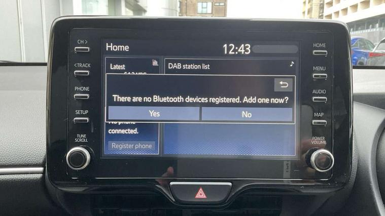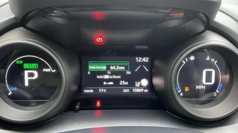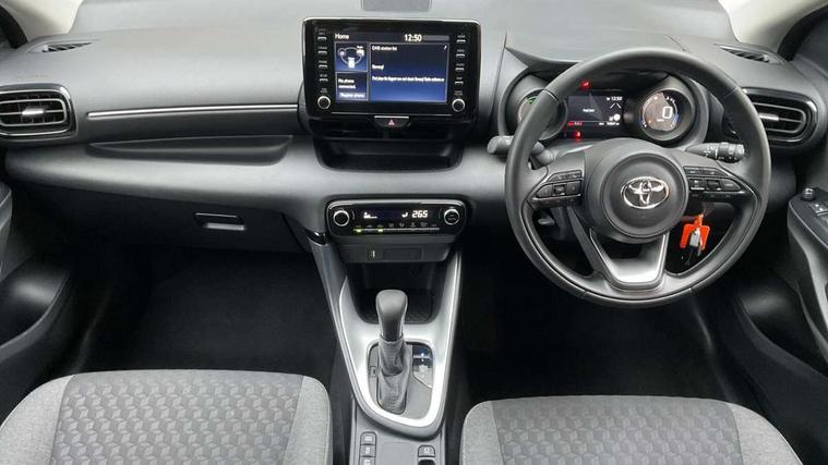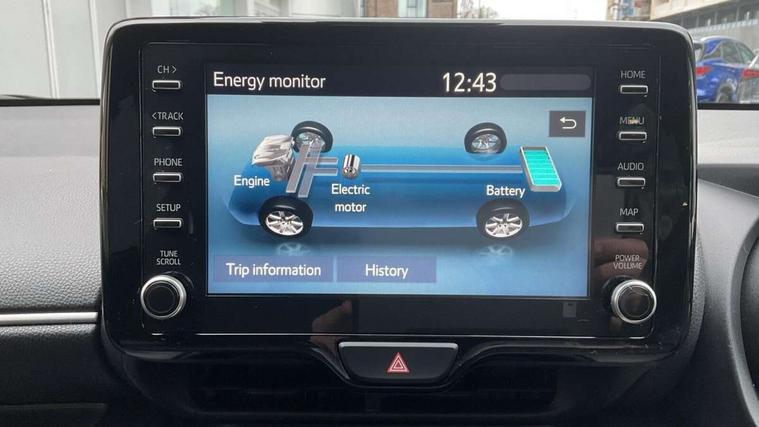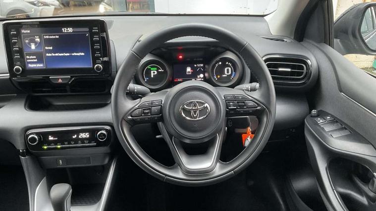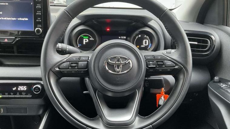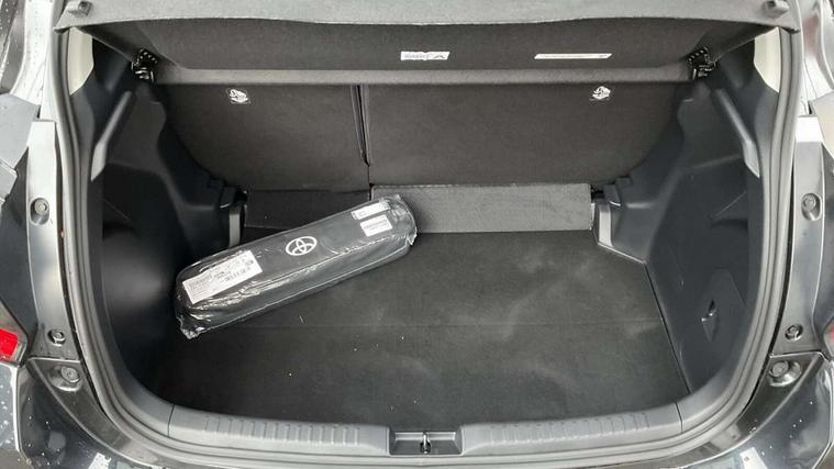 Adaptive cruise control, Adjustable speed limit with speed warning, Bluetooth connectivity, Colour binocular inspired displays with digital speedometer, E-call, Electric power steering, Hybrid energy display, Multi information display switches on steering wheel, Reversing camera, Smartphone integration with Apple CarPlay and Android auto, Tailgate, Voice recognition, Vehicle Stability Control (VSC), 4 speakers, 8" Multimedia display touch screen, USB connection, Acoustic windscreen glass, Auto windscreen wipers, Automatic headlights, Body coloured door mirrors, Electric adjustable heated door mirrors, Follow me home headlights, Front auto power windows with anti jam protection, Full LED rear lights, LED daytime running lights, LED front fog lights, LED front light guide, LED Headlights, LED High mounted stop lamp, LED Indicators, LED rear light guide, Manual headlight levelling, Painted chequered front grille, Rain sensor, Rear auto power windows with anti jam protection, Rear privacy glass, Rear side wing doors, Rear spoiler, Rear wiper, Shark fin antenna, Turning signal integrated indicators in door mirrors, Variable front intermittent wipers, 3 adjustable rear headrests, 3 spoke leather steering wheel, 60/40 split folding rear seat, Active headrests, Adjustable boot height, Auto air conditioning, Coat hooks in rear grab handles, Cup holders (2 front & door), Data Communication Module (DCM) connected services, Fabric upholstery, Front armrest, Glovebox, Grey roof lining, Height adjustable driver's seat, Isofix seat fixing, Leather gearshift, Pollen filter, Shopping bag hooks, Single front passenger seat, Tilt/telescopic steering column, 3 point seatbelts on all rear seats, ABS+EBD+Brake assist, Electronic parking brake, Emergency brake light system (EBS), Front passenger airbag on/off switch, Front seatbelt reminder, Hill start assist control (HAC), Rear child proof door locks, Rear seat belt reminder, Supplemental Restraint System (SRS) 8 airbags: Driver & passenger's airbags, dual side curtain airbags, side impact airbags, front centre airbag, Toyota Safety Sense 2, Precollison + Night time Pedestrian & Cyclist Detection, Lane Trace Assist, Auto High Beam, Intelligent ACC & Road Sign Assist, Tyre pressure warning system, 2x Master key, Alarm/immobiliser, Remote powered central double locking doors, Soft touch instrument panel, Space saver spare wheel,